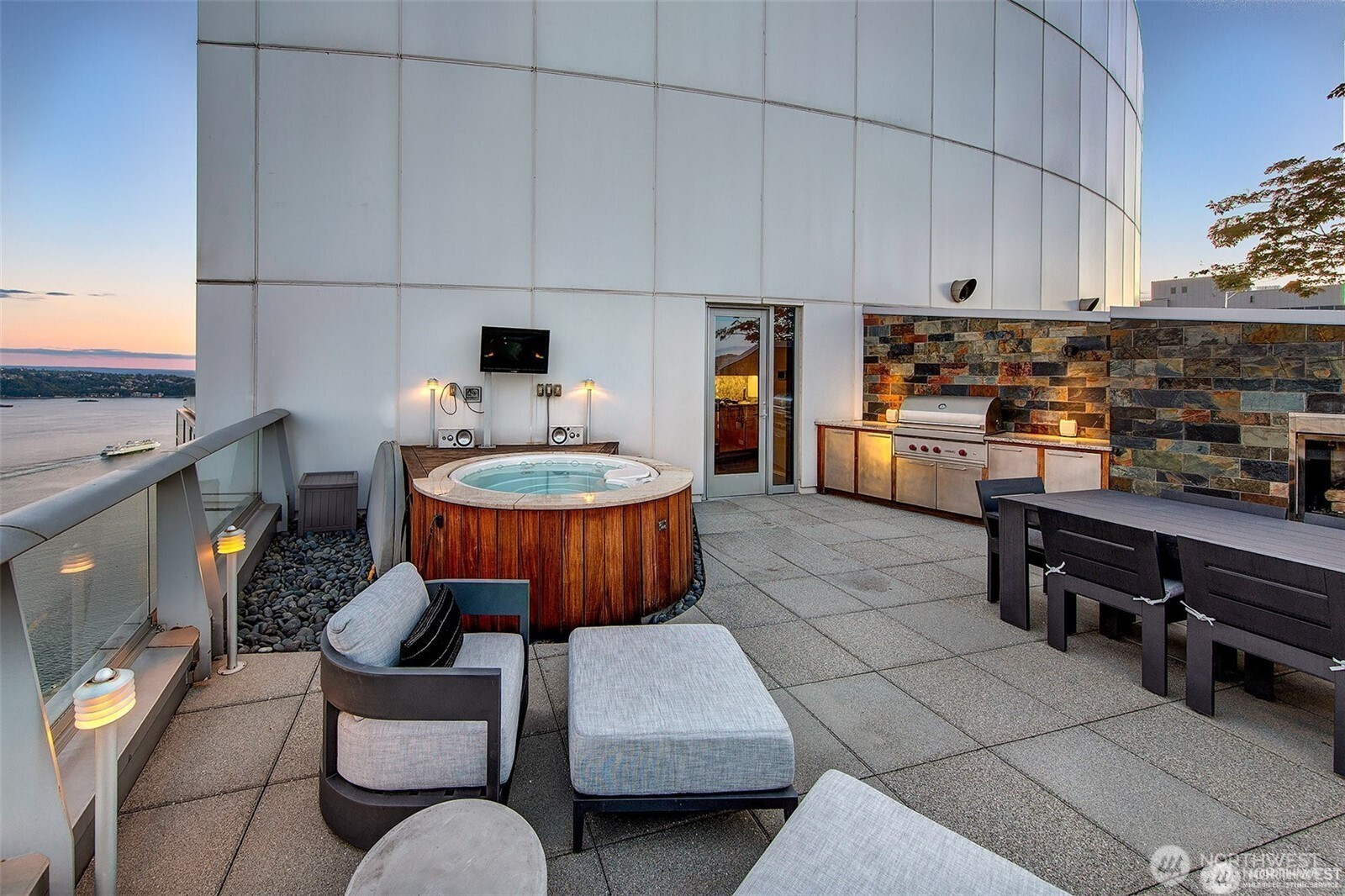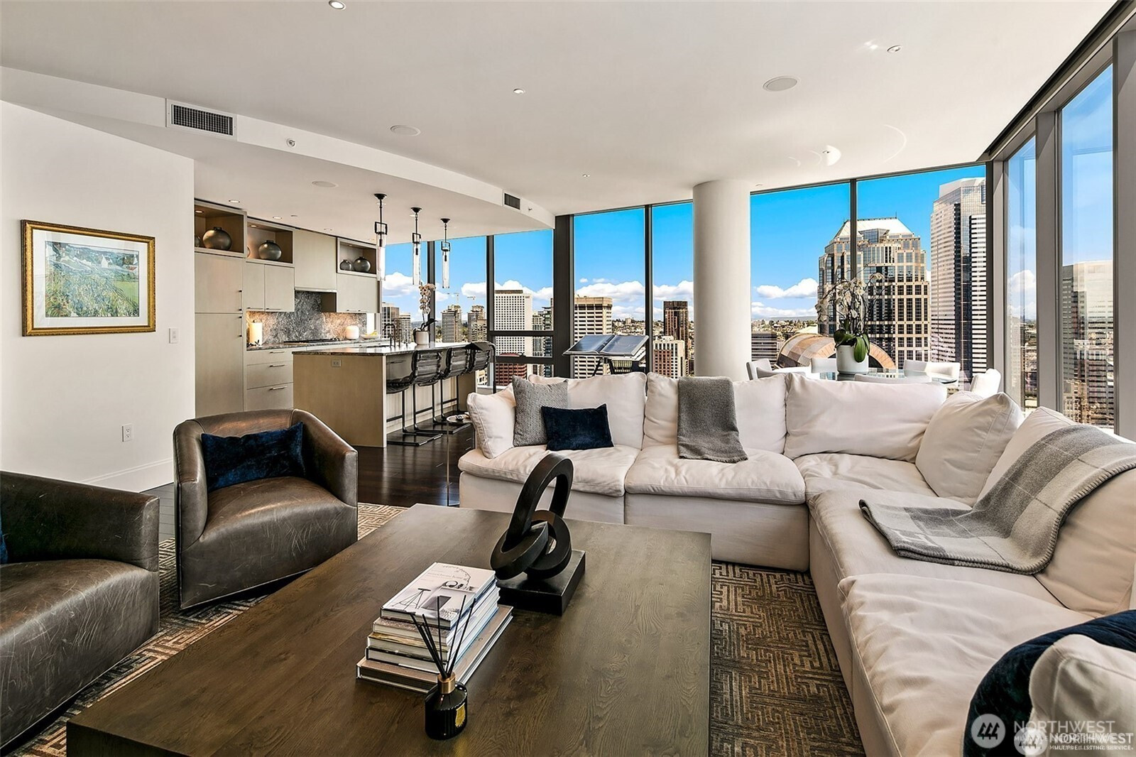 PENTHOUSE perfection-Perched atop the southeast corner of one of Seattle’s most coveted buildings, this exceptional two-level penthouse offers a rare blend of uncompromising luxury, privacy, and awe-inspiring views. Wrapped with floor to ceiling windows this home is flooded with natural light. A sky-high sanctuary capturing the very essence of PNW living, views stretch across the Sound to the Olympics, including views of the Seattle Great Wheel. Timeless elevated finishes through out the home. Arguably the best PRIVATE rooftop deck in the city, includes kitchenette, beverage center, kegerator, Jacuzzi,outdoor TV & speakers, gas fireplace, built-in Wolf BBQ. World class building & location.PIKE PLACE Market is you next door neighbor-2parking