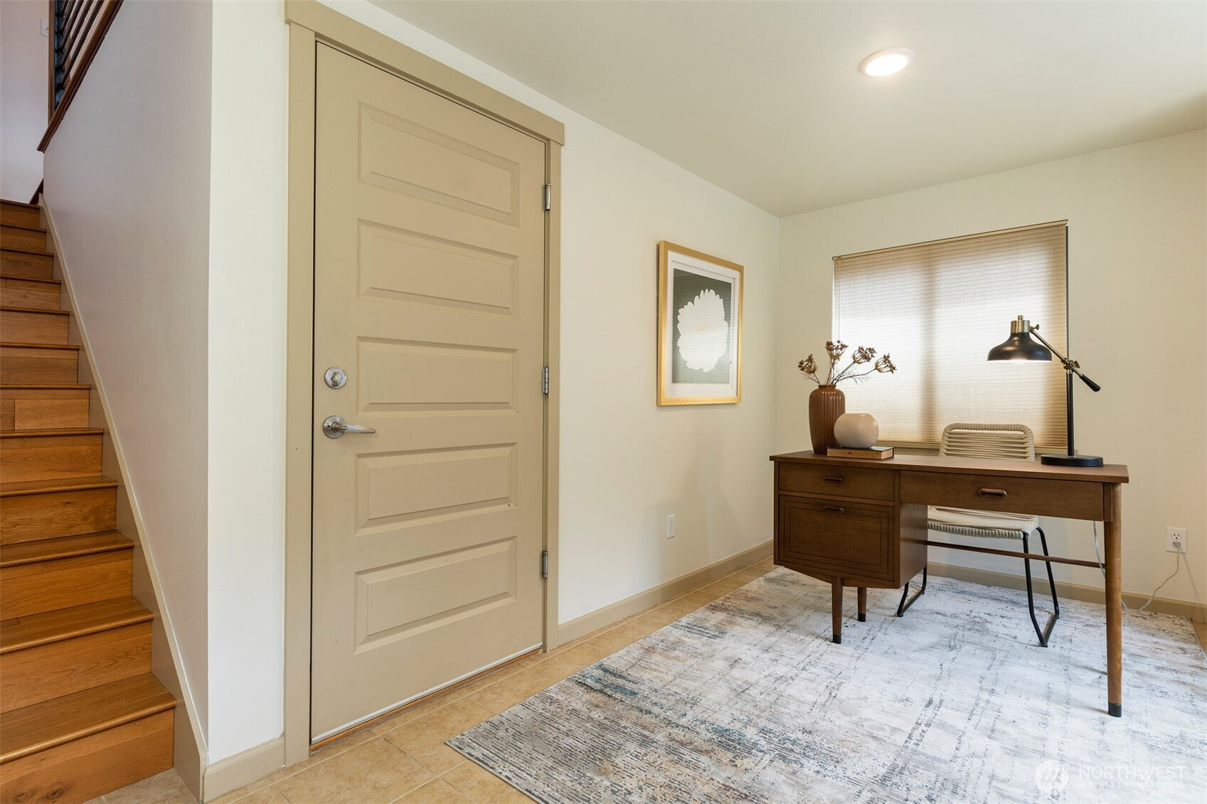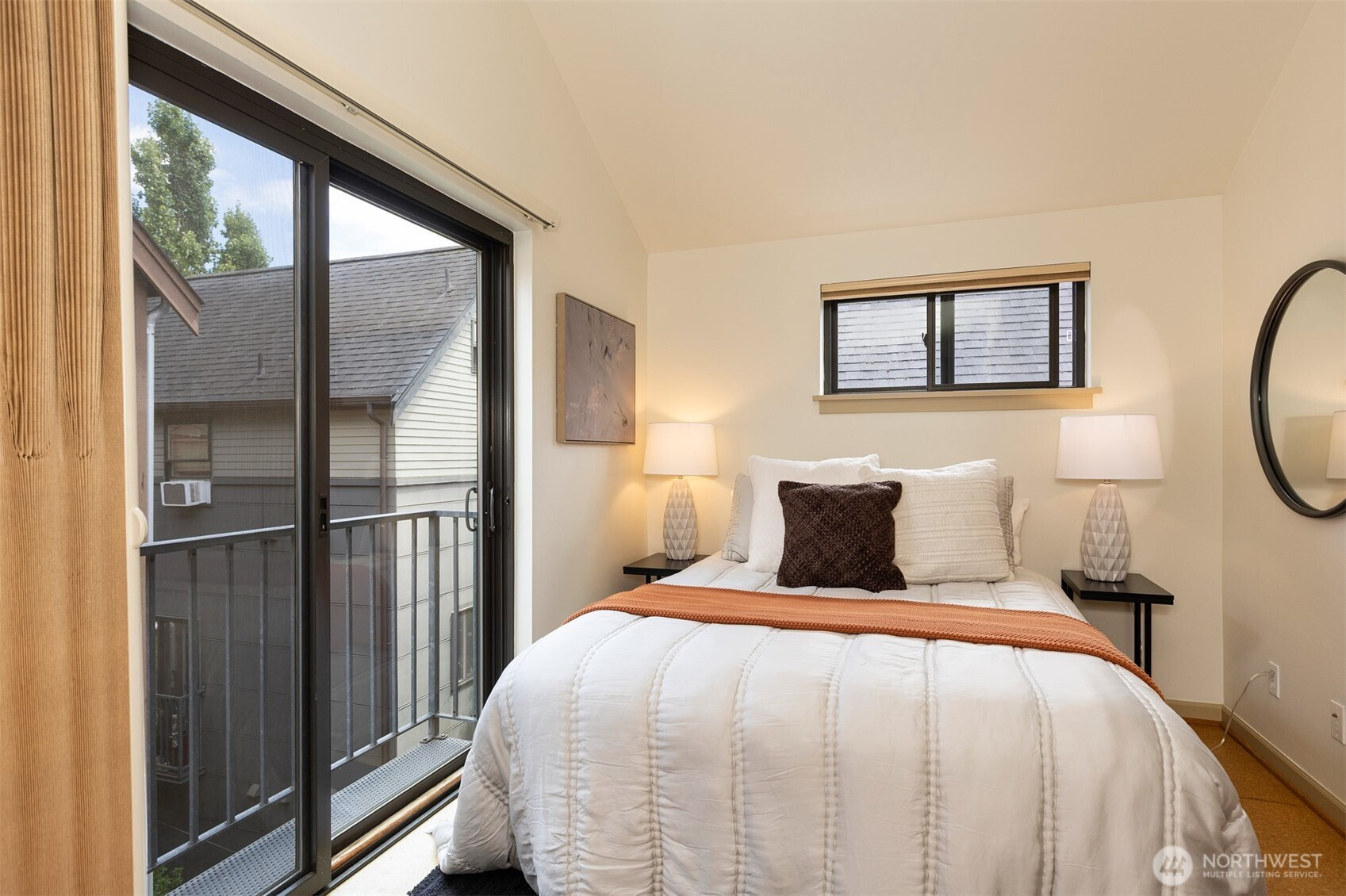 Live the active lifestyle in this stylish Green Lake townhome blending industrial charm & modern design—just steps from the lake and trails. After crossing the charming courtyard, enter to a flexible office/den adjacent to the 1-car garage. The next level brings light-filled great room with soaring ceilings, wood accents, hardwood floors, a sleek kitchen with granite counters, stainless appliances & separate dining space and powder room. An open-tread staircase with stainless steel railings leads to the upper level with, cork flooring, two bedrooms w/ vaulted ceilings and full bath, creating a peaceful retreat above it all. Step outside to run, bike, swim, or play at Green Lake, with cafes, tennis courts, and RapidRide all moments away.