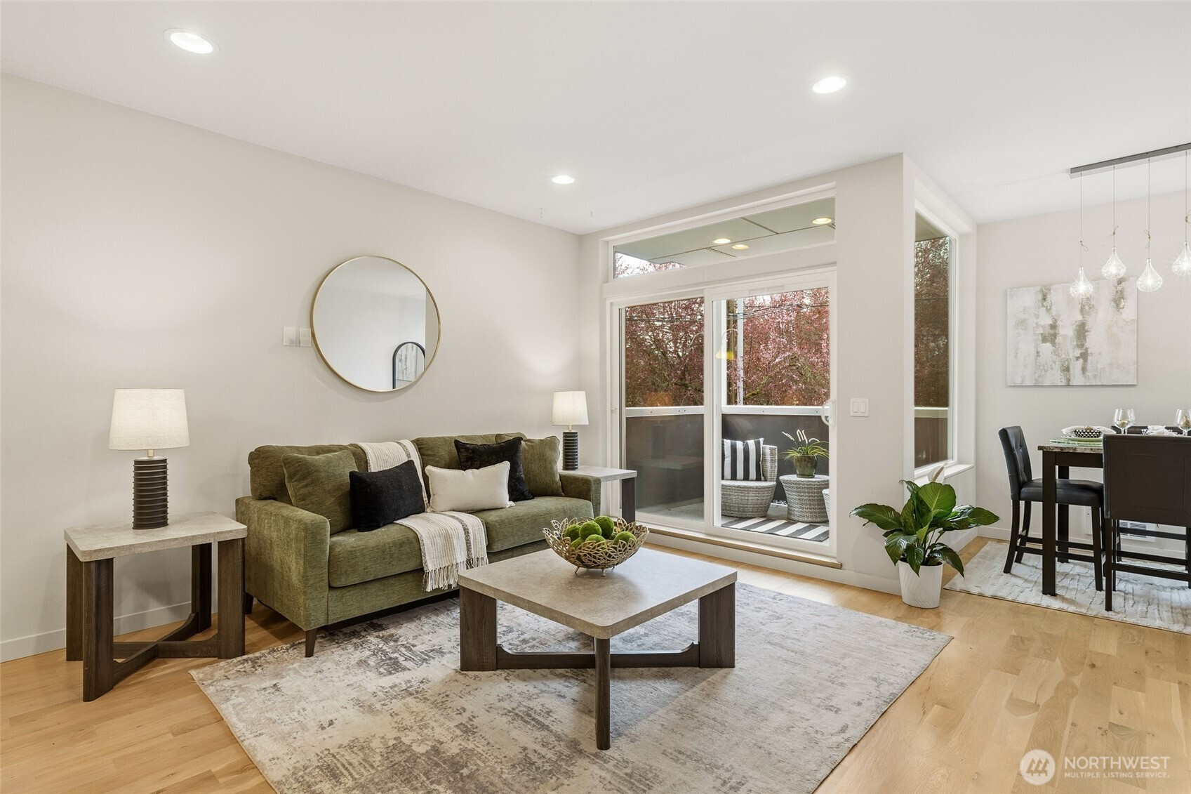 Welcome to your Ballard sanctuary—where comfort, light, and connection come together. Step inside and feel instantly at ease. Sunlight fills every corner, hardwood floors add warmth underfoot, and blooming cherry trees signal the arrival of spring just outside your windows. Tucked on a quiet street, this thoughtfully designed 4-Star Built Green home offers not just beauty, but a lifestyle that feels calm, effortless, and connected. The open-concept main floor is made for living—whether you're hosting friends or enjoying a quiet night in. A chef’s kitchen anchors the space, perfect for everything from casual meals to lively gatherings, now featuring a new microwave and new dishwasher. Thoughtful details like soft-close cabinetry add a touch of everyday luxury. Step onto the deck and take in serene views of cherry blossoms in every direction. Upstairs, the primary suite is a true retreat, featuring a walk-in closet, dual-sink vanity, & a spa-like bath with a double shower head. A private deck creates the perfect setting for slow mornings or evening unwinding. The lower-level bedroom offers flexibility as a home office, art studio, workout space, or guest room, all with peaceful views of the tree-lined street. Outside, enjoy a newly fenced yard ready for pets, gardening, or summer BBQs. An EV-ready private garage + parking space. This intimate community is known for its friendly neighbors, potlucks & block parties, & an active neighborhood FB group that keeps everyone connected.