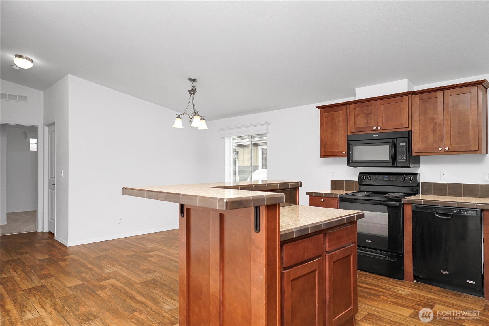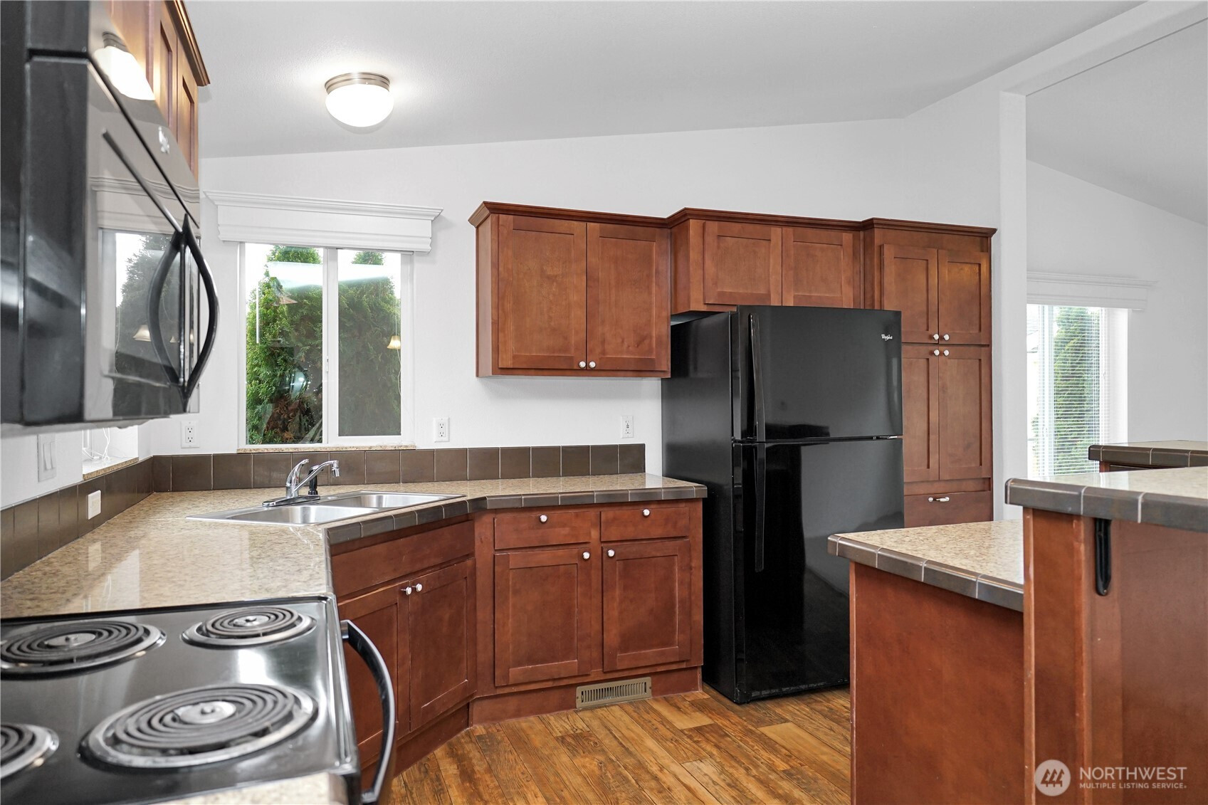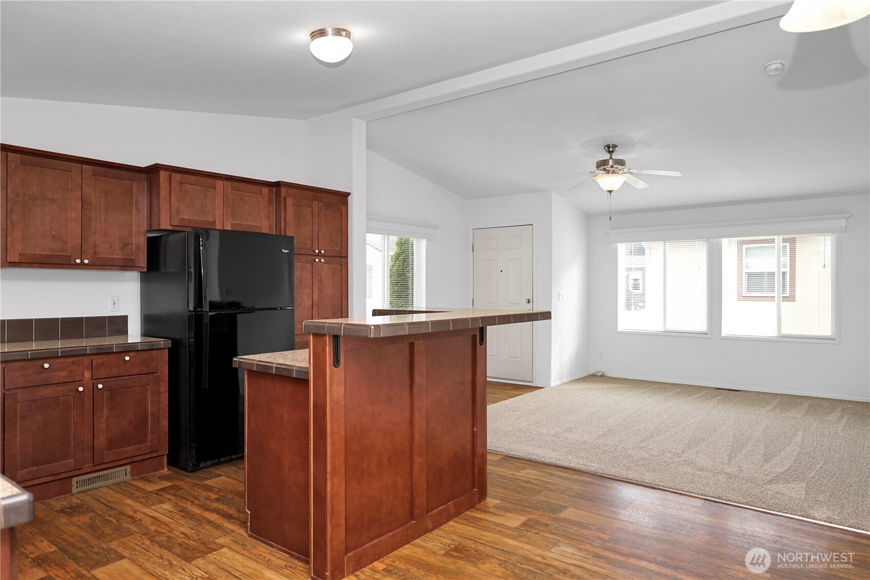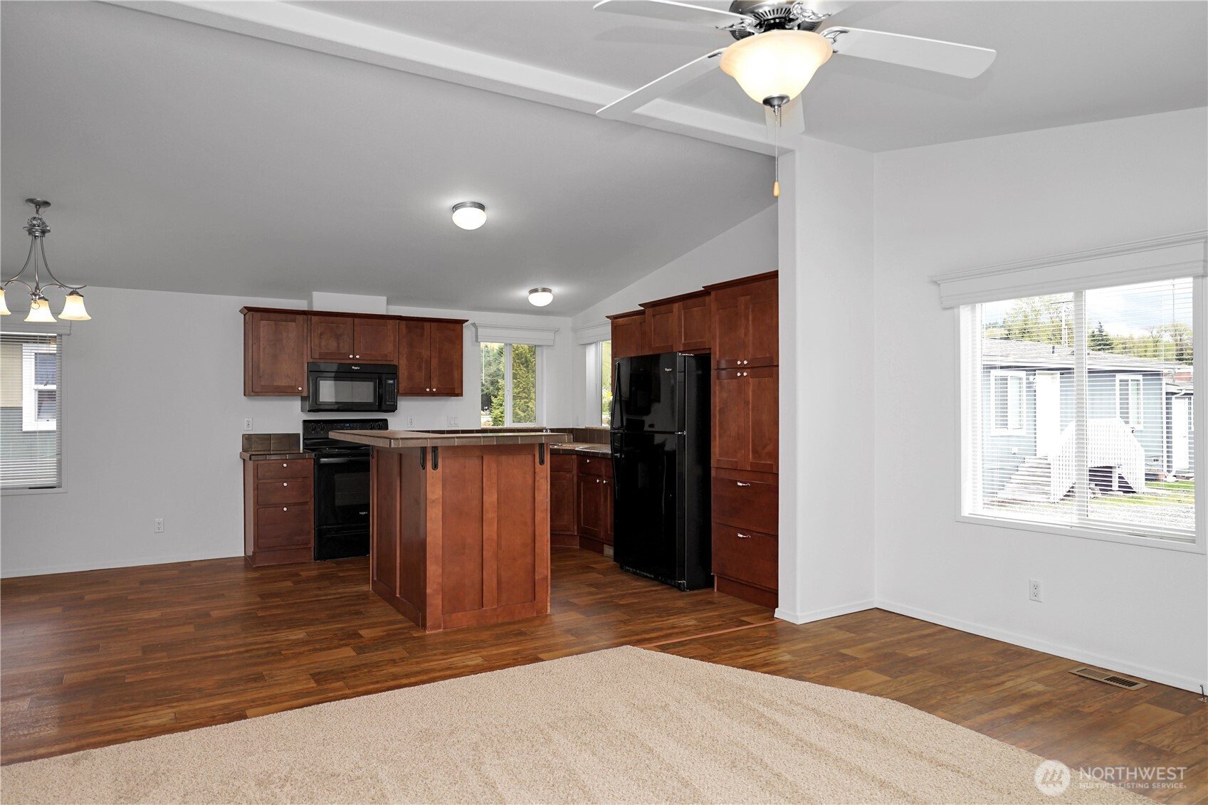 Welcome to this beautifully maintained, truly turn-key home awaiting you in the affordable 55+ community of Wonderland Estates! Drenched in natural lighting, this like-new 2015 home is ready for you! Featuring brand new carpets, fresh interior paint, vaulted ceilings, two bedrooms and 1.75 baths across an efficient 1,026 sqft. Enjoy the spacious living room, dining room and open kitchen with plenty of counter and cabinet storage, a utility room, a large second bedroom with it's own private entry using the back deck plus the oversized primary bedroom with large dual door closets, patio access and an ensuite bathroom. Enjoy your coffee on the covered patio year round! Pets will enjoy the covered turfed pet relief area on the patio along with the low maintenance turfed, gated and fenced backyard. Gardeners will enjoy the large flower bed in front of the home. Additional storage available in the attached storage w/ power. RV parking available in the community for a fee. Desirable location off Maple Valley Hwy close to entertainment, shopping & golfing.