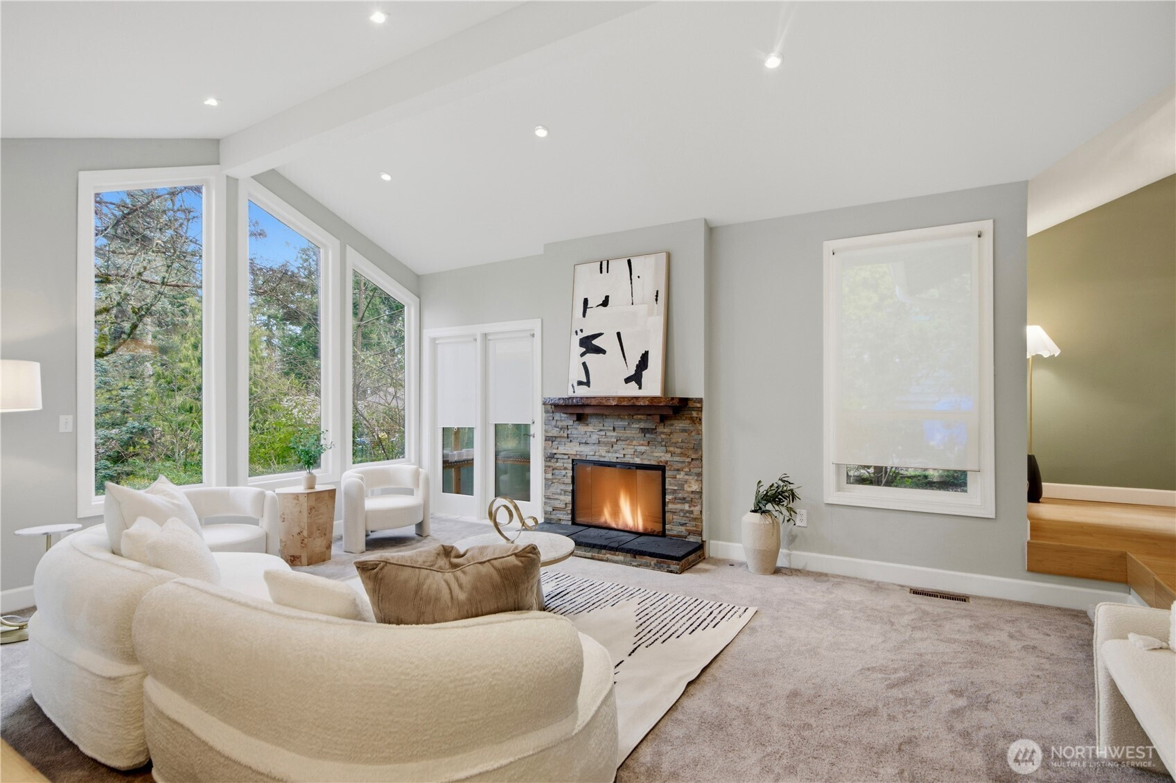 Experience sophisticated living in this immaculately updated Northwest Contemporary, nestled in Bellevue’s Horizon Crest. Dramatic vaulted ceilings and floor-to-ceiling windows flood the home with natural light, highlighting elegant hardwood floors. The chef's kitchen is a masterpiece featuring high-end Miele appliances, granite countertops, and cozy heated tile floors. Upstairs, find 3 bedrooms including a serene primary suite with a luxurious private steam shower. The daylight lower level offers a 4th bedroom suite and huge rec room. Step outside to a private, fully fenced backyard with a spacious deck, tranquil water feature, custom treehouse, play structure and lush landscaping for endless outdoor fun.Peace of mind upgrades: newer roof, furnace, AC, water heater, insulation, sprinkler system, nest thermostat. An expansive driveway provides ample space for extra RV or boat parking. The two-car garage is complemented by an additional level perfect for a shop or extra storage.Unbeatable location with easy access to I-90/I-405, parks, and trails. Top-rated Bellevue schools including Newport High! Welcome home.