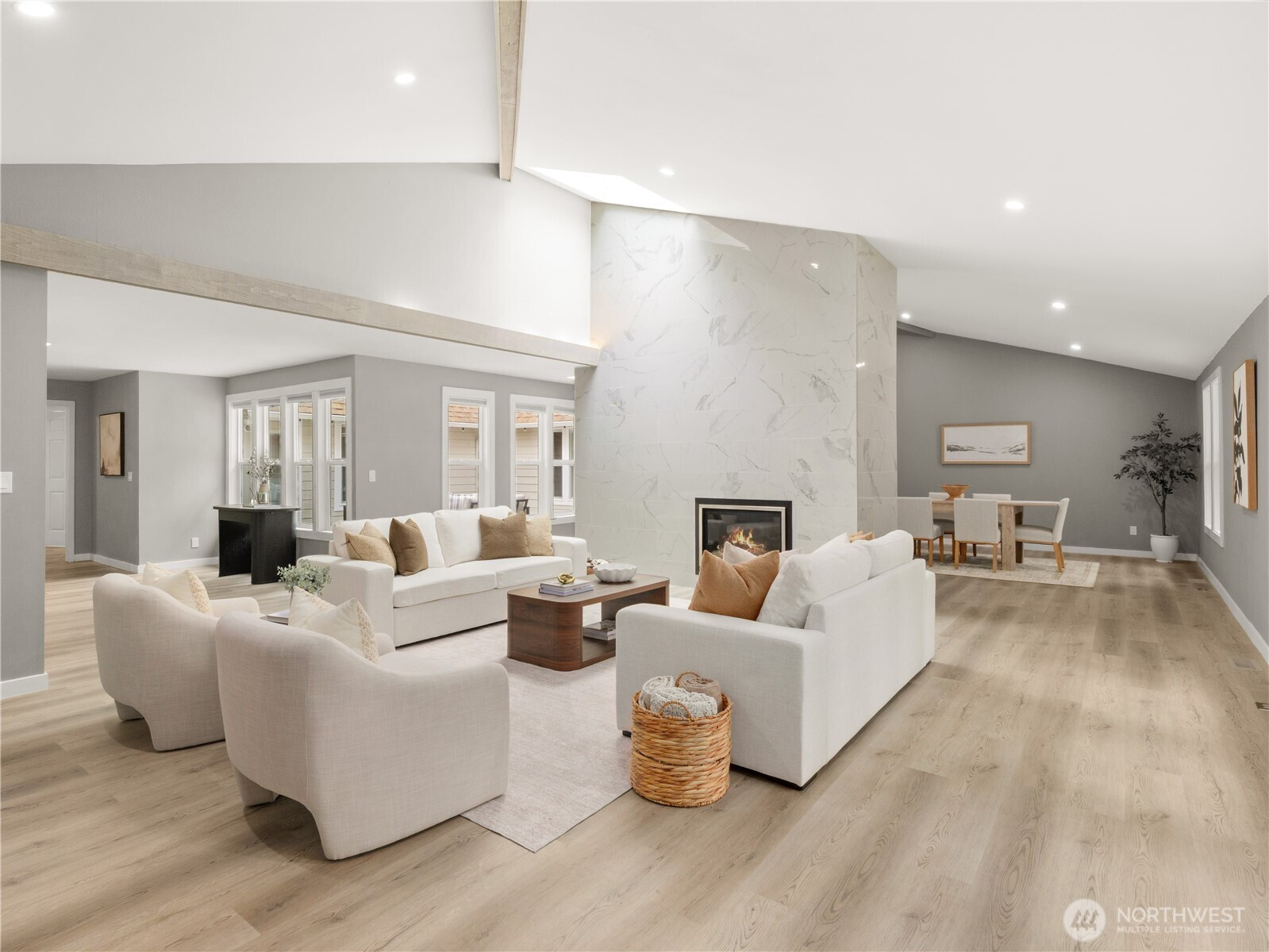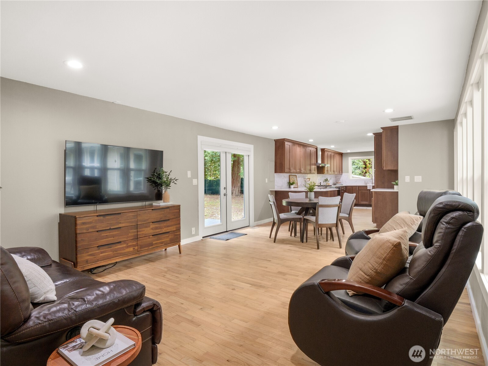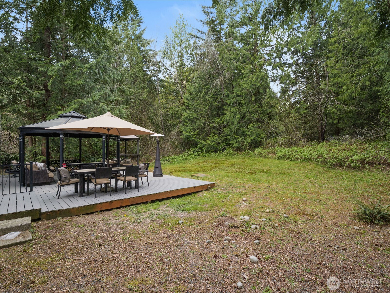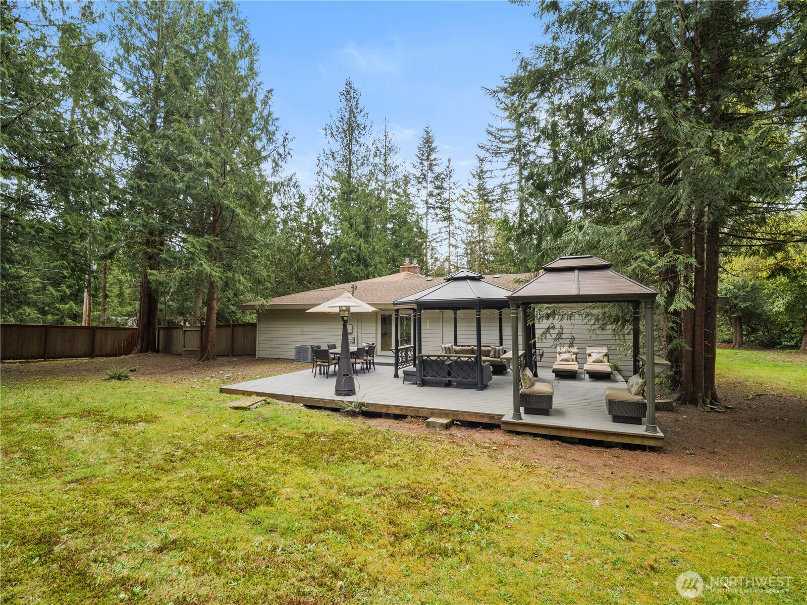 Tucked on a flat, shy acre in sought-after Mirrormont, this beautifully remodeled rambler offers privacy, personality, and rare flexibility. Surrounded by towering trees and natural beauty, the home centers around a stunning open-air atrium with Trex decking—an unexpected indoor/outdoor sanctuary ideal for morning coffee, evening wine, dining, or entertaining under the stars. Inside, enjoy vaulted two-story ceilings, skylights, a dramatic double-sided, marble fireplace, expansive living spaces, and a designer kitchen with custom cabinetry, granite counters and high-end appliances. French doors open to an oversized deck and gazebo overlooking the private backyard. Car lovers, hobbyists, and collectors will appreciate the extraordinary detached garage with mechanics pit, room for lifts + multiple vehicles and toys, plus attached carport. The second driveway is perfect for RV parking, a home-based business or guests and gives extra flexibility to the layout and functionality. Access to optional Mirrormont Community amenities, including tennis courts, pea patch, pool and events/activities. Feel like you're in another world, yet you're only ~12 mins from downtown Issaquah. Single-level living with timeless style, space, and versatility.