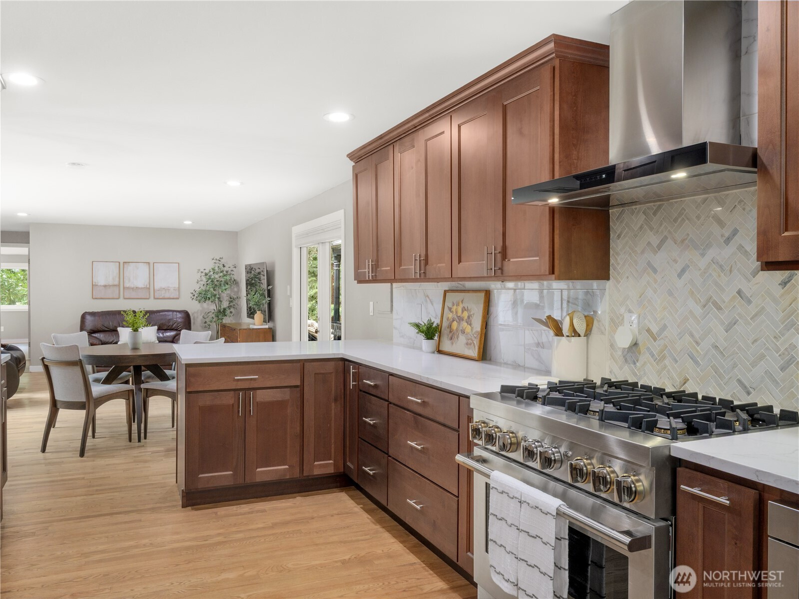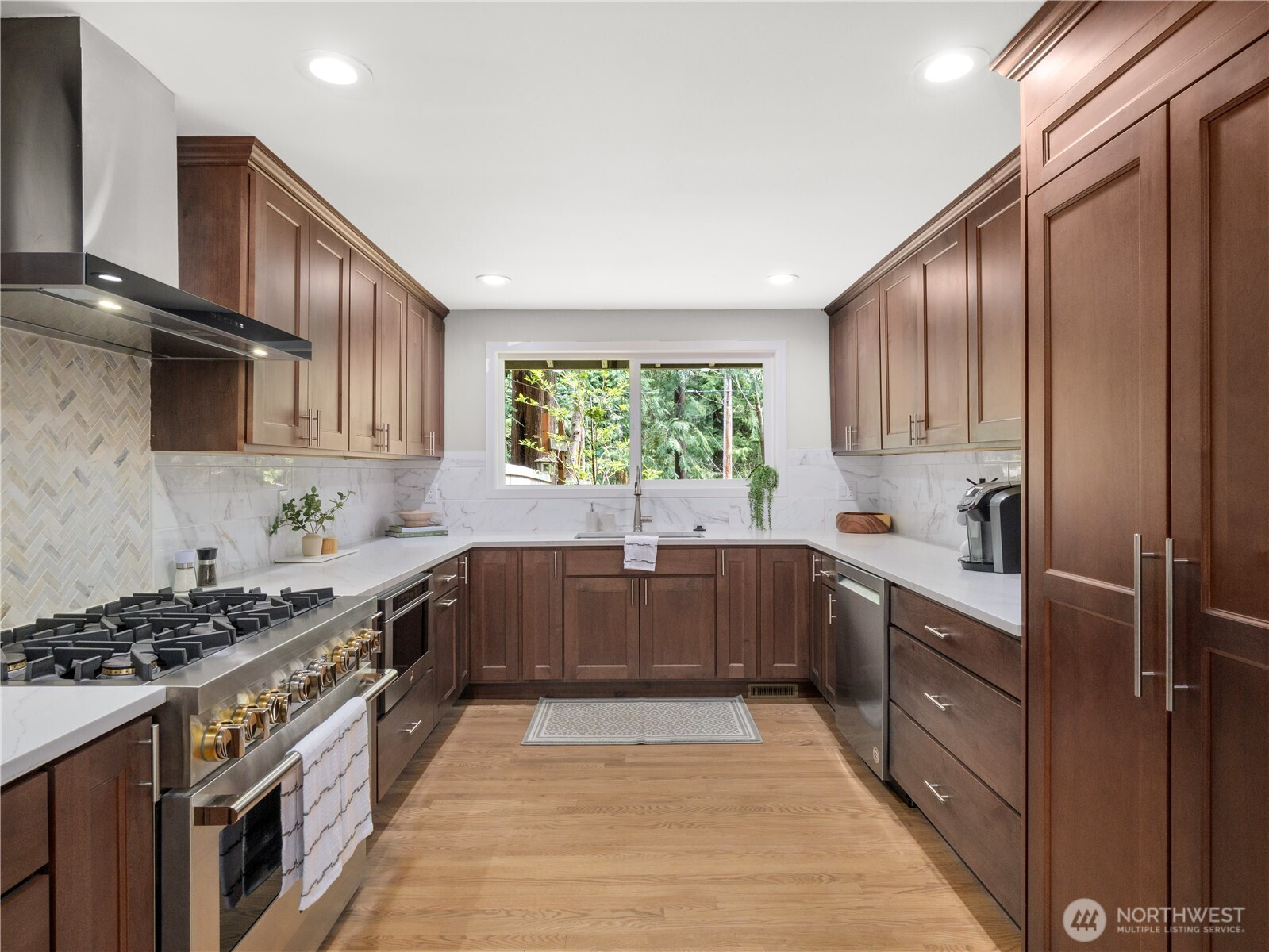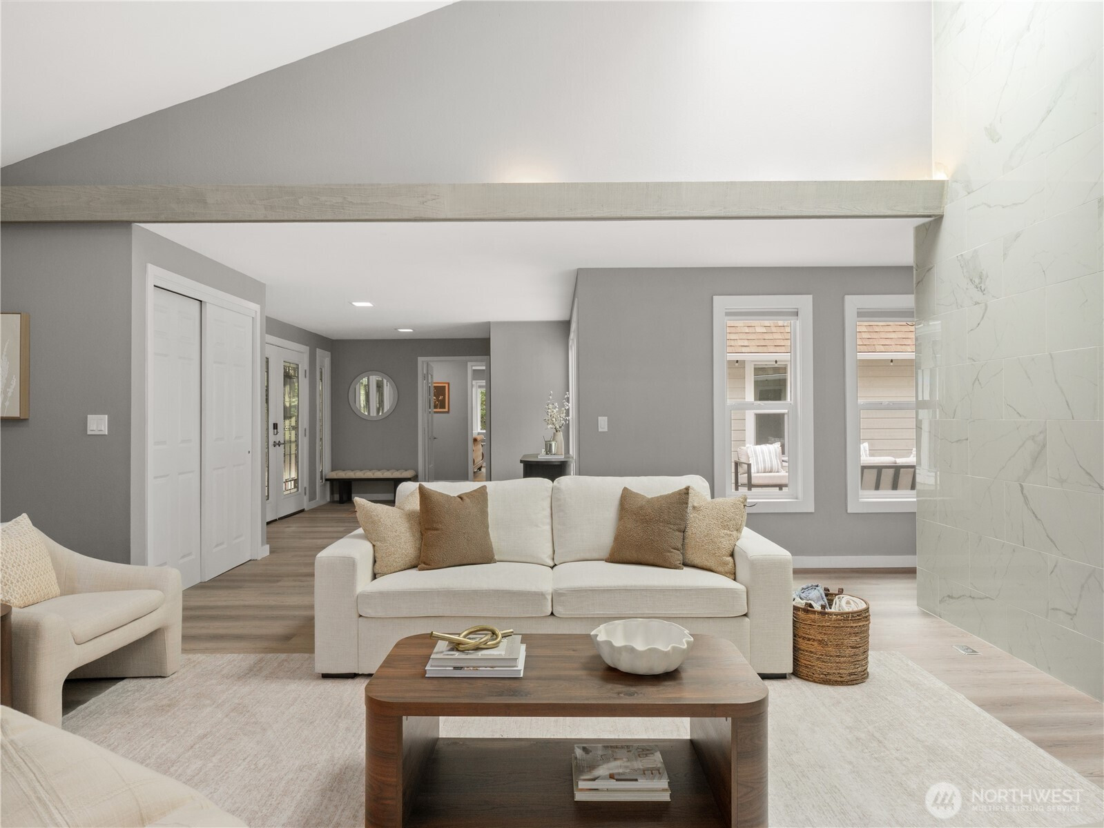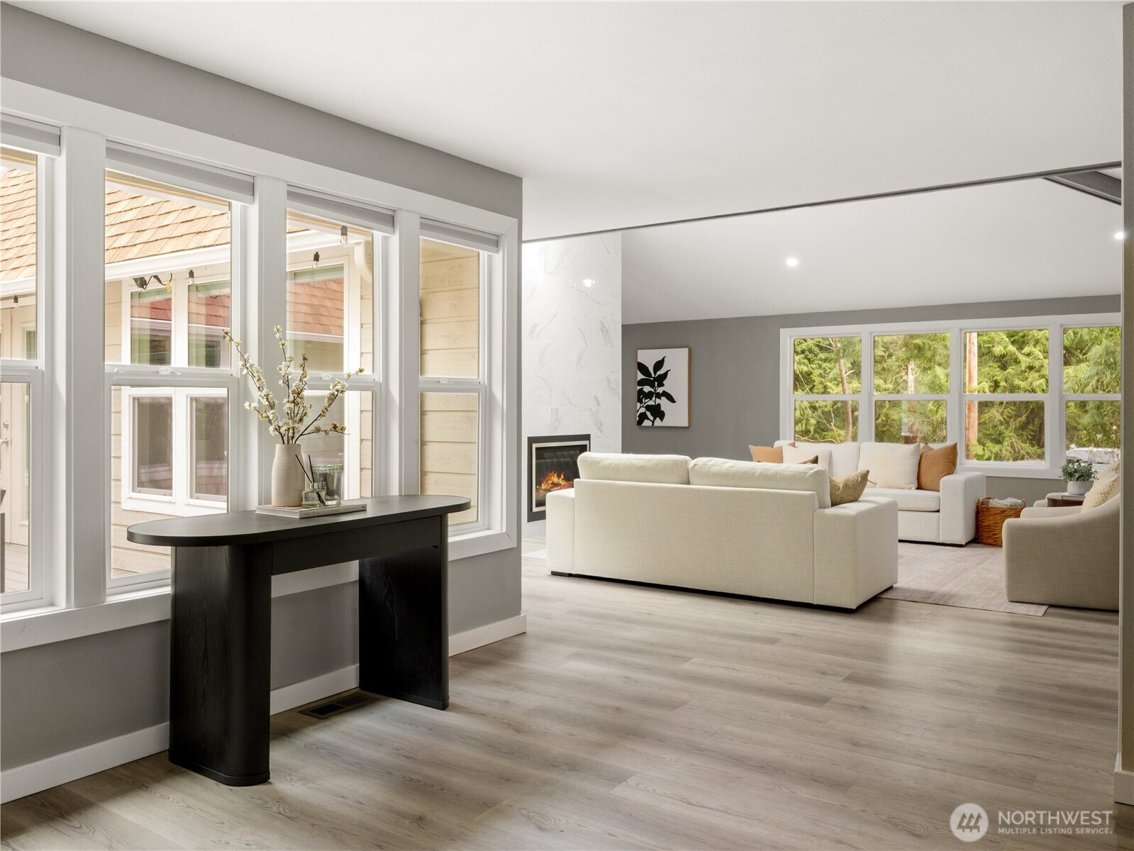 Tucked on a flat, shy acre in sought-after Mirrormont, this beautifully remodeled rambler offers privacy, personality, and rare flexibility. Surrounded by towering trees and natural beauty, the home centers around a stunning open-air atrium with Trex decking—an unexpected indoor/outdoor sanctuary ideal for morning coffee, evening wine, dining, or entertaining under the stars. Inside, enjoy vaulted two-story ceilings, skylights, a dramatic double-sided, marble fireplace, expansive living spaces, and a designer kitchen with custom cabinetry, granite counters and high-end appliances. French doors open to an oversized deck and gazebo overlooking the private backyard. Car lovers, hobbyists, and collectors will appreciate the extraordinary detached garage with mechanics pit, room for lifts + multiple vehicles and toys, plus attached carport. The second driveway is perfect for RV parking, a home-based business or guests and gives extra flexibility to the layout and functionality. Access to optional Mirrormont Community amenities, including tennis courts, pea patch, pool and events/activities. Feel like you're in another world, yet you're only ~12 mins from downtown Issaquah. Single-level living with timeless style, space, and versatility.