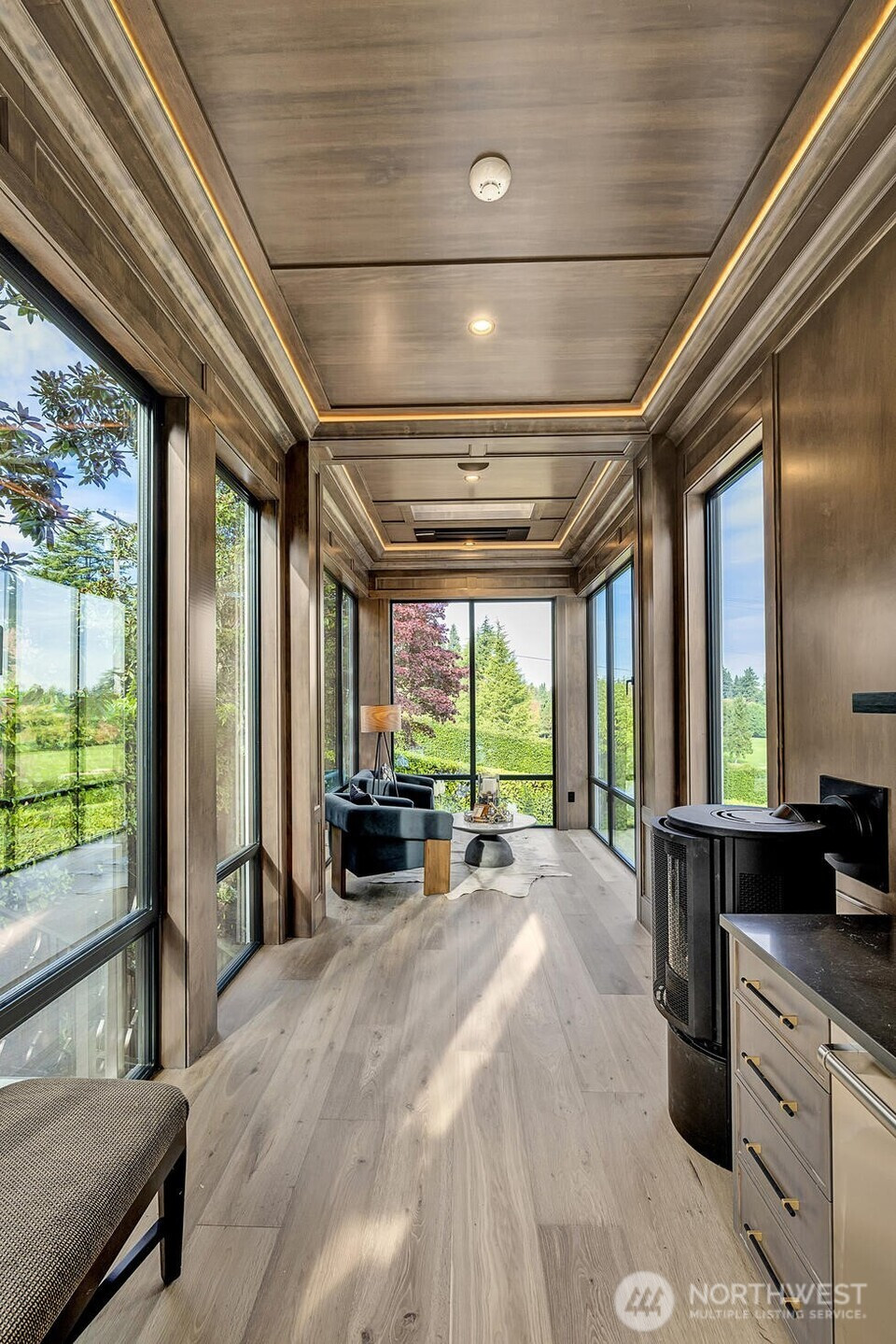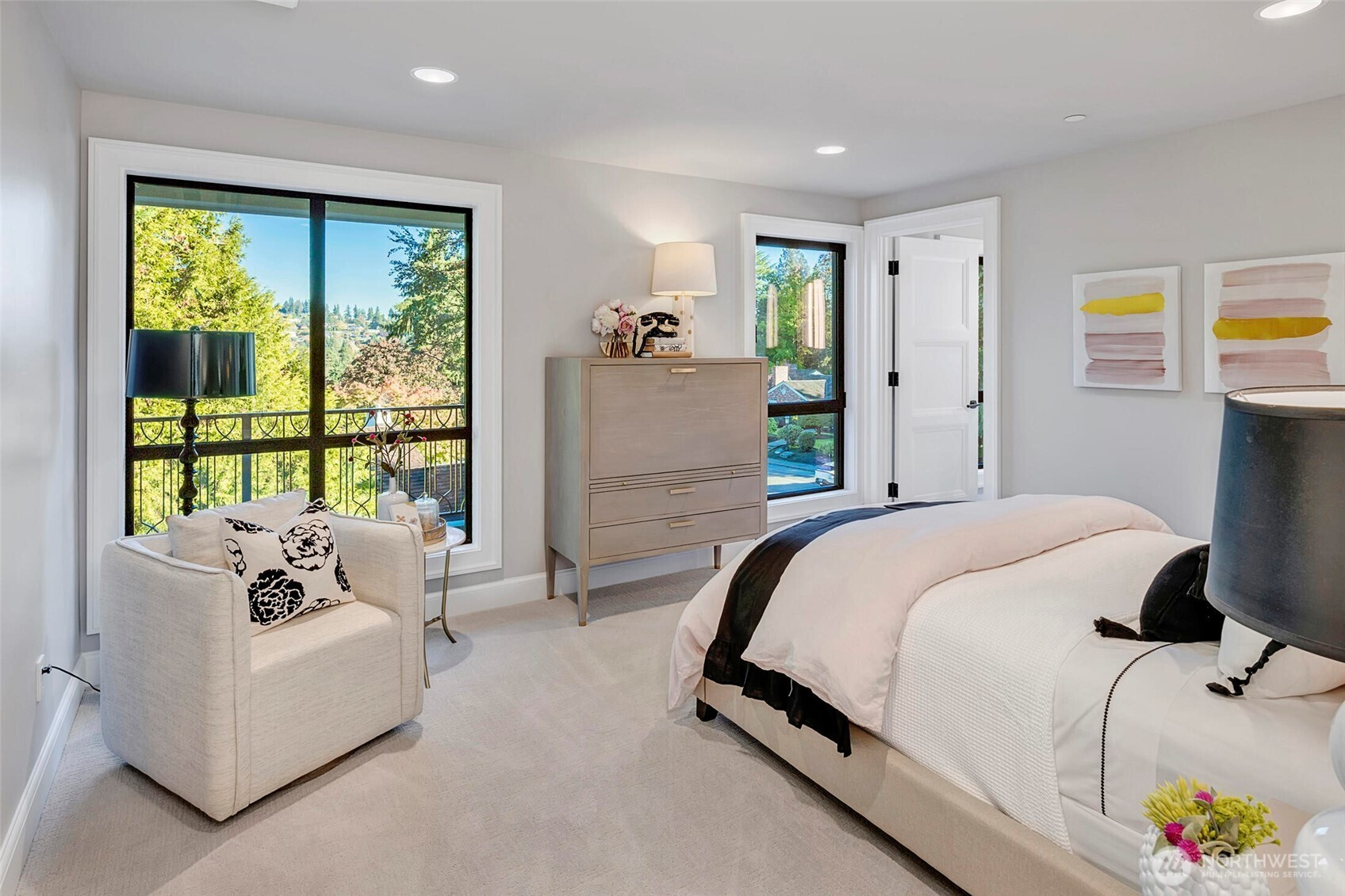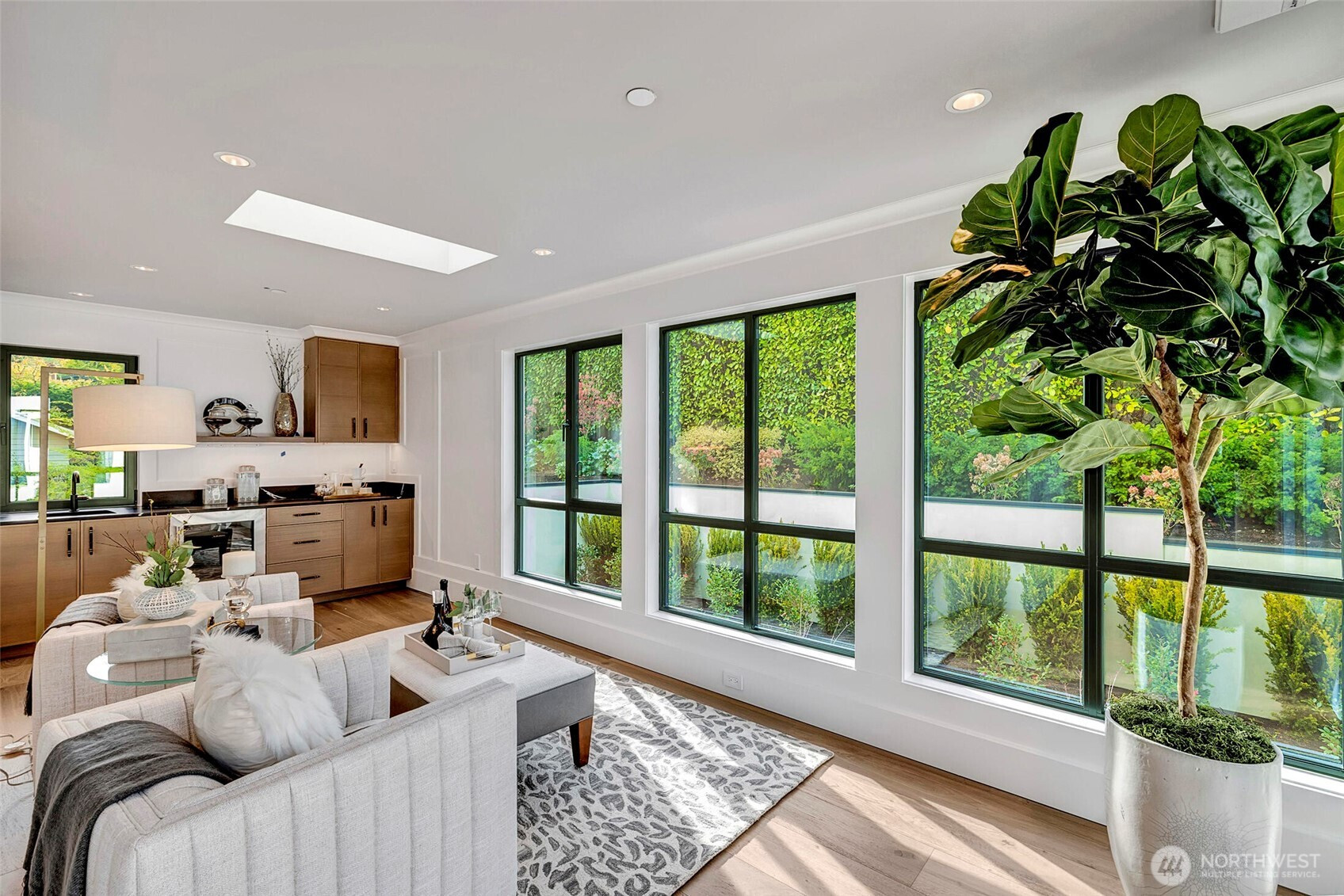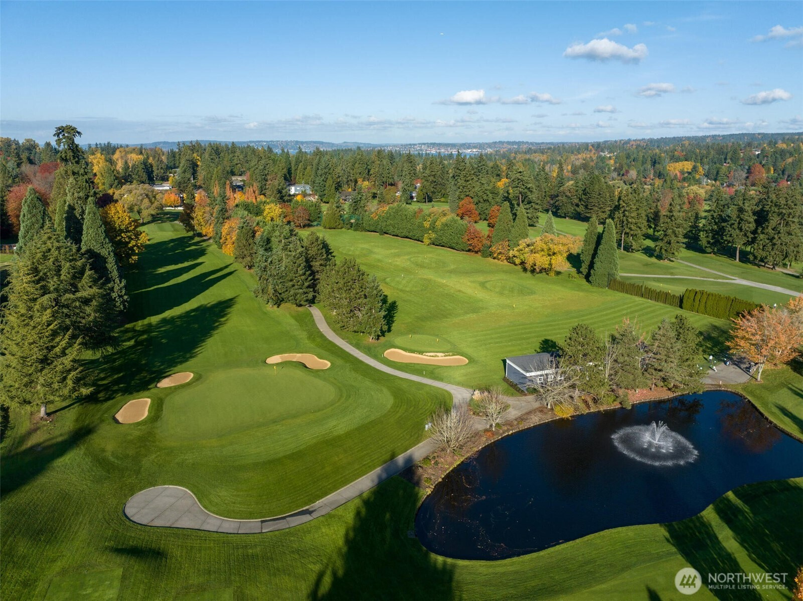 Built in 2023, this is one of the most extraordinary new construction home Medina has ever seen - an irreplaceable modern retreat across from the prestigious Overlake Golf & Country Club. Spanning over 9,000+SF, it features 5 en-suite bedrooms, 9 baths, soaring ceilings, and 10-foot gallery style hallways. Floor-to-ceiling triple-pane windows frame breathtaking views from manicured fairways to the Bellevue skyline. Designed with solar power, advanced smart features, private theater, gym, office, outdoor kitchen, and a detached Sky Lounge, it delivers unmatched luxury. Set on a discreet, elevated lot, the home offers rare privacy while being steps from elite amenities. This one-of-a-kind opportunity may never come again. (staging removed)