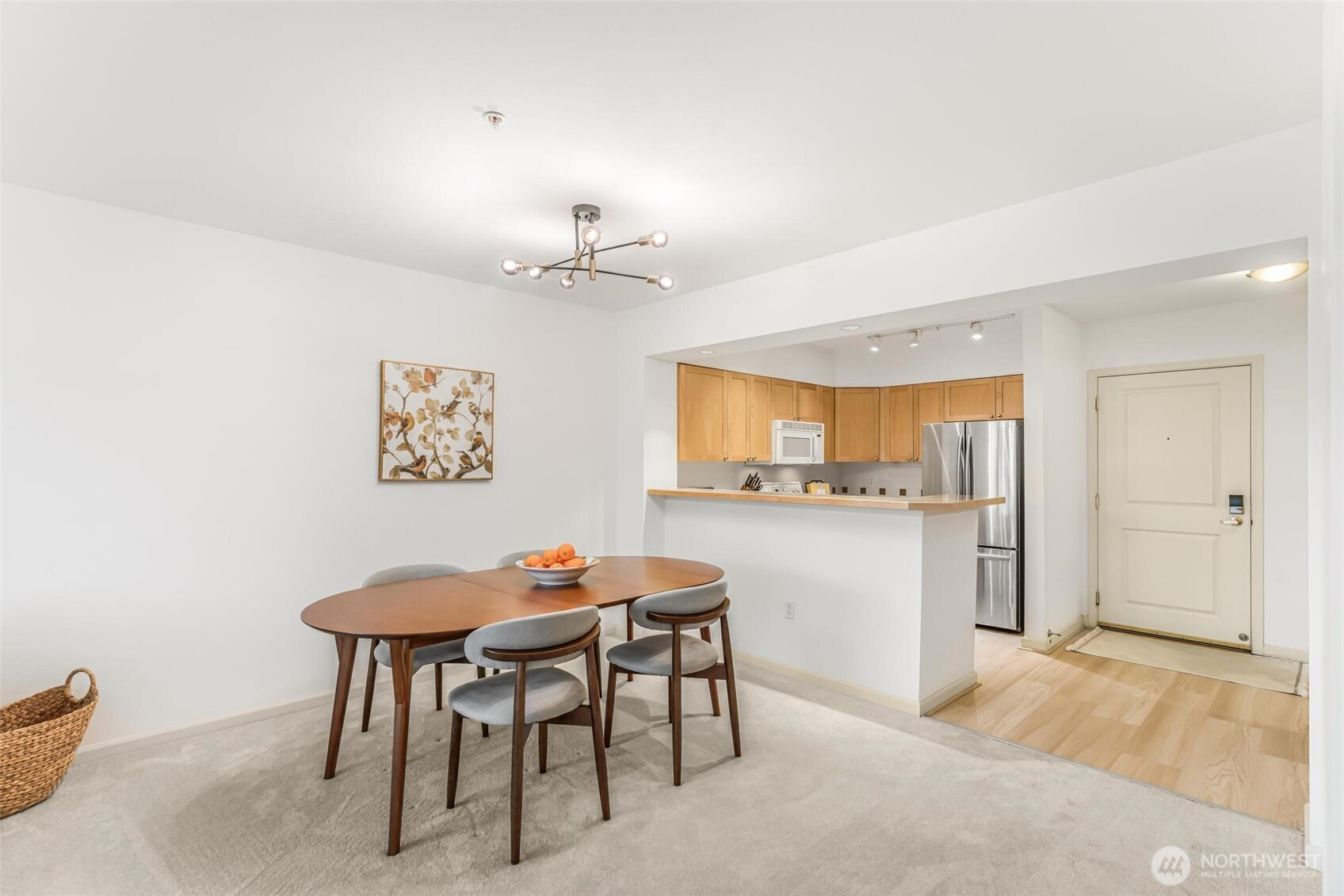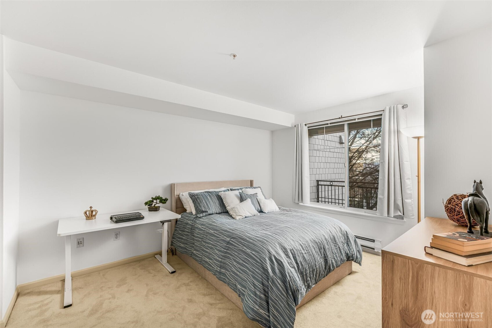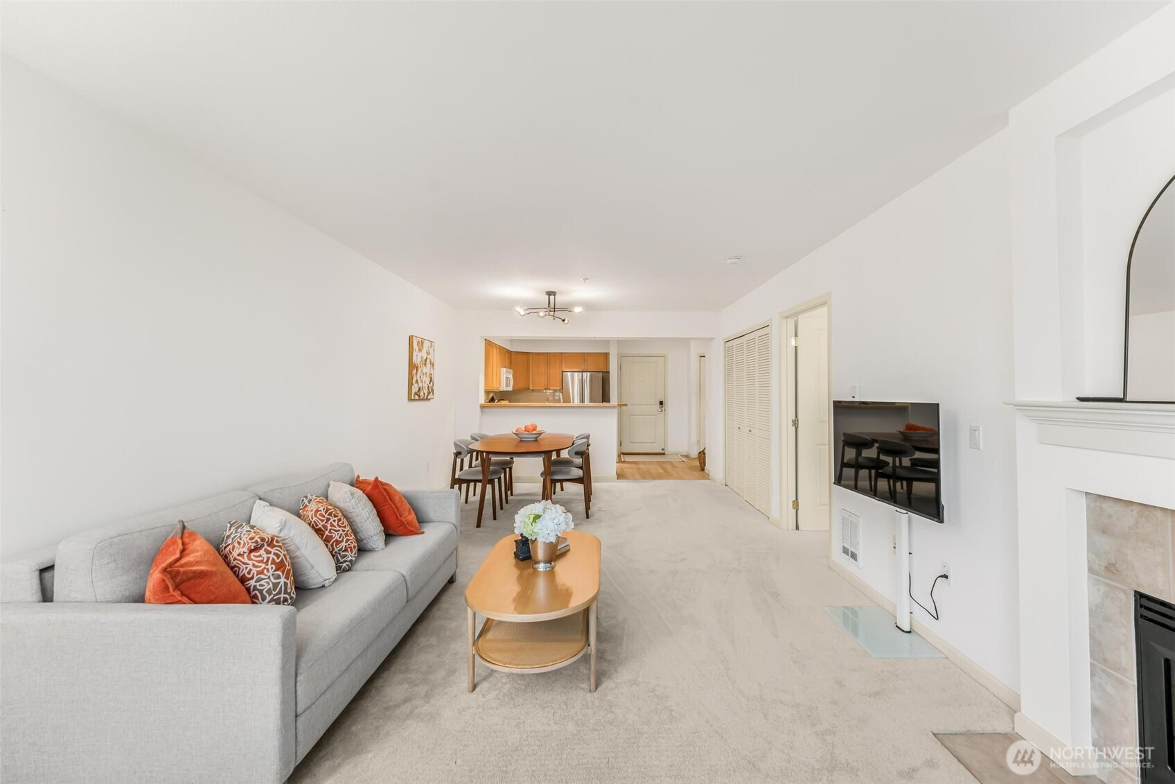 Welcome home to this beautifully updated and spacious 1 bedroom, 1 bathroom 879 SF condo nestled in the heart of Ballard. Located on a tranquil tree-lined street, this cozy home at the Ballard Place community features a bright and open floorplan with natural light. Enjoy the brand new plush wall-to-wall carpeting & a new luxury vinyl plank floor entryway. Spacious primary bedroom can easily accommodate a King sized bedroom set and features 2 closets which includes a walk-in closet. Cozy up to the gas fireplace on those chilly nights or relax on your private patio. Conveniences include full sized in-unit washer/dryer, 2 secure tandem parking spaces, new water heater and ample closets with storage throughout. Secure building features concierge, outdoor pool, hot tub, sauna, gym, patio with BBQ grills, clubhouse, conference room, business center and rooftop deck with garden space. Pet friendly with No Rental Cap. With a walk score of 98, this serene home is the perfect in-city retreat just steps from vibrant downtown Ballard and all that it has to offer with it shops, restaurants and year-round Farmer’s Market.