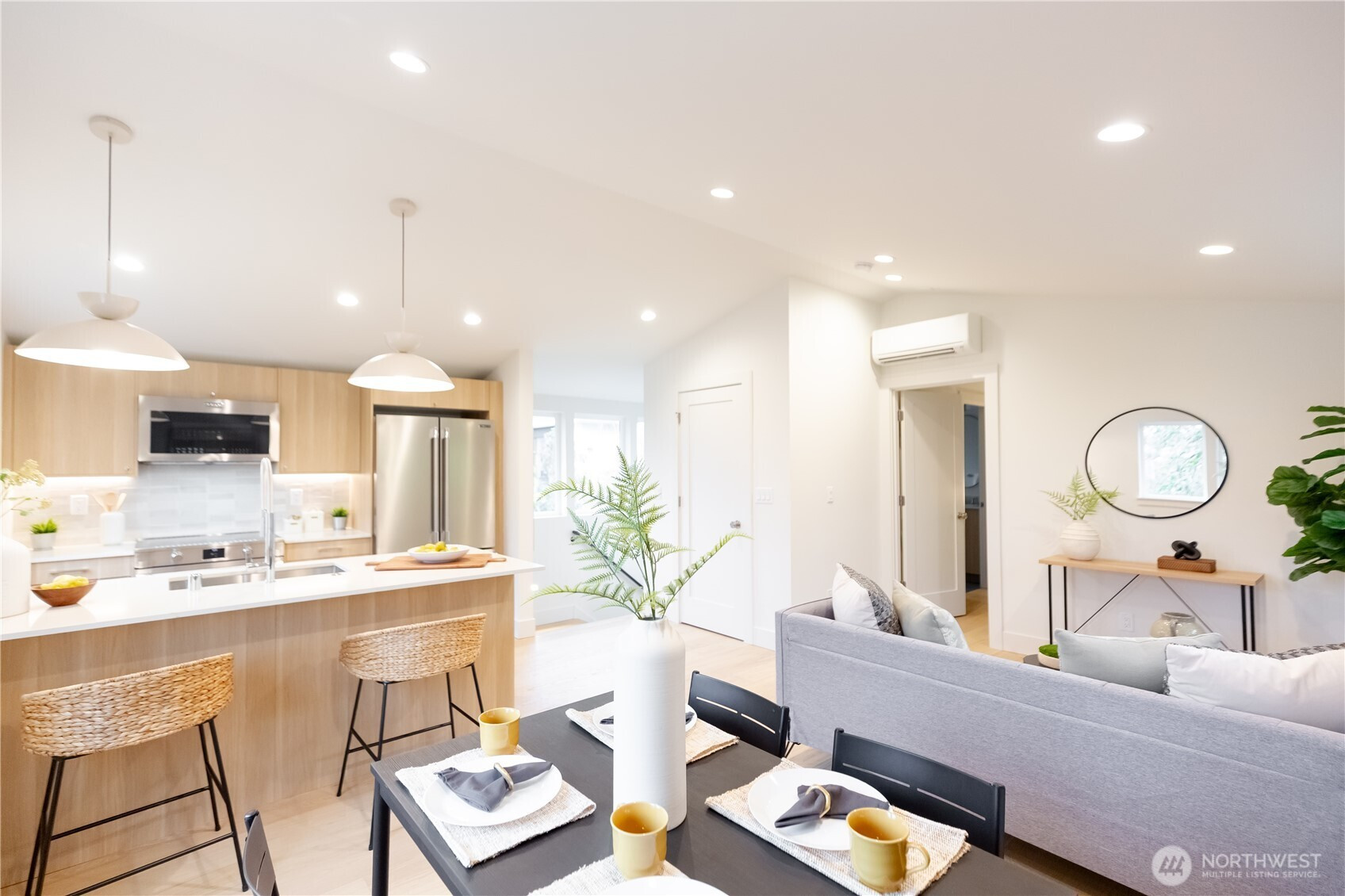 Welcome to this community of three newly built modern homes in Seattleās vibrant Central Area, crafted by Bungalow Building. Thoughtfully designed with contemporary living in mind, each home features an open-concept floor plan, premium finishes, and dedicated off-street EV-capable parking. This two-story, 1,073 sq ft detached residence offers a main-level entry featuring two bedrooms, a full bath, laundry closet, and a sliding glass door to access a private patio. Upstairs, the second level includes an open living and dining area, a U-shaped kitchen with a large peninsula quartz countertop, modern Bellmont cabinetry, stainless steel appliances/induction range. This floor also features the primary suite with a walk-in closet and full bath. High-end details throughout include engineered wide-plank oak flooring, smooth wall finish, custom tilework, frameless glass showers, private outdoor space, and energy-efficient mini-split heating and A/C on all floors. Ideally located just minutes from downtown Seattle, Capitol Hill, the Arboretum, and Madison Park, with easy access to neighborhood cafes, markets, and major commuting routes. Schedule a tour today! Walkscore 77. 4-star built green certificate pending.