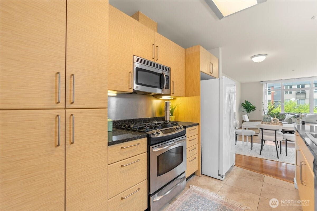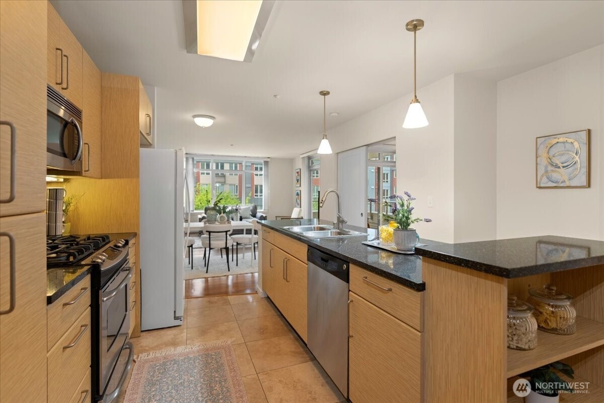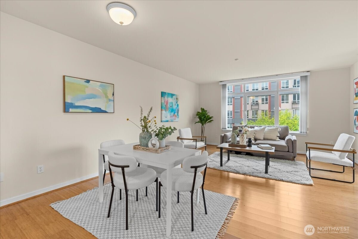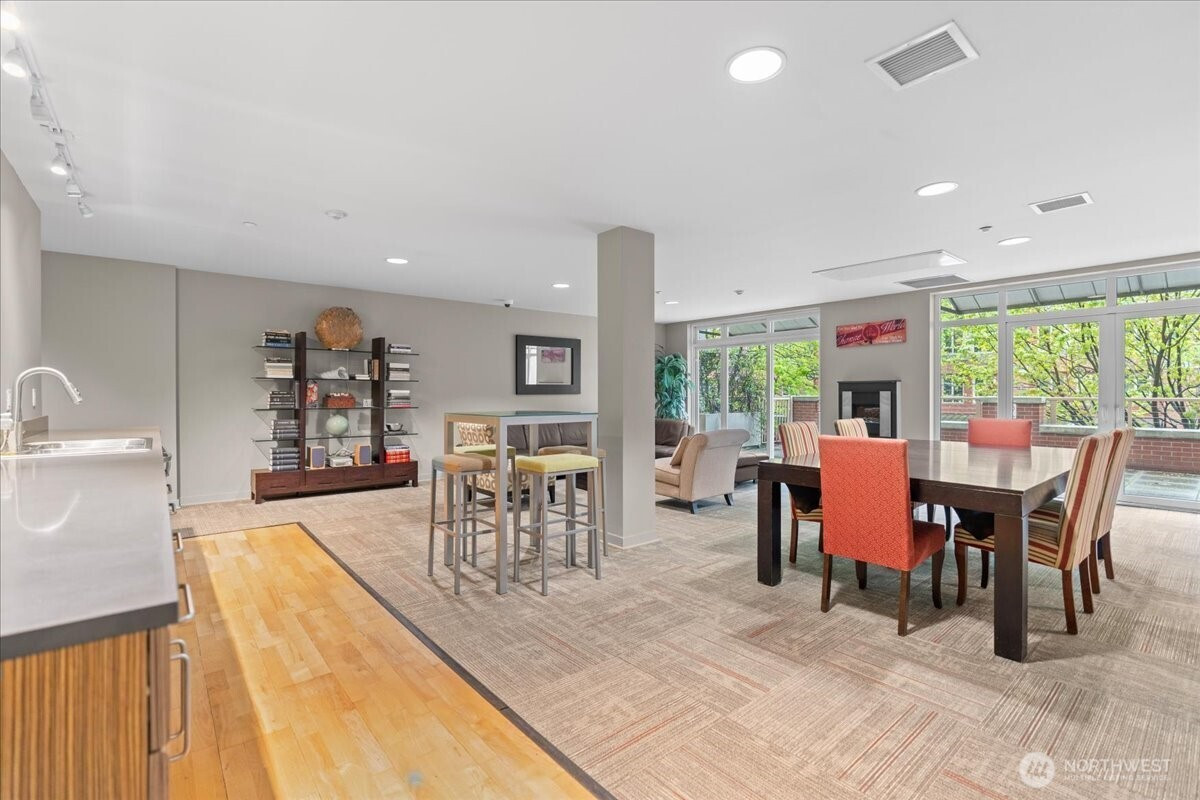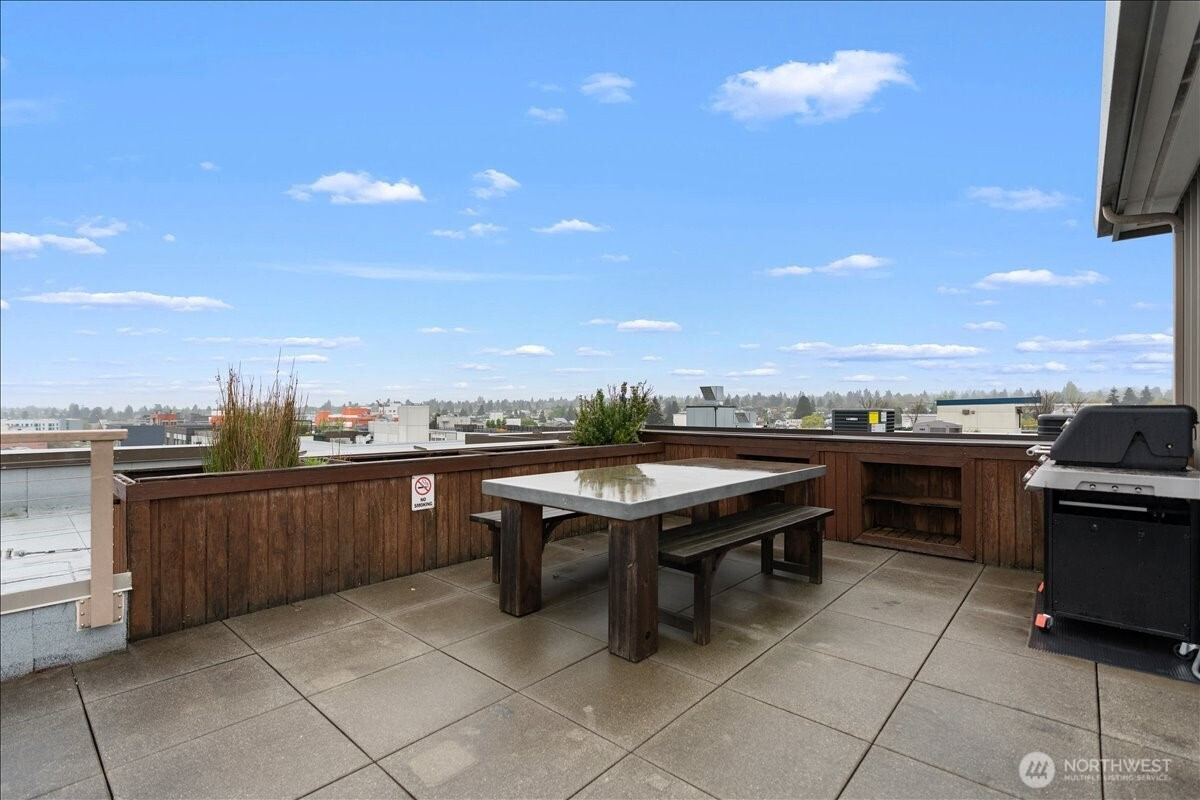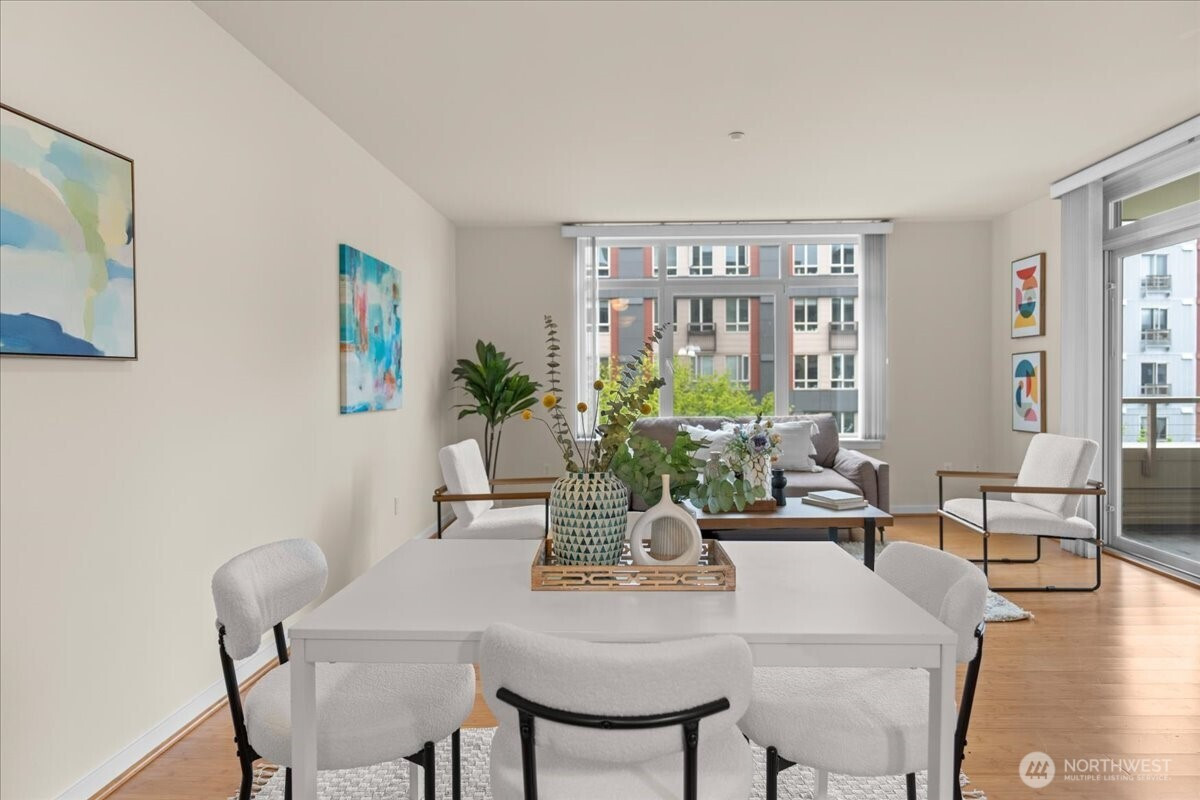 Experience elevated urban living in this light-filled 5th-floor residence at Hjärta—Ballard’s only LEED Silver certified condominium. Built with concrete and steel construction, this spacious 789 sq. ft. home offers exceptional durability, superior sound insulation, and energy efficiency rarely found in traditional wood-frame buildings. The southwest-facing layout fills the home with natural light and features an expansive living area, ideal open concept floor plan with bamboo flooring, cozy fireplace, in-unit washer/dryer, and sliding glass doors on to covered private deck for year round enjoyment. The thoughtfully designed kitchen includes granite countertops, stainless steel appliances, gas range, pantry, and tile finishes, while bathroom is accented with quartz surfaces and modern tile. Hjärta offers outstanding amenities, including a rooftop deck with P-Patch garden and BBQ, an owner’s lounge with pool table, and a fitness center—all designed to enhance everyday living. Built with green materials, low-VOC finishes, and a focus on healthier indoor air quality. Ideally located in the heart of vibrant Ballard, you’re just steps from top dining, shopping, and entertainment. Pet-friendly and investor-friendly with NO rental cap, this home offers exceptional flexibility as a primary residence or investment. HOA dues include water, sewer, gas, and earthquake insurance, providing strong value and peace of mind. Walk Score 97 - Assigned Secured Covered Parking. Welcome Home!