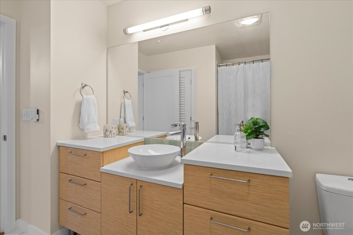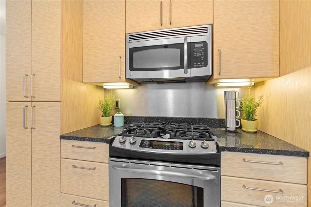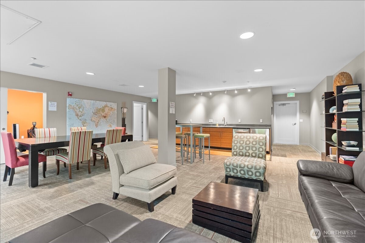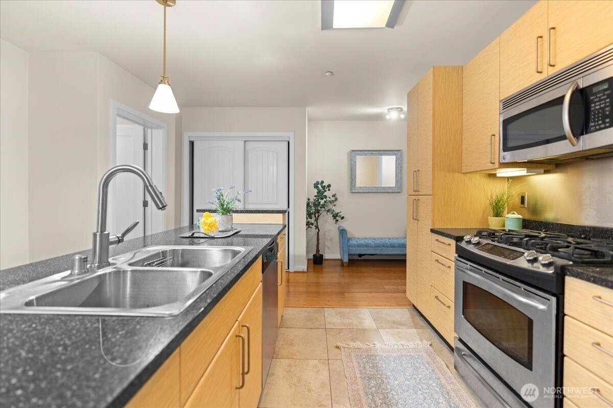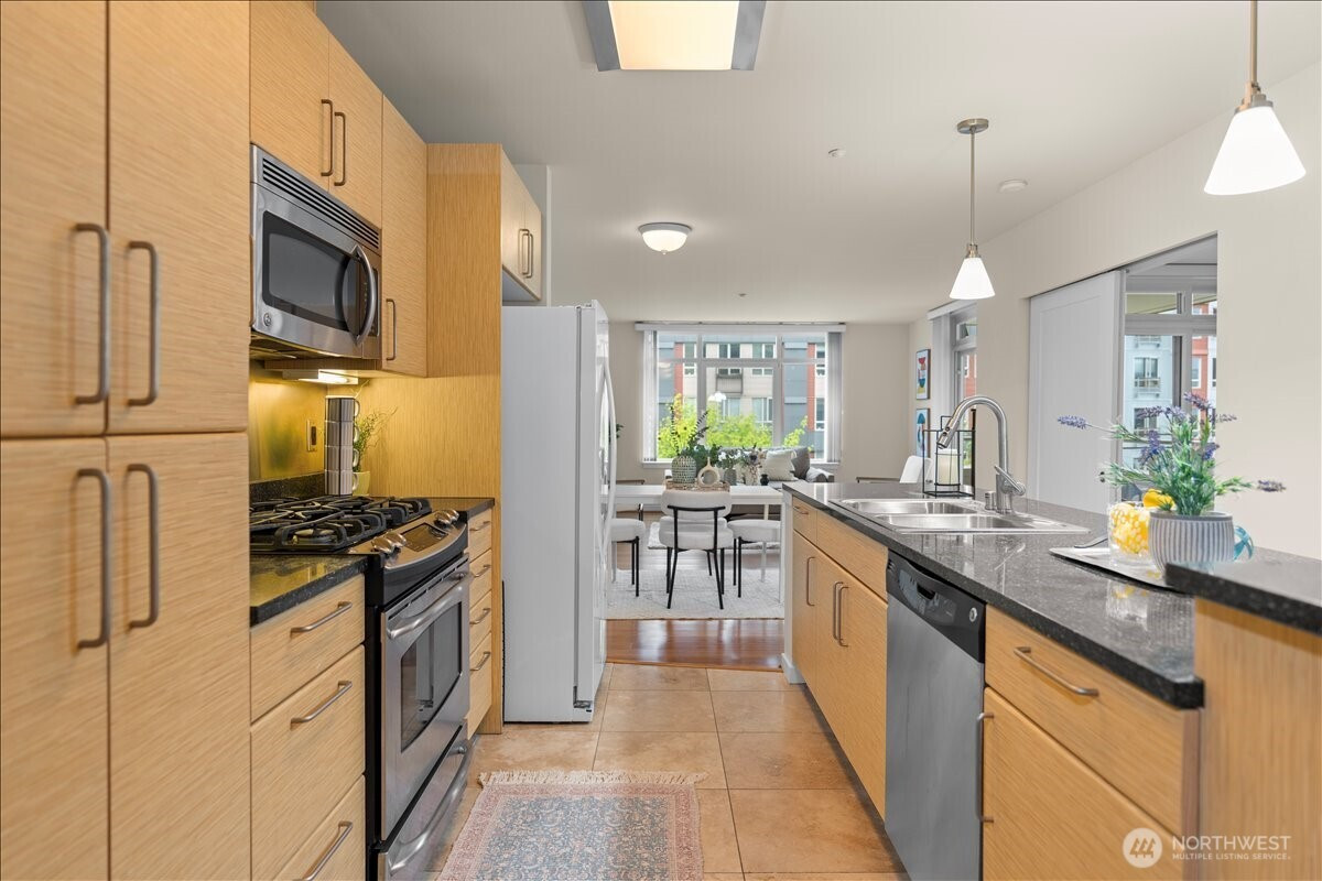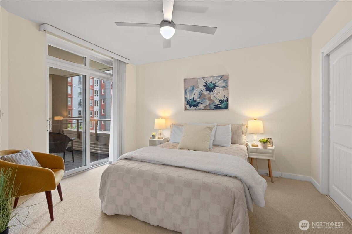Experience elevated urban living in this light-filled 5th-floor residence at Hjärta—Ballard’s only LEED Silver certified condominium. Built with concrete and steel construction, this spacious 789 sq. ft. home offers exceptional durability, superior sound insulation, and energy efficiency rarely found in traditional wood-frame buildings. The southwest-facing layout fills the home with natural light and features an expansive living area, ideal open concept floor plan with bamboo flooring, cozy fireplace, in-unit washer/dryer, and sliding glass doors on to covered private deck for year round enjoyment. The thoughtfully designed kitchen includes granite countertops, stainless steel appliances, gas range, pantry, and tile finishes, while bathroom is accented with quartz surfaces and modern tile. Hjärta offers outstanding amenities, including a rooftop deck with P-Patch garden and BBQ, an owner’s lounge with pool table, and a fitness center—all designed to enhance everyday living. Built with green materials, low-VOC finishes, and a focus on healthier indoor air quality. Ideally located in the heart of vibrant Ballard, you’re just steps from top dining, shopping, and entertainment. Pet-friendly and investor-friendly with NO rental cap, this home offers exceptional flexibility as a primary residence or investment. HOA dues include water, sewer, gas, and earthquake insurance, providing strong value and peace of mind. Walk Score 97 - Assigned Secured Covered Parking. Welcome Home!