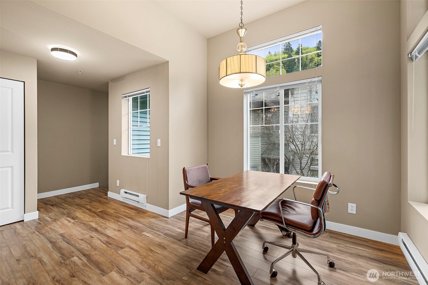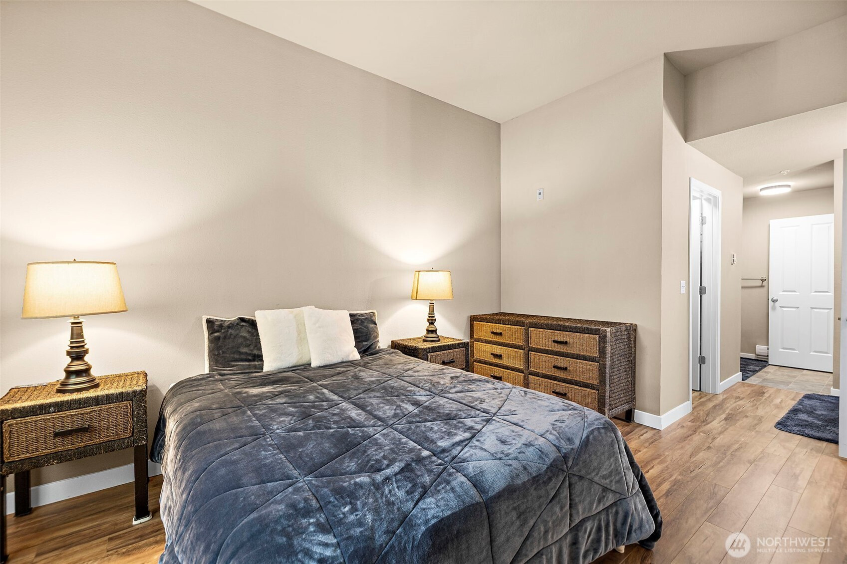 Beautifully maintained upper-level end unit offering two bedrooms and two full bathrooms with a spacious, flowing layout. The main living and dining areas feature impressive 10 foot ceilings that enhance the openness and bring in abundant natural light. The primary suite is generously sized, complete with elevated ceilings, a walk-in closet, and a private full bathroom. The home has been updated refreshed interior finishes, including laminate hardwood floors, stainless steel kitchen appliances, and quartz surfaces in the kitchen and bathrooms. Step outside to a private deck, ideal for outdoor dining or unwinding. Additional conveniences include a secure attached garage for one vehicle, extra storage space, and an additional parking spot in the driveway. A turnkey property ready for its next owner to enjoy!!
