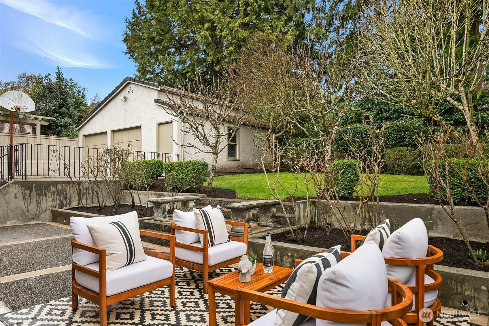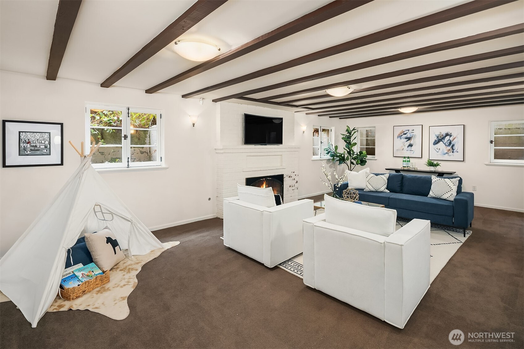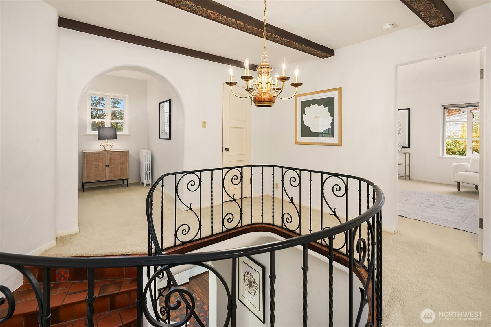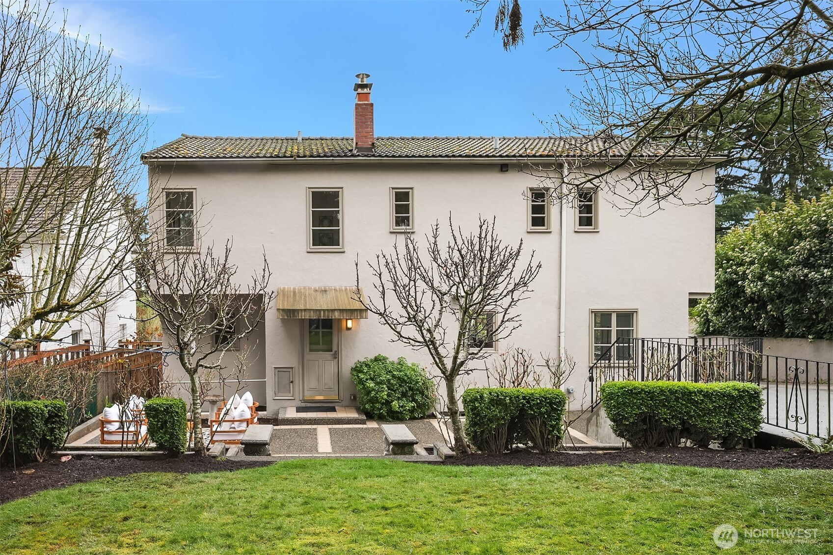 Refined elegance meets timeless architecture in this exceptional Broadmoor residence. Framed by manicured hedges and stately evergreens, the striking façade and gracious entry set the tone for the sophisticated interiors within. Inside, sunlit living spaces blend classic charm with modern comfort. The inviting living room features rich hardwood floors, dramatic exposed beams, and a beautiful fireplace that anchors the space—perfect for cozy evenings or effortless entertaining. Large picture windows bring in natural light and serene garden views, creating a warm and welcoming atmosphere throughout. Designed for both everyday living and hosting, the home offers 4 spacious bedrooms and 3.5 baths, including a thoughtfully finished lower level with a generous rec room—ideal for movie nights, game days, or a private guest retreat. Step outside to enjoy beautifully landscaped grounds and multiple outdoor living areas, perfect for gathering with friends or relaxing in privacy. A detached 2-car garage provides convenience and additional storage. Located in the heart of Broadmoor, this home offers a rare opportunity to enjoy refined living in one of Seattle’s most coveted neighborhoods.