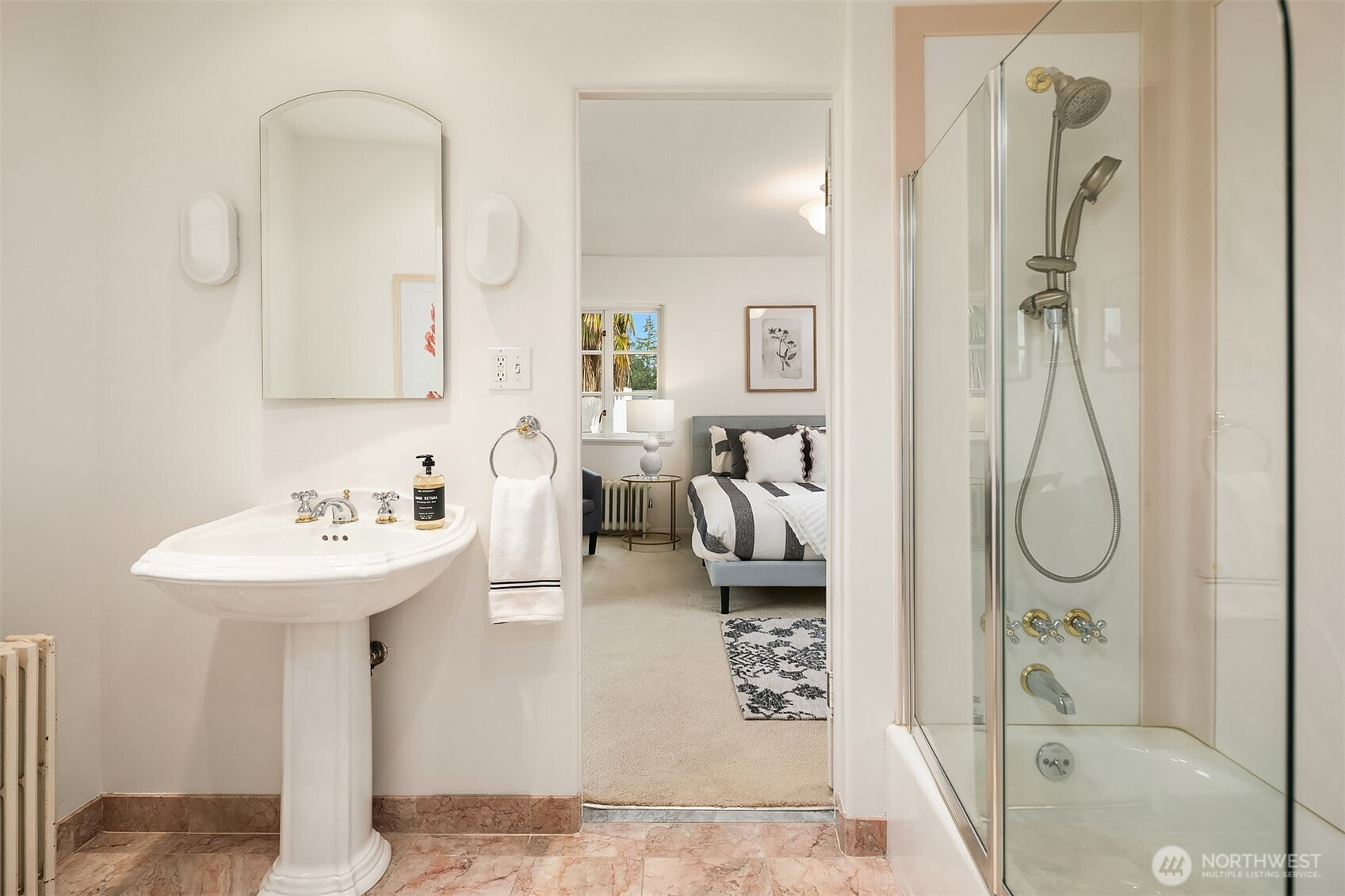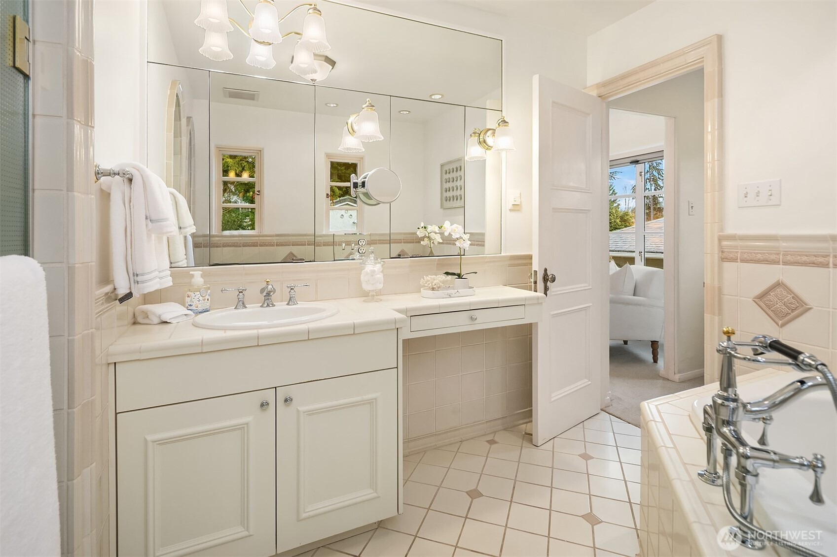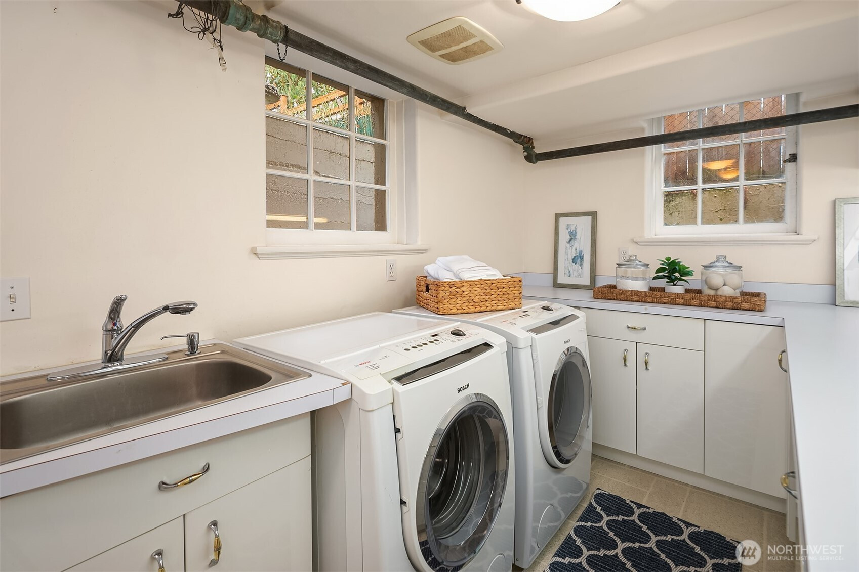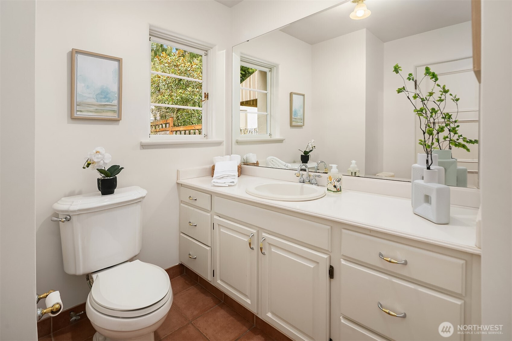 Refined elegance meets timeless architecture in this exceptional Broadmoor residence. Framed by manicured hedges and stately evergreens, the striking façade and gracious entry set the tone for the sophisticated interiors within. Inside, sunlit living spaces blend classic charm with modern comfort. The inviting living room features rich hardwood floors, dramatic exposed beams, and a beautiful fireplace that anchors the space—perfect for cozy evenings or effortless entertaining. Large picture windows bring in natural light and serene garden views, creating a warm and welcoming atmosphere throughout. Designed for both everyday living and hosting, the home offers 4 spacious bedrooms and 3.5 baths, including a thoughtfully finished lower level with a generous rec room—ideal for movie nights, game days, or a private guest retreat. Step outside to enjoy beautifully landscaped grounds and multiple outdoor living areas, perfect for gathering with friends or relaxing in privacy. A detached 2-car garage provides convenience and additional storage. Located in the heart of Broadmoor, this home offers a rare opportunity to enjoy refined living in one of Seattle’s most coveted neighborhoods.