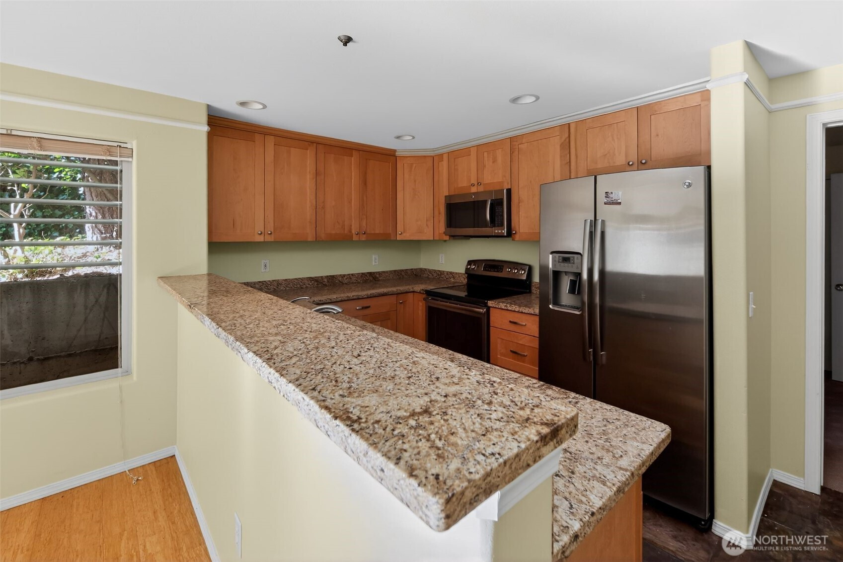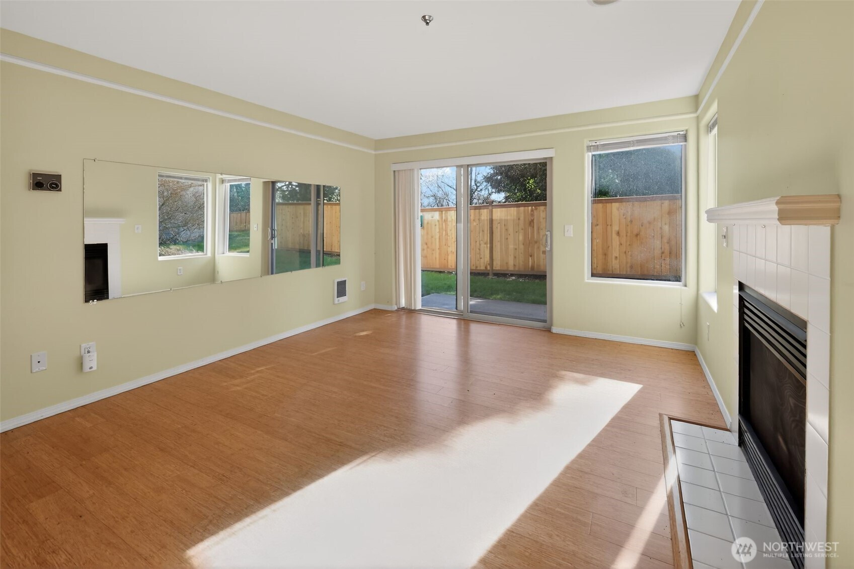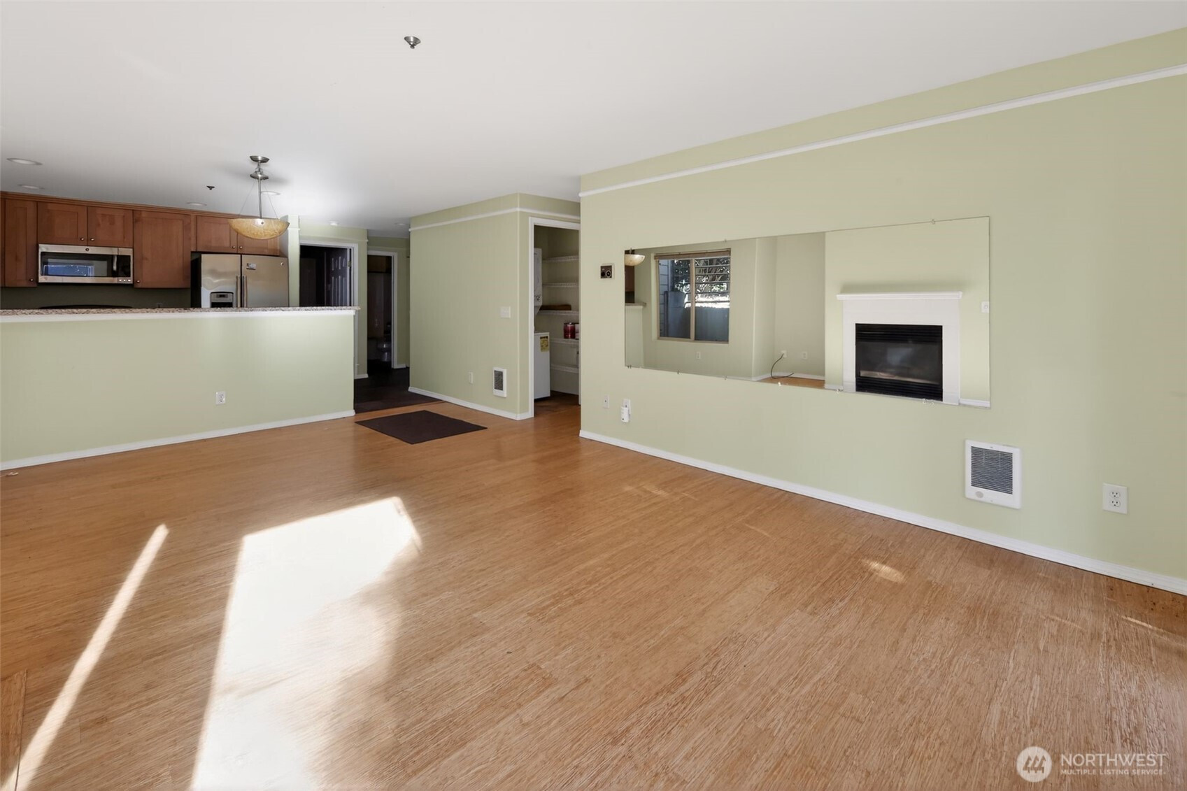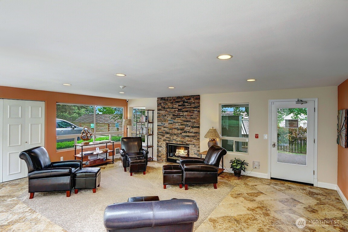 Welcome to this inviting ground-floor condo offering a bright, open layout and easy everyday living, with a spacious living and dining area filled with natural light, highlighted by large windows and a cozy fireplace. The kitchen features ample cabinetry, generous counter space, a sit-up bar, and a functional layout that opens to the main living area, while the sliding glass door leads to a private patio area. Just off the main space, you’ll find a primary suite and an additional bedroom with convenient access to the full guest bathroom. The community also features a welcoming cabana with plenty of parking space, available for homeowners to reserve for private parties or family functions, along with a selection of exercise equipment for residents to enjoy. Situated in a convenient Tukwila location close to shopping, dining, transit, and major commuter routes, this condo combines comfort, practicality, and accessibility in one well-located home.