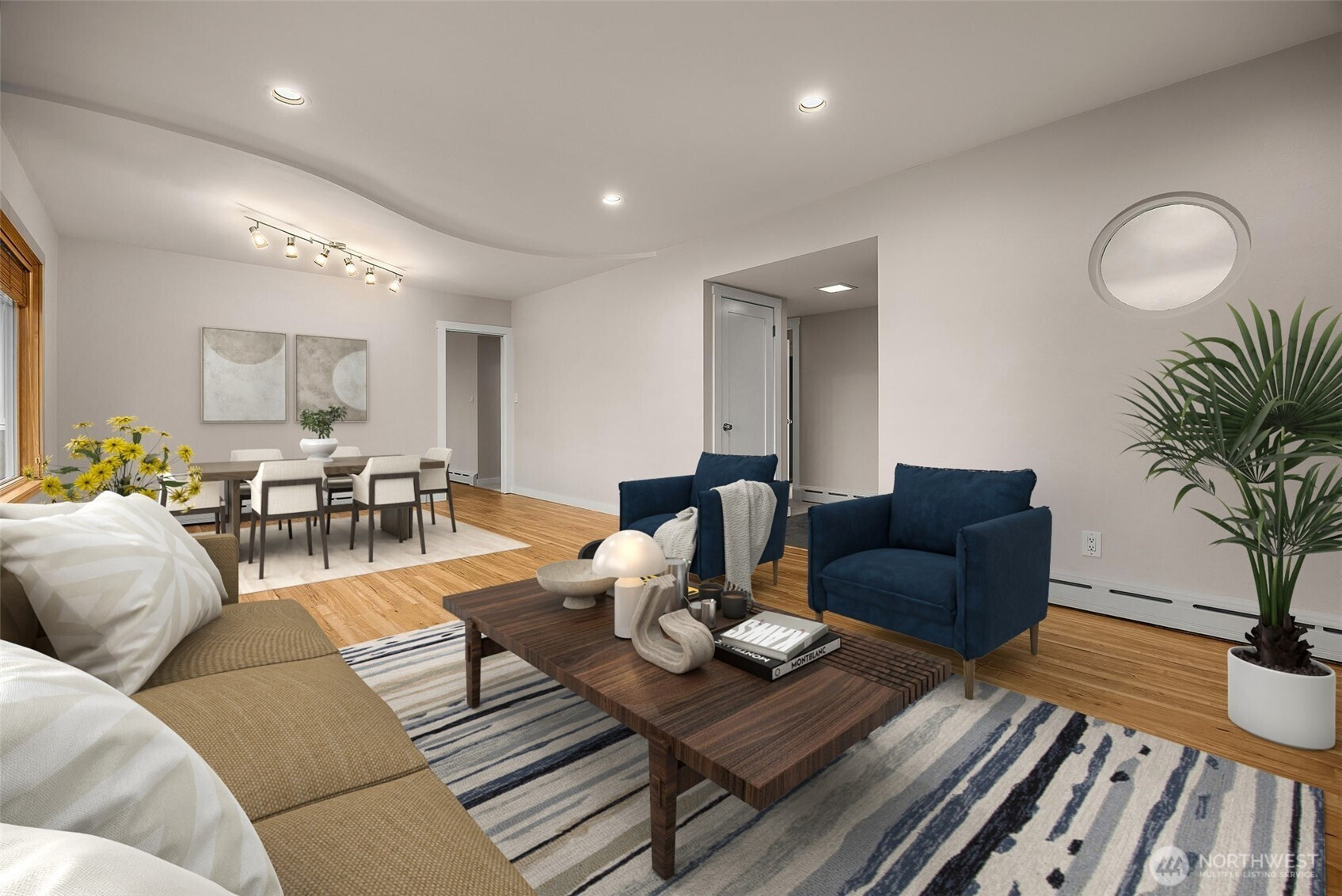 Welcome home to this spacious 3 bed, 1.75 bath 1 story home with a finished basement in the highly desirable Maple Leaf neighborhood. With 2,140 sq ft of living space, this home sits on a double lot totaling 10,218 sq ft and features a rare 3-car garage. Enjoy stunning Olympic Mountain views from this peaceful house on a quiet dead-end street. The daylight basement, featuring a separate private entrance, offers a full second kitchen, family room and roomy laundry center, making it perfect for multi-generational living, guests, or potential rental use. Just 10 minutes from the Northgate Light Rail Station for easy commuting and close to Northgate Mall’s shopping and dining options, this home blends convenience with tranquility.