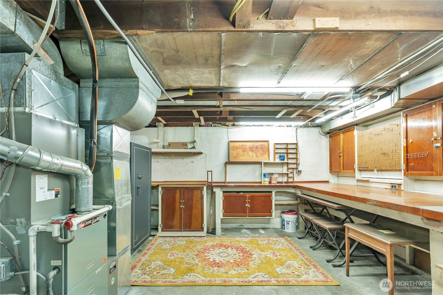 Phinney Ridge Tudor on coveted NW 73rd St — extensively renovated 1928 classic with 2,350 SF, 4 bedrooms & 1-car garage. Rare central A/C (exceptional for vintage Seattle homes), home rewired & updated plumbing. Custom kitchen cabinetry, GE Café appliance suite, refinished original hardwoods, full skim-coat plaster walls & dining room built-ins throughout. Remodeled bath, new ceiling lighting, & Samsung W/D included. Basement workshop adds versatile space. Private fenced backyard with new patio & level lawn. Close to Kirke Park, Whittier Elementary & Greenwood Ave dining. This one feels like new.