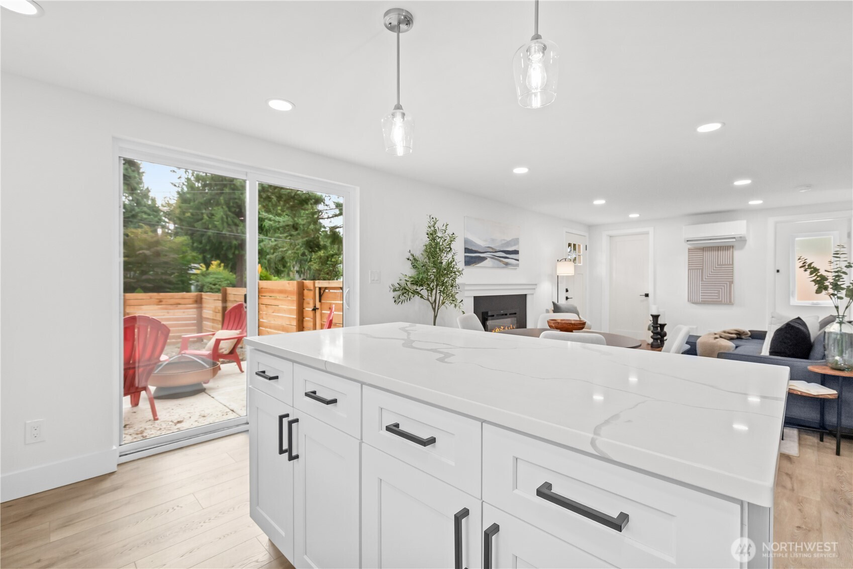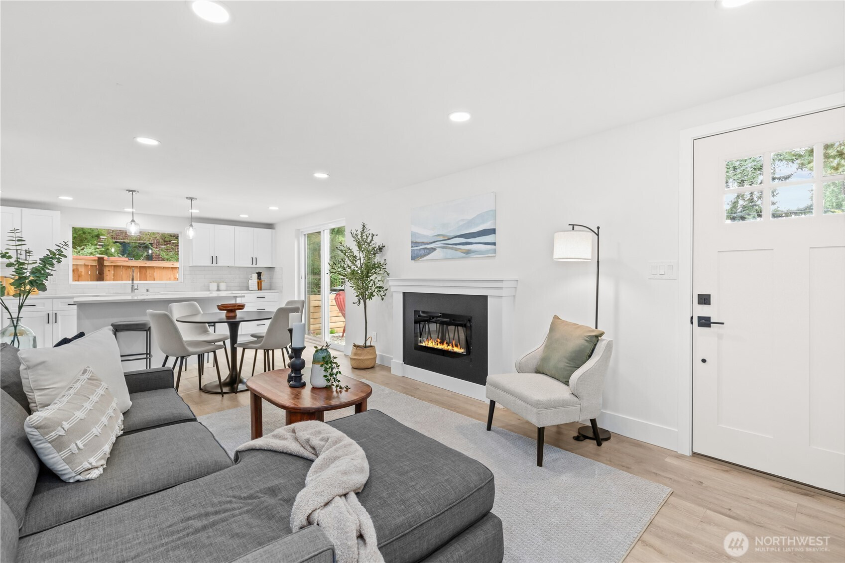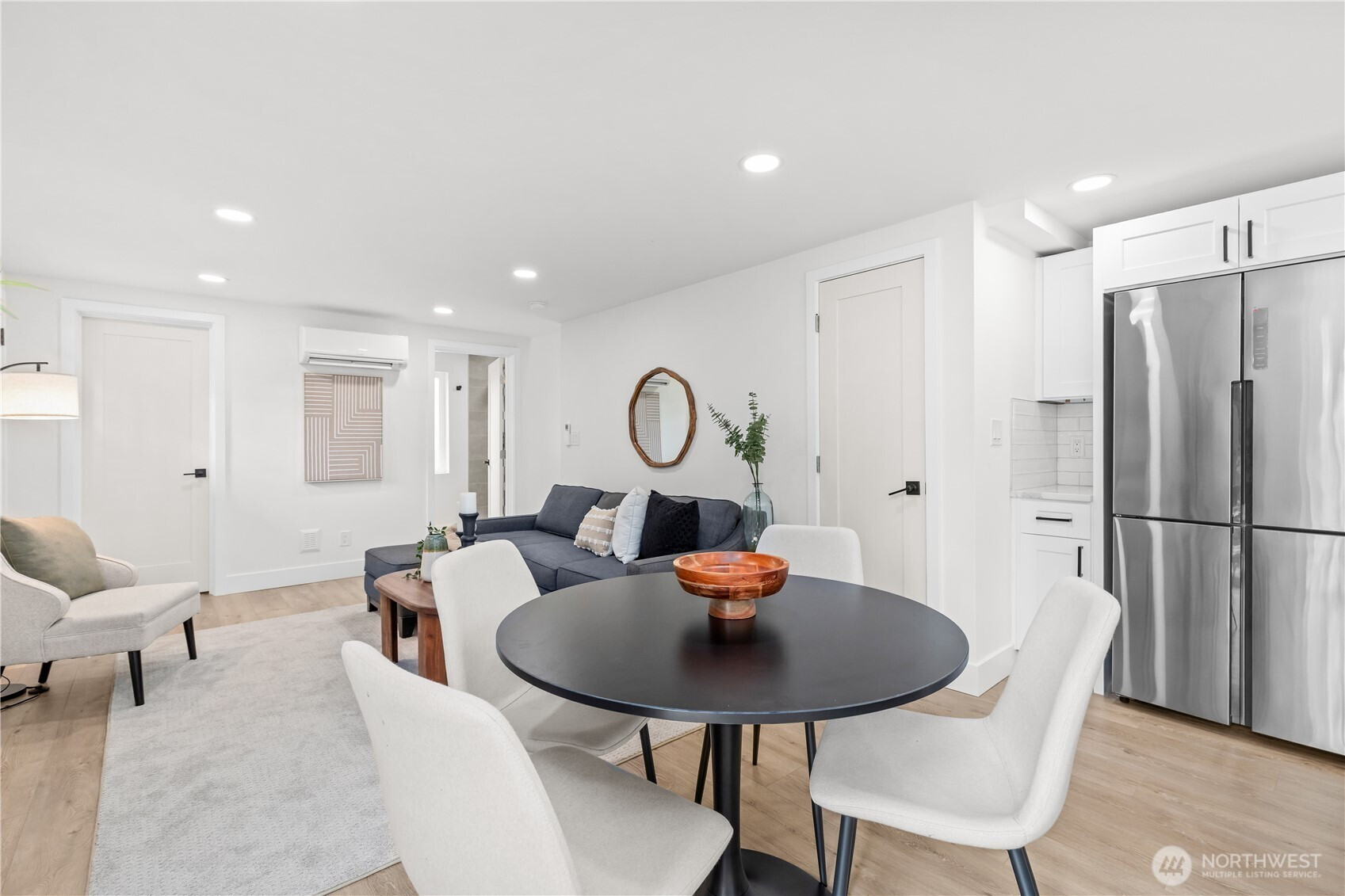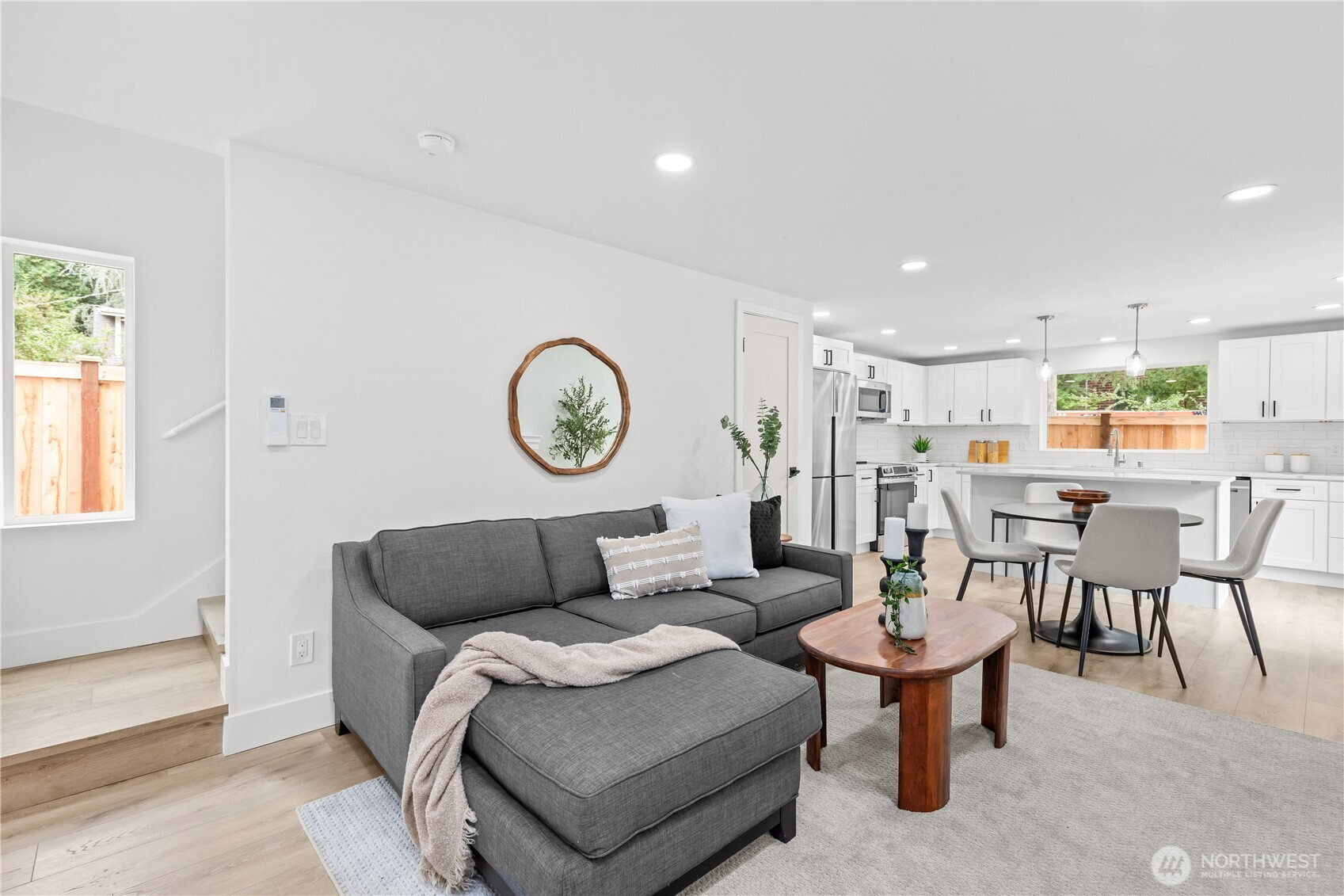 Designed for modern, efficient living, this 1,080 sqft home in Victory Heights offers a smart layout with 2 beds & 1.75 baths. Your living room features a cozy fireplace & opens to a modern chef's kitchen. The spacious patio & private yard are an urban oasis, perfect for relaxing or entertaining. Forget the parking search with ample driveway stalls right at your door! This is a rare opportunity for a turnkey home in a quiet, sought-after neighborhood with easy access to all Seattle has to offer. Your perfect lifestyle starts here!