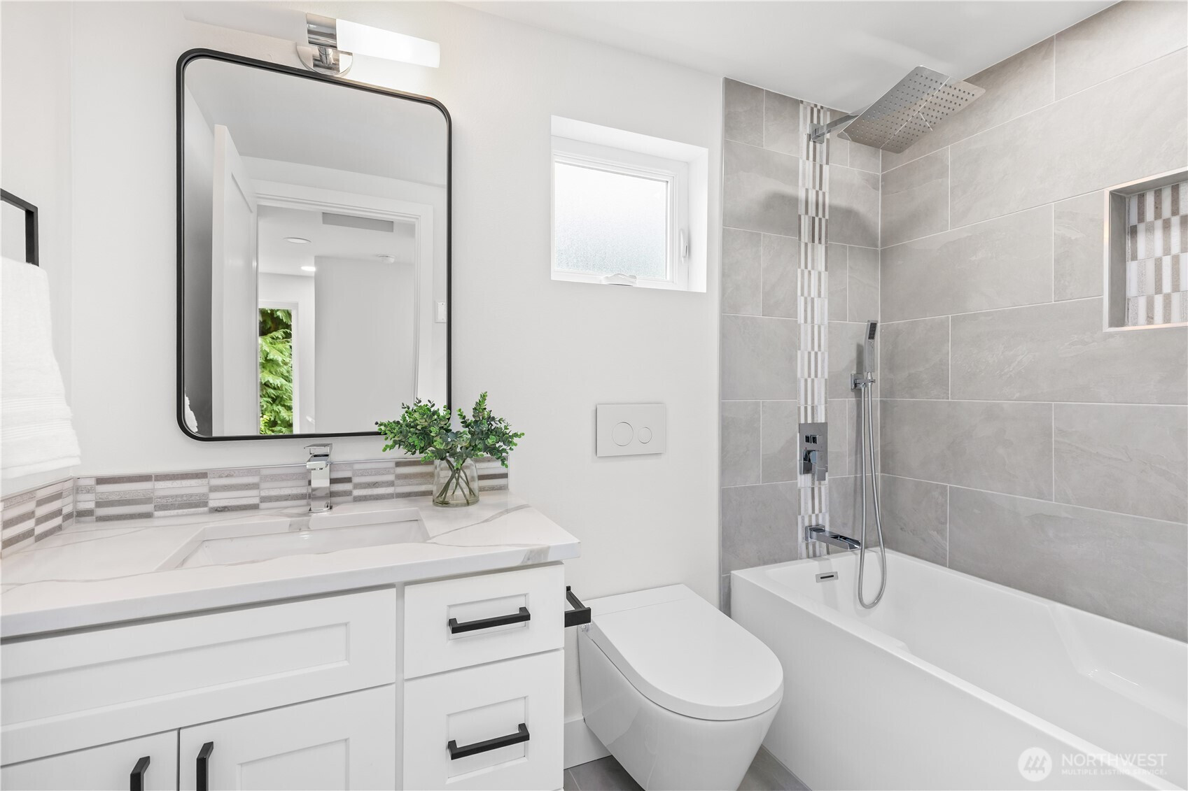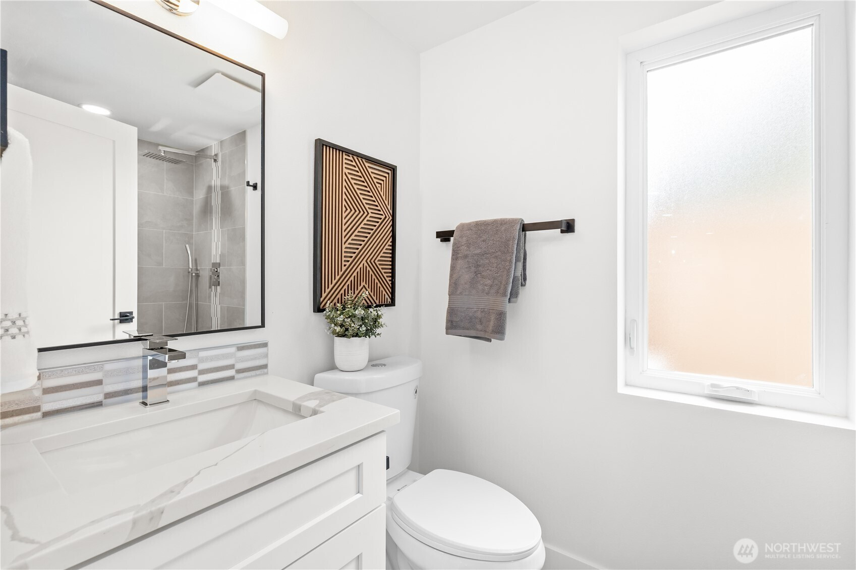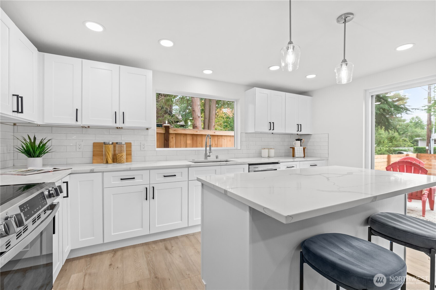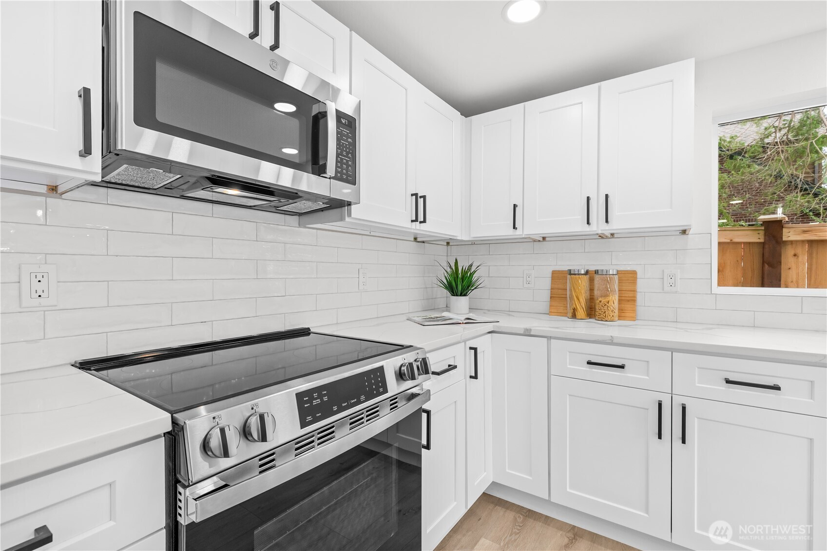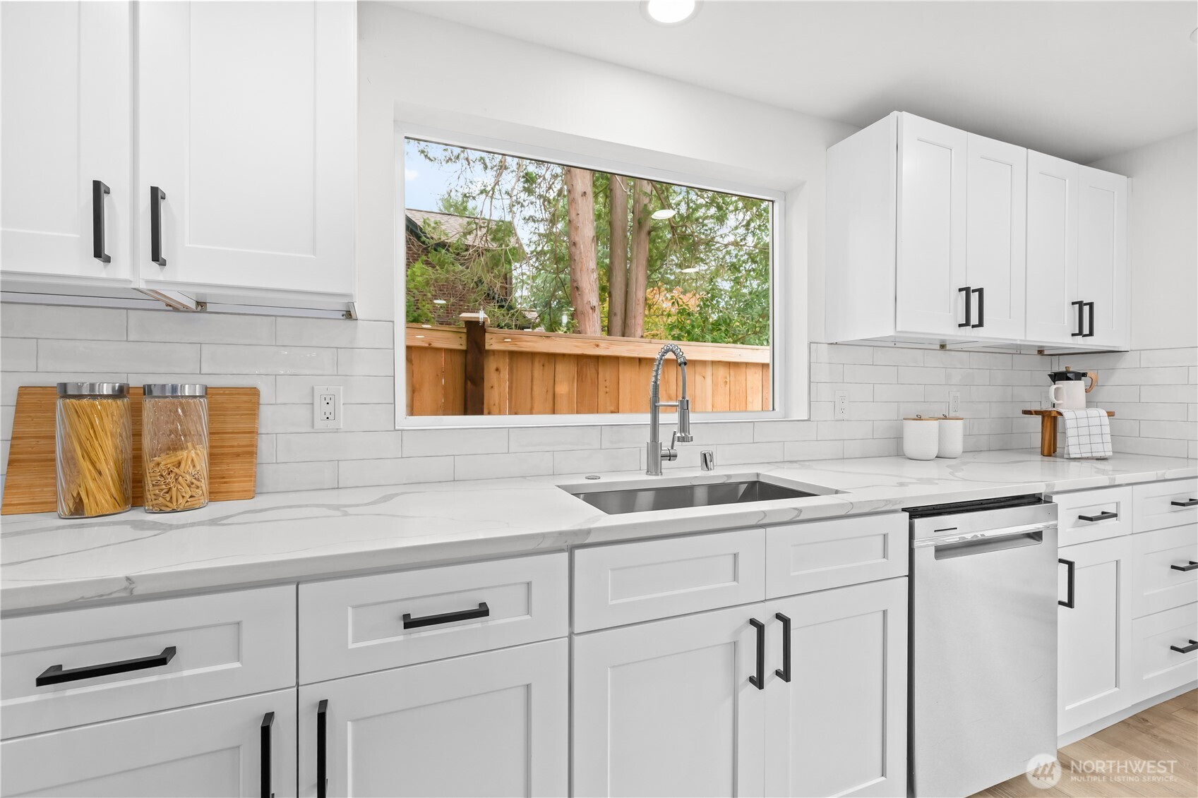 Designed for modern, efficient living, this 1,080 sqft home in Victory Heights offers a smart layout with 2 beds & 1.75 baths. Your living room features a cozy fireplace & opens to a modern chef's kitchen. The spacious patio & private yard are an urban oasis, perfect for relaxing or entertaining. Forget the parking search with ample driveway stalls right at your door! This is a rare opportunity for a turnkey home in a quiet, sought-after neighborhood with easy access to all Seattle has to offer. Your perfect lifestyle starts here!