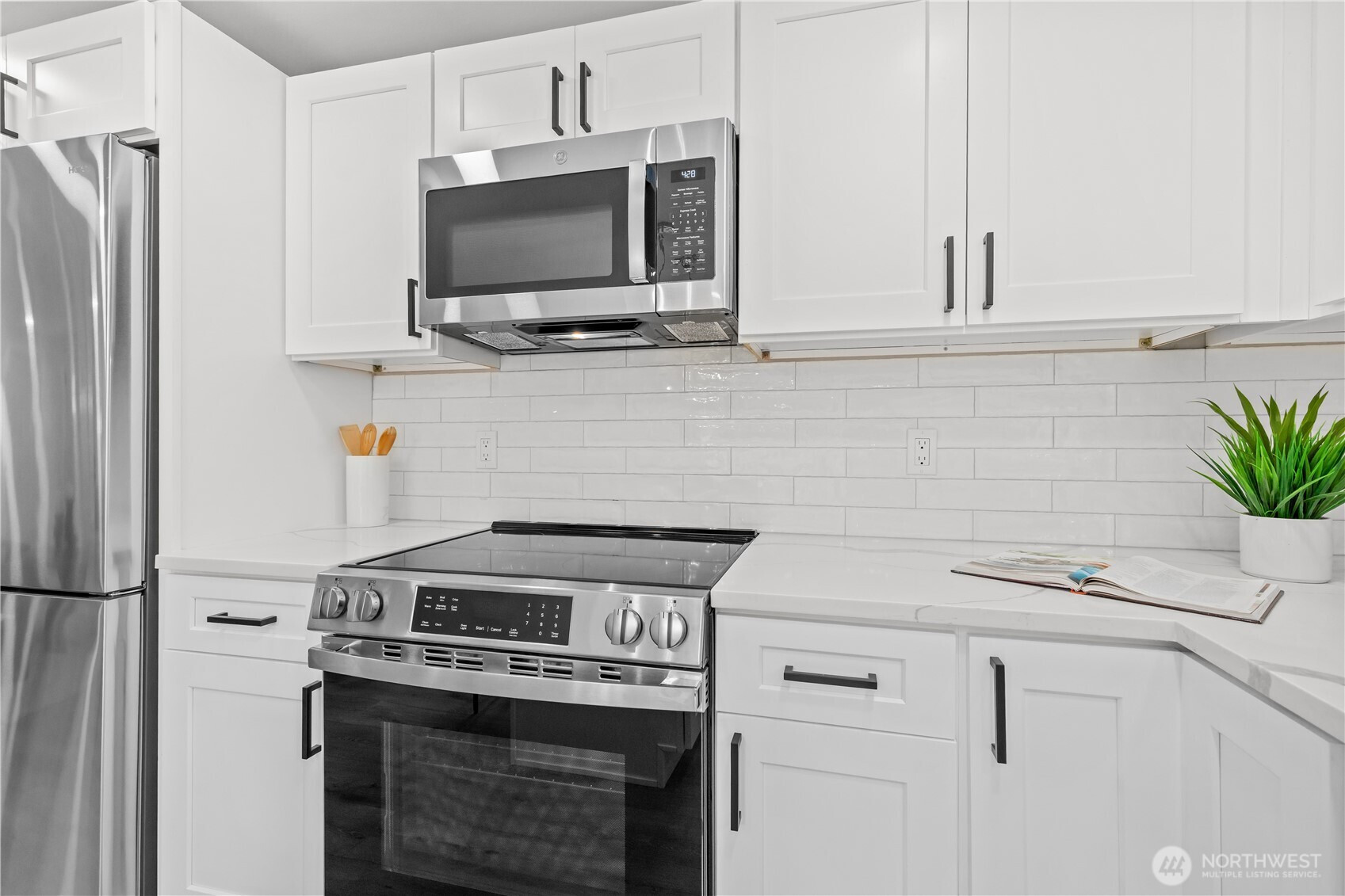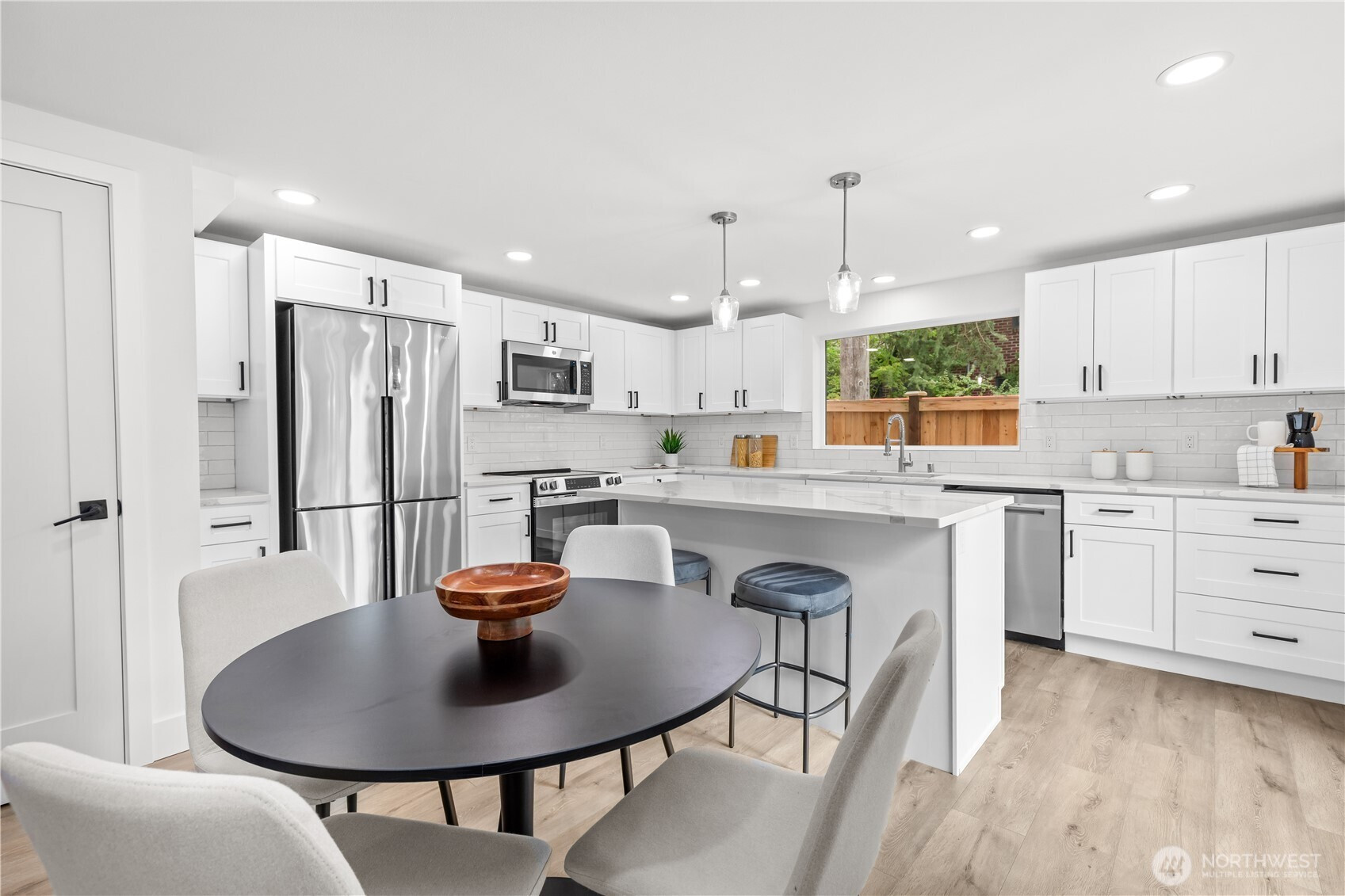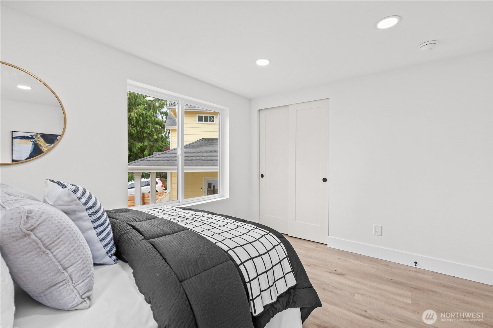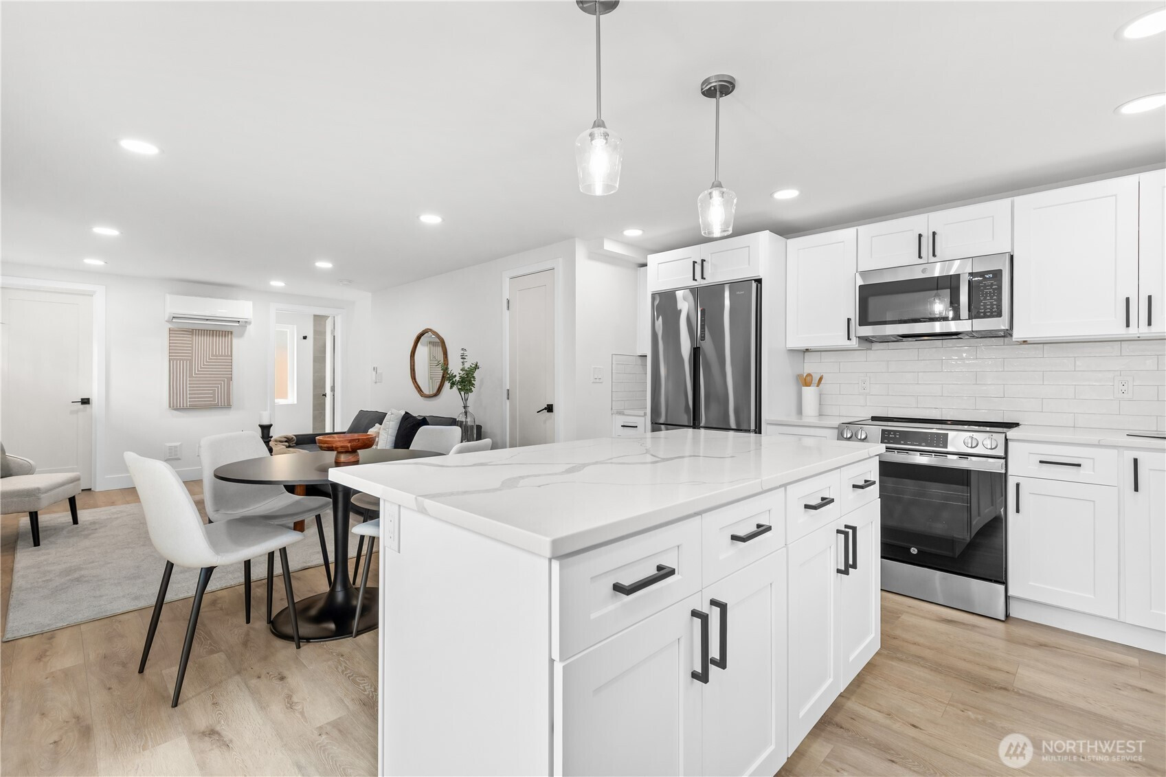 Designed for modern, efficient living, this 1,080 sqft home in Victory Heights offers a smart layout with 2 beds & 1.75 baths. Your living room features a cozy fireplace & opens to a modern chef's kitchen. The spacious patio & private yard are an urban oasis, perfect for relaxing or entertaining. Forget the parking search with ample driveway stalls right at your door! This is a rare opportunity for a turnkey home in a quiet, sought-after neighborhood with easy access to all Seattle has to offer. Your perfect lifestyle starts here!