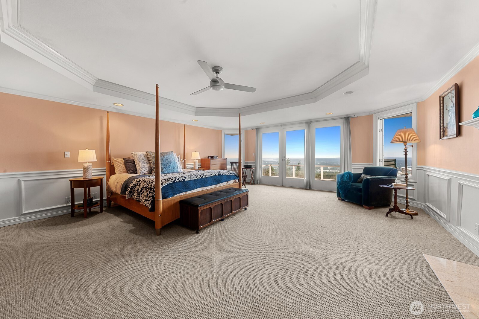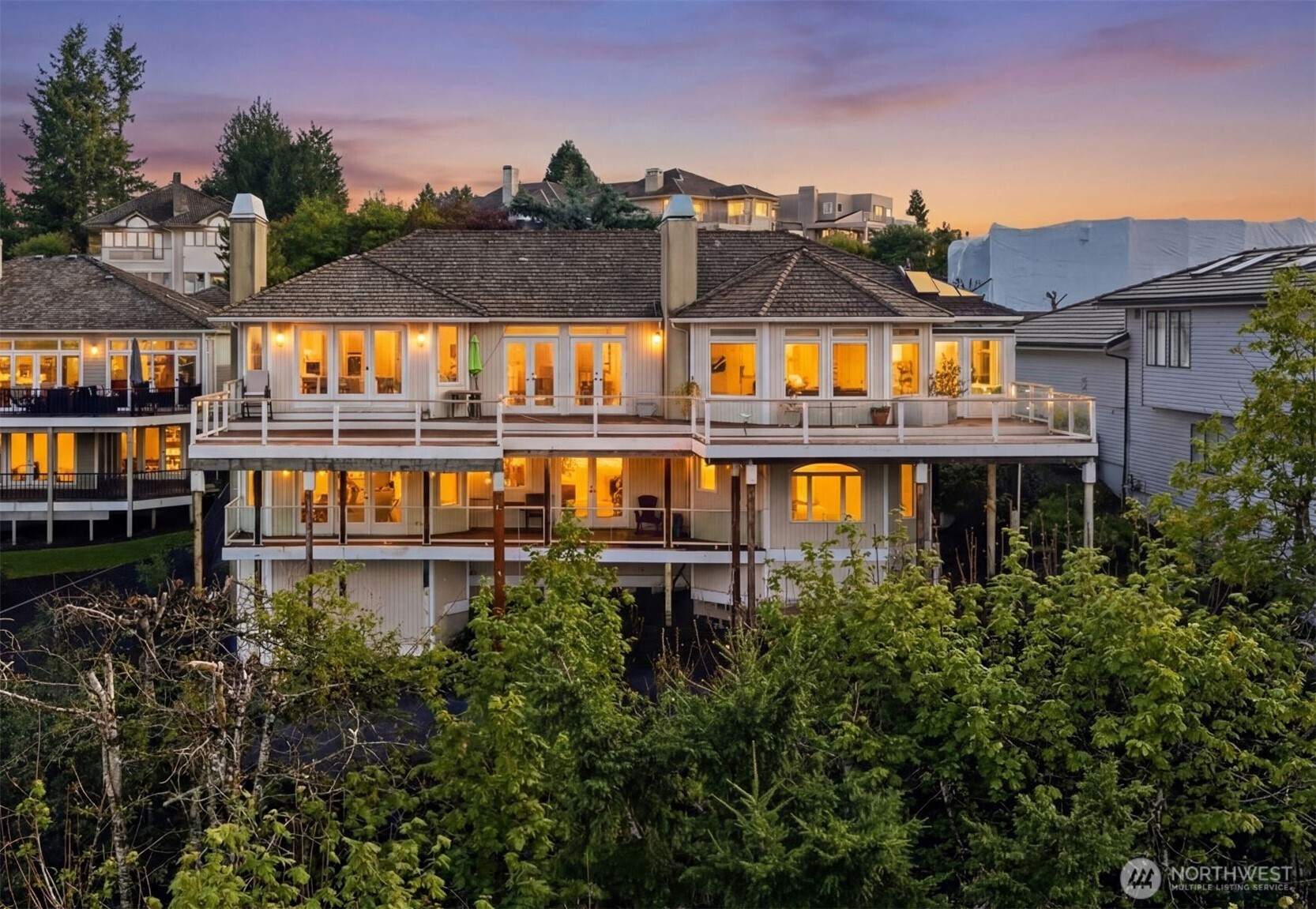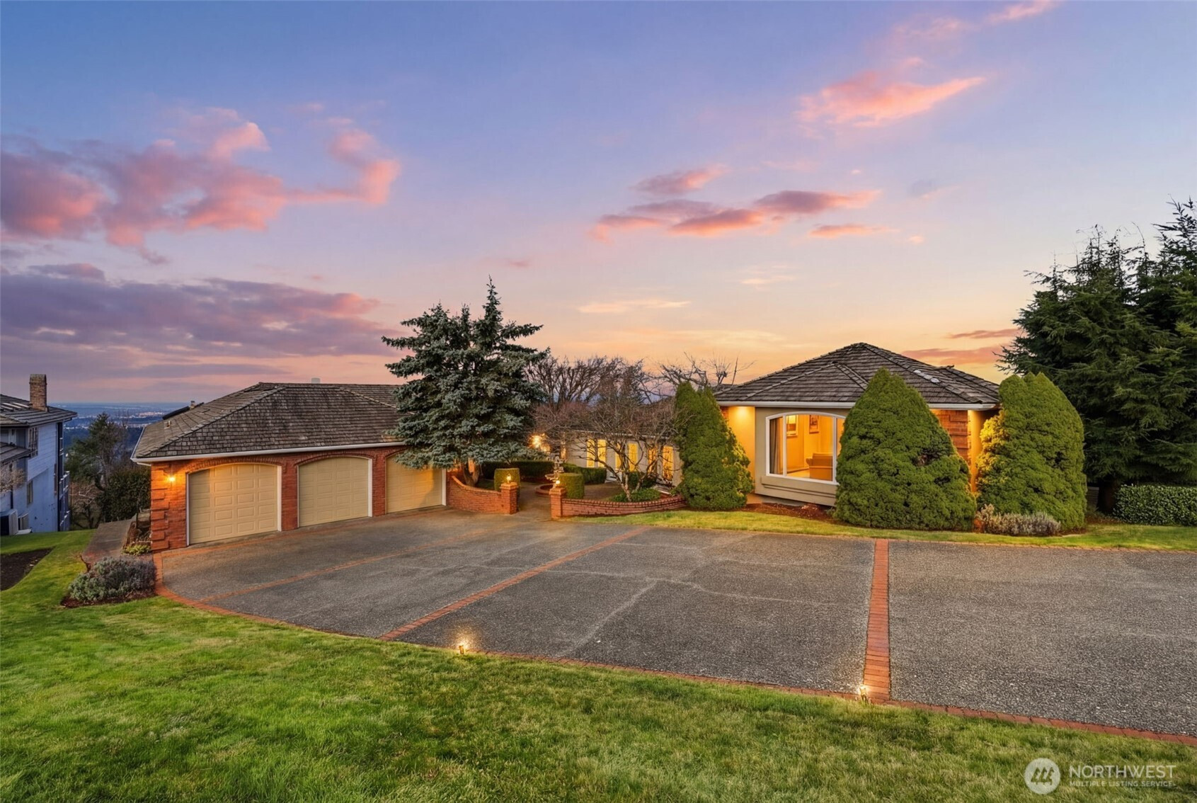 Commanding one of The Summit’s most spectacular outlooks, this custom Chaffey-built residence spans over 1/2 acre backed by greenspace - over 180° views from the Seattle skyline, Lake Washington to the Bellevue skyline, Lake Sammamish, Mt. Baker, the Cascades and the Olympics. Fireworks, luminous sunsets and ever-changing skies become part of daily life, with Mt. Rainier greeting you coming and going. A courtyard entry with fountain and mature Japanese maples sets a serene, estate-like tone. Inside, walls of windows and French doors open to a full-width view deck for effortless indoor-outdoor living. Formal living and dining rooms flow to a cozy family room with fireplace and custom built-ins with leaded-glass accents. A heated greenhouse, a ~400 SF private-wing office/media room, and the grand lower-level flex room with fireplace add exceptional versatility. The chef’s kitchen showcases extremely rare Madagascar Labradorite slab counters, Viking appliances, and a custom 60” Vent-A-Hood. An elegant wet bar—anchored by Sub-Zero—elevates every gathering. At the heart, find the compass rosette inlay of Brazilian heartwood in the hardwoods. The luxe primary suite with fireplace, five-piece bath, and walk-in closet, opens to the deck for fresh air and grand views. 3 gracious lower bedrooms with walk-in closets, exceptional storage, & 3-car garage complete the home. Enjoy 24/7 security, guardhouse entry, clubhouse, pool, tennis & pickleball, trails and prestigious Bellevue schools!