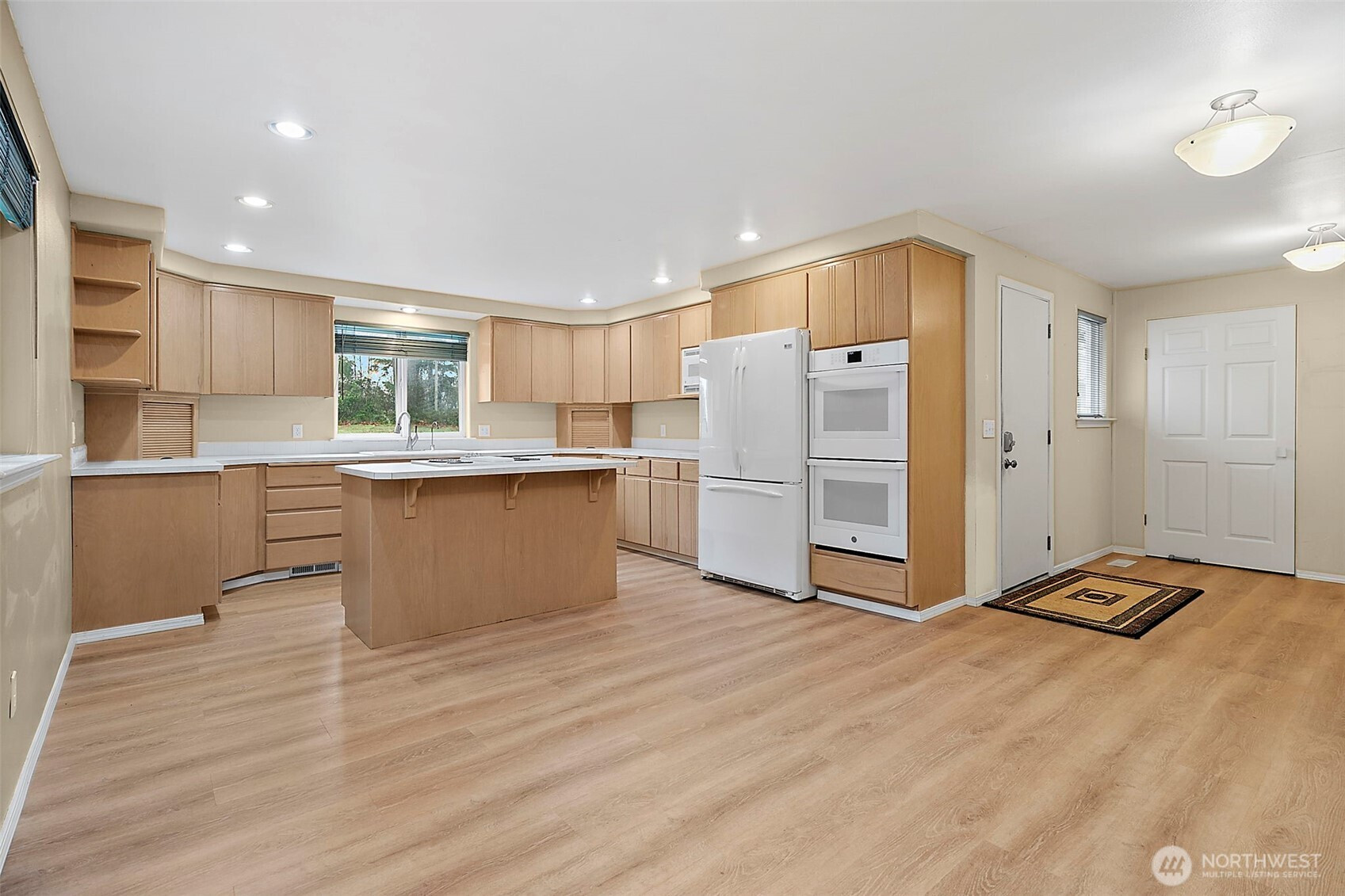 A truly special, one-of-a-kind property set on nearly two level acres, offering space, privacy, and endless possibilities. A charming circular driveway welcomes you home to this beautifully maintained 2,160 sq. ft. rambler, complete with a barn and a detached garage featuring two versatile shop areas—perfect for hobbies, storage, or creative projects. Inside, the expansive primary suite is a private retreat, featuring a cozy fireplace, walk-in closet, and a spacious en-suite bath designed for relaxation. The heart of the home is the bright, oversized kitchen with abundant cabinetry, double ovens, pantry closets, and generous storage—ideal for gathering, cooking, and entertaining. Gleaming hardwood floors and updated windows fill the home with warmth and natural light, while air conditioning ensures year-round comfort. With an inspected septic system, a private individual well, and numerous updates throughout, this home offers peace of mind as well as charm. Enjoy the rare combination of country-like space with the convenience of nearby shopping, restaurants, freeway access, and a wonderful walking area. This is more than a home—it’s a lifestyle.