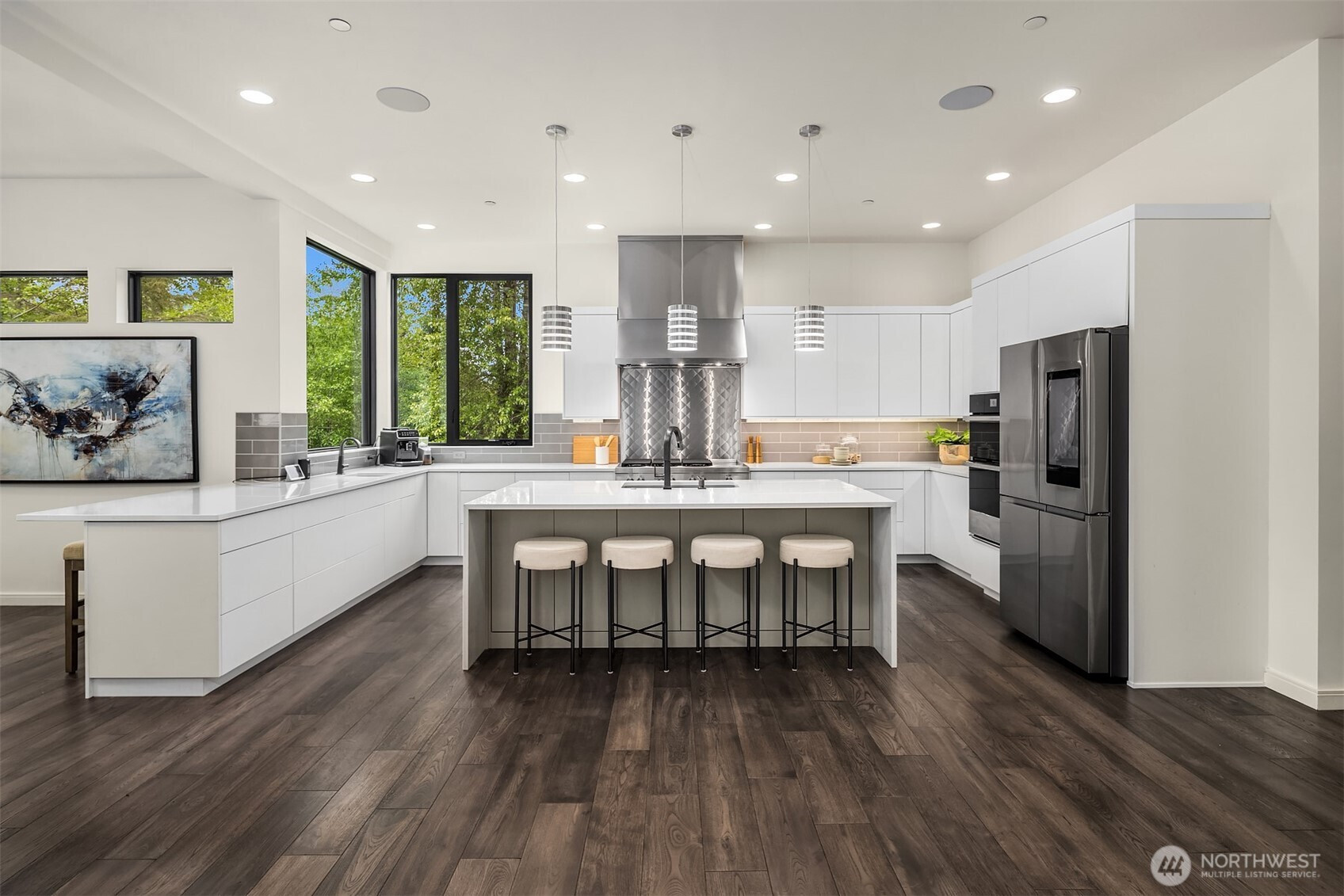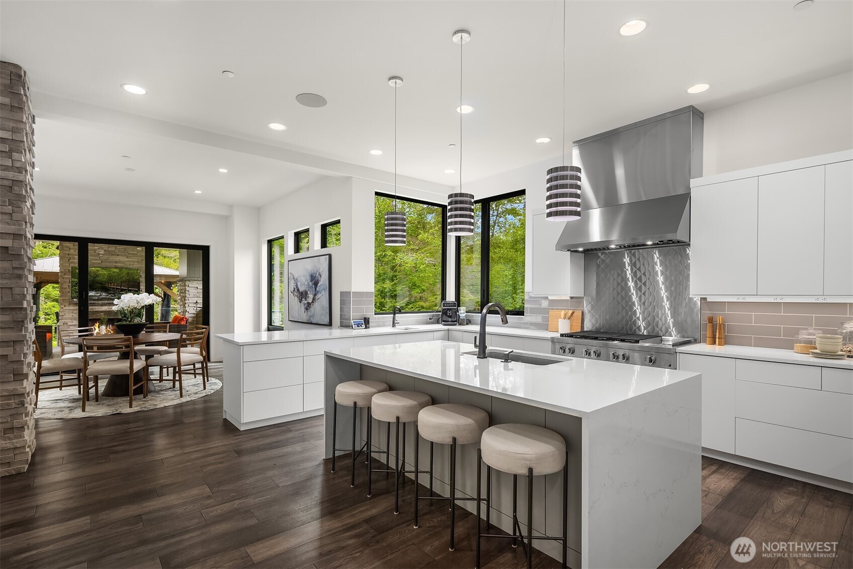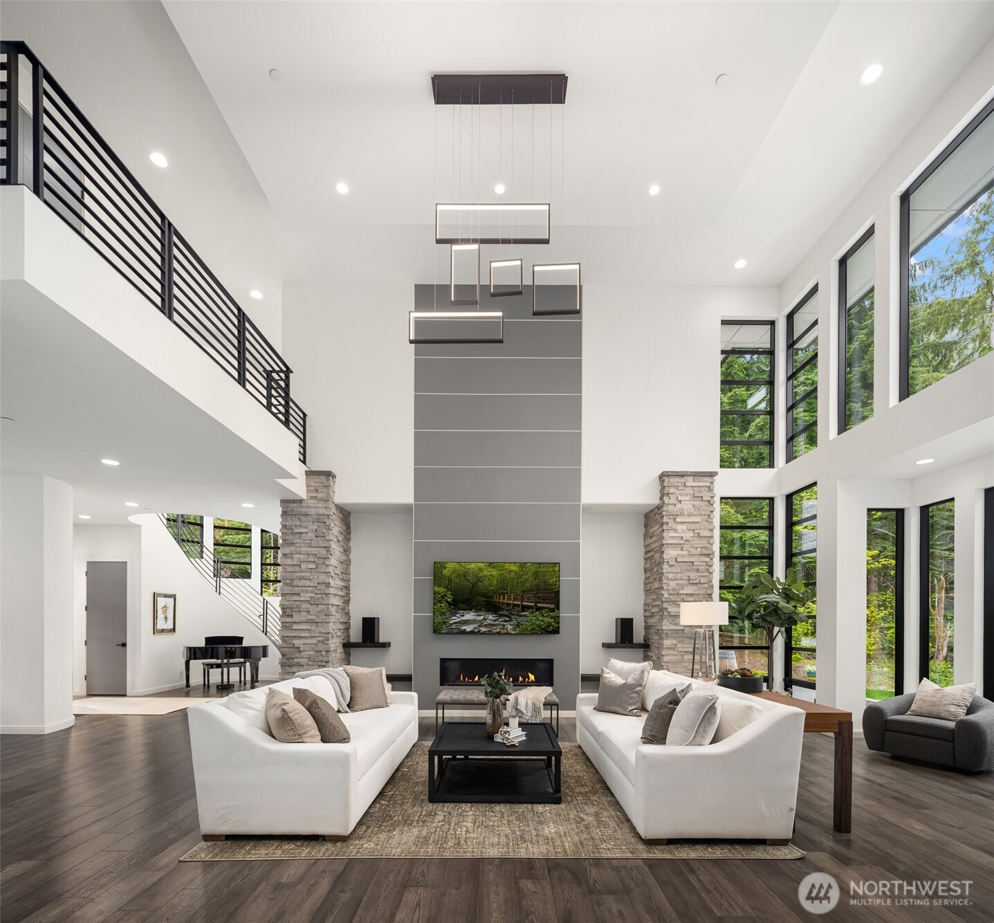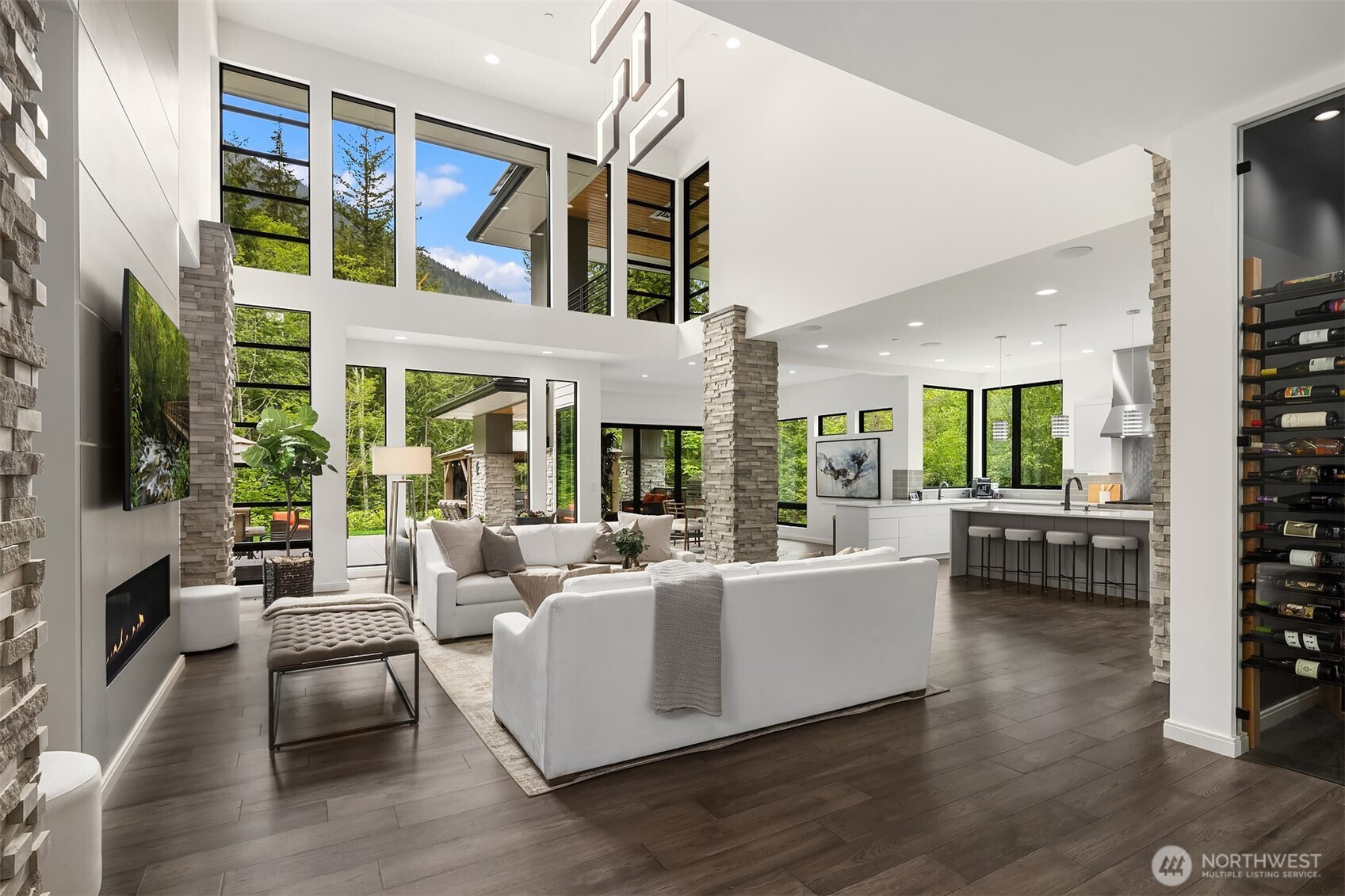 An exceedingly rare opportunity in the highly coveted Uplands Reserve — this modern mountain estate is a true statement of design, scale, and Northwest luxury. Showcasing striking architecture, walls of glass, and a warm, light-filled interior, the home offers thoughtfully designed living spaces with exceptional craftsmanship, elevated finishes, and state-of-the-art amenities throughout. Every detail has been carefully curated to balance modern sophistication with livable comfort. The expansive layout delivers unmatched versatility, including garage capacity for up to ten vehicles — ideal for collectors, outdoor enthusiasts, or those seeking extraordinary storage. Outdoors, a covered patio, fully equipped kitchen, and private hot tub create an effortless year-round indoor-outdoor lifestyle perfect for entertaining or quiet evenings under the stars — all surrounded by the serenity and privacy of your own three-acre estate. A beautifully finished ADU provides additional flexibility for guests, multigenerational living, or a private executive workspace. Properties of this caliber — with this level of design, amenities, and garage capacity — rarely come to market in Uplands Reserve. An exceptional offering for the discerning buyer seeking privacy, presence, and permanence.