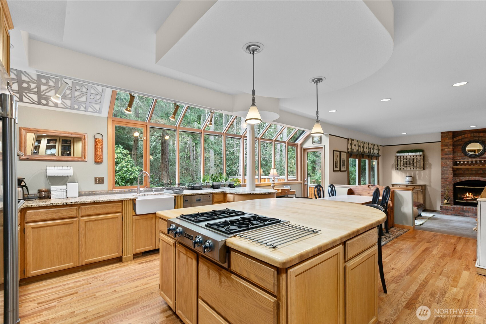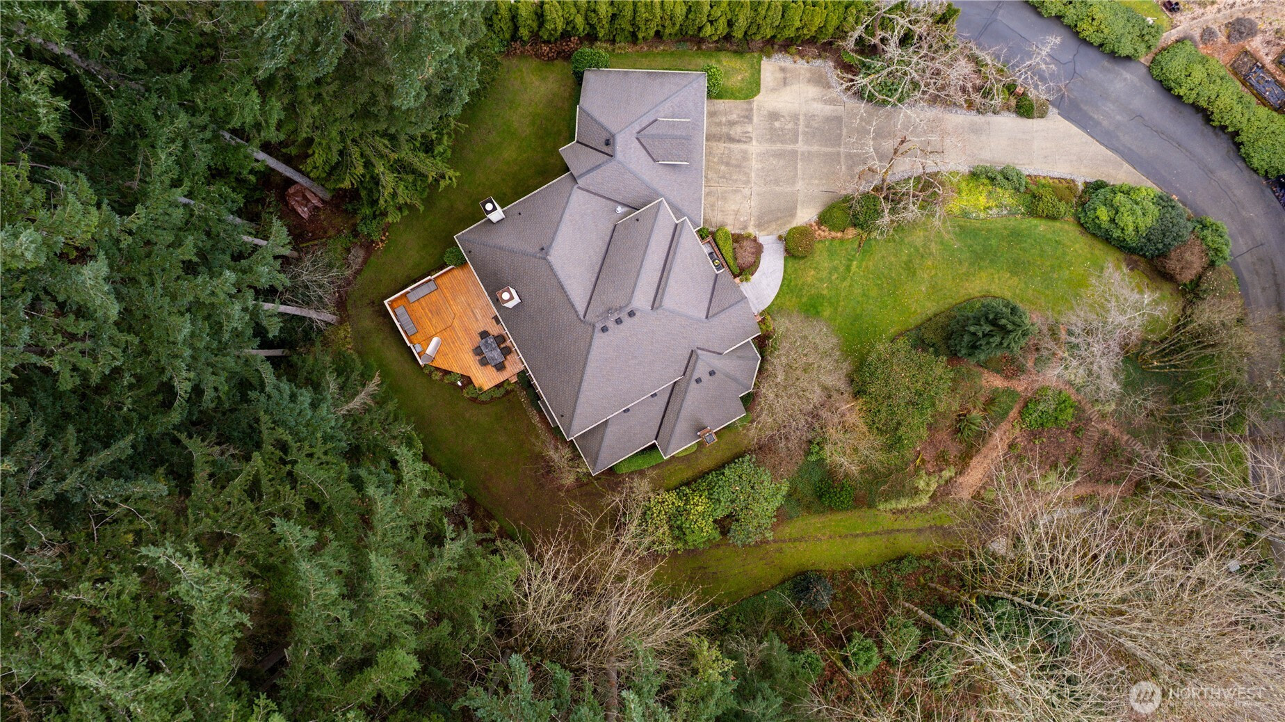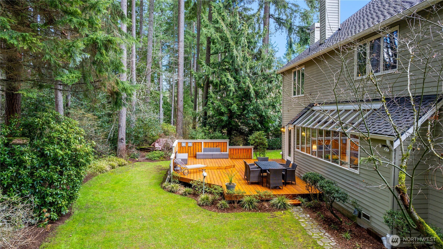 Tucked away on a serene .64 acre wooded lot at the pinnacle of Hollywood Hill, this extraordinary 4 bedroom 2.5 bath custom home in the Eastbrook community delivers a level of craftsmanship and thoughtful design rarely found in today’s market. Built in 1988 and lovingly maintained by the original owners, the 3428 sf residence announces itself with a sweeping cherry tree lined approach and a stamped concrete courtyard entry. Three fireplaces anchor warm gathering spaces throughout, while soaring vaulted ceilings and a wall of windows in the kitchen and breakfast nook bring the lush PNW landscape indoors. The chef’s kitchen impresses with a large butcher block island, honed granite counters and a walk-in pantry. A main level den with leaded glass French doors offers the perfect space for a home office. The generous primary suite features travertine floors in the spa bath, a freestanding soaking tub, Restoration Hardware vanity and a romantic gas fireplace. A light filled upper level bonus room with extra storage is perfect as a media room, play room or creative retreat. Fresh new carpeting complements rich hardwood floors and Italian plank tile throughout the main living areas. A private deck overlooks the wooded territorial setting and a 3 car garage adds everyday convenience. Desirable Northshore School District. With no HOA and easy access to the local wineries, trails (Tolt pipeline) and amenities makes this corner of the Eastside so exceptional.