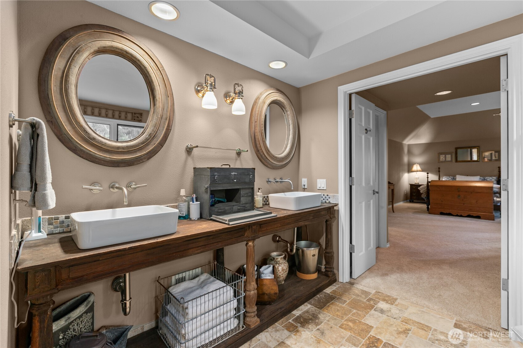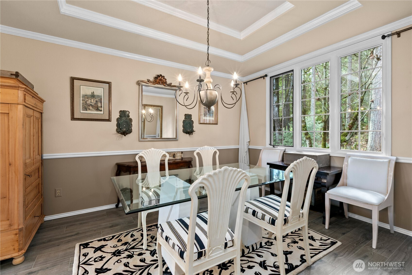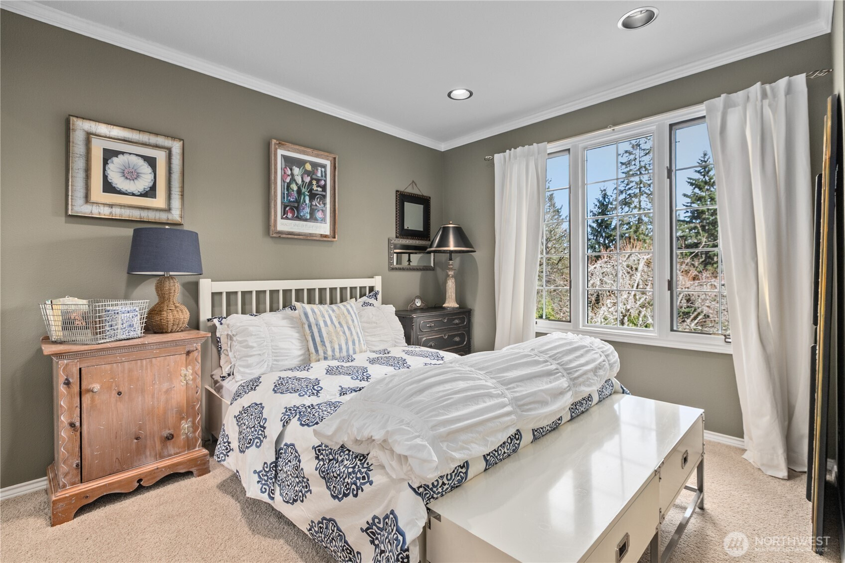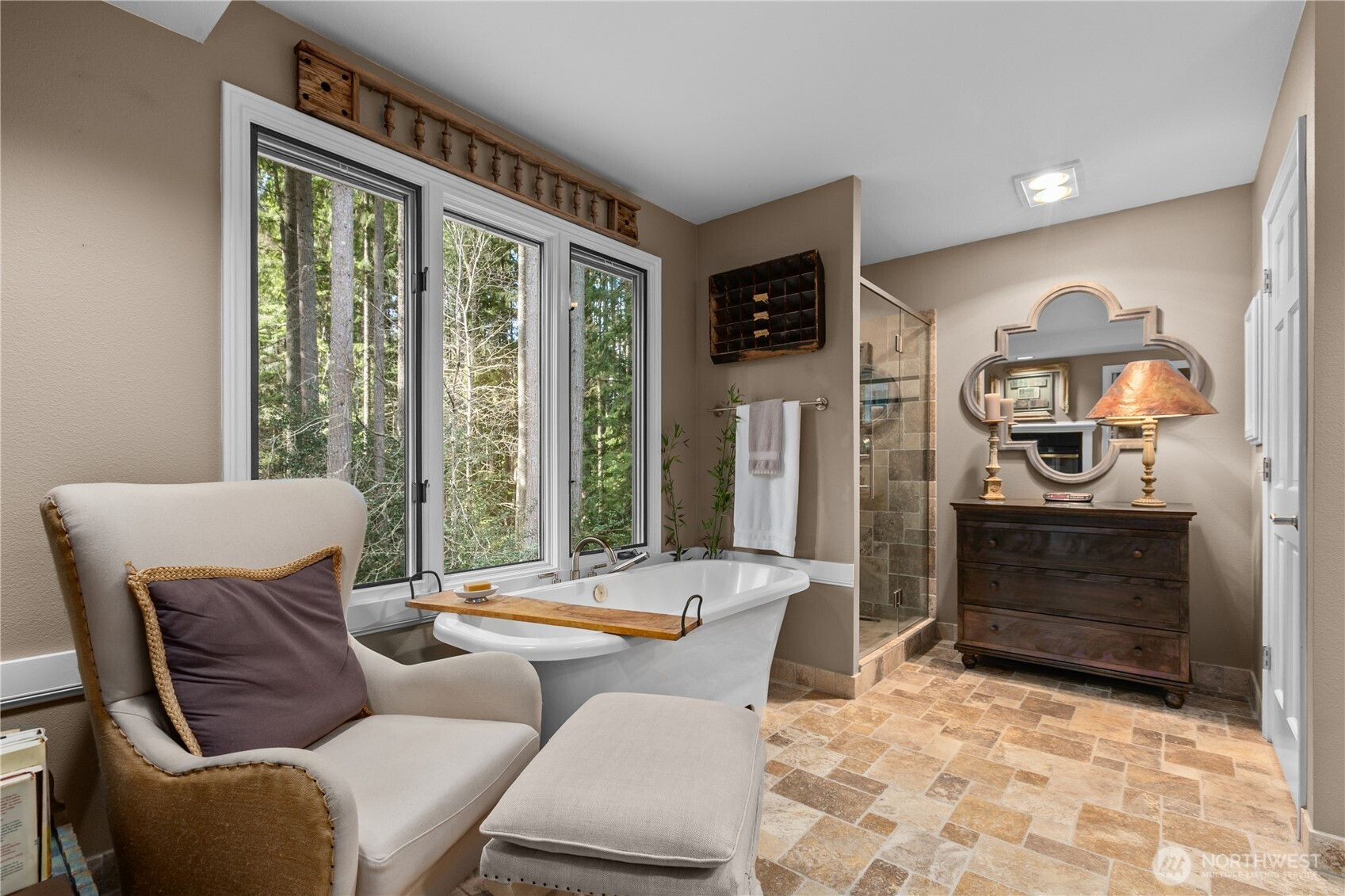 Tucked away on a serene .64 acre wooded lot at the pinnacle of Hollywood Hill, this extraordinary 4 bedroom 2.5 bath custom home in the Eastbrook community delivers a level of craftsmanship and thoughtful design rarely found in today’s market. Built in 1988 and lovingly maintained by the original owners, the 3428 sf residence announces itself with a sweeping cherry tree lined approach and a stamped concrete courtyard entry. Three fireplaces anchor warm gathering spaces throughout, while soaring vaulted ceilings and a wall of windows in the kitchen and breakfast nook bring the lush PNW landscape indoors. The chef’s kitchen impresses with a large butcher block island, honed granite counters and a walk-in pantry. A main level den with leaded glass French doors offers the perfect space for a home office. The generous primary suite features travertine floors in the spa bath, a freestanding soaking tub, Restoration Hardware vanity and a romantic gas fireplace. A light filled upper level bonus room with extra storage is perfect as a media room, play room or creative retreat. Fresh new carpeting complements rich hardwood floors and Italian plank tile throughout the main living areas. A private deck overlooks the wooded territorial setting and a 3 car garage adds everyday convenience. Desirable Northshore School District. With no HOA and easy access to the local wineries, trails (Tolt pipeline) and amenities makes this corner of the Eastside so exceptional.