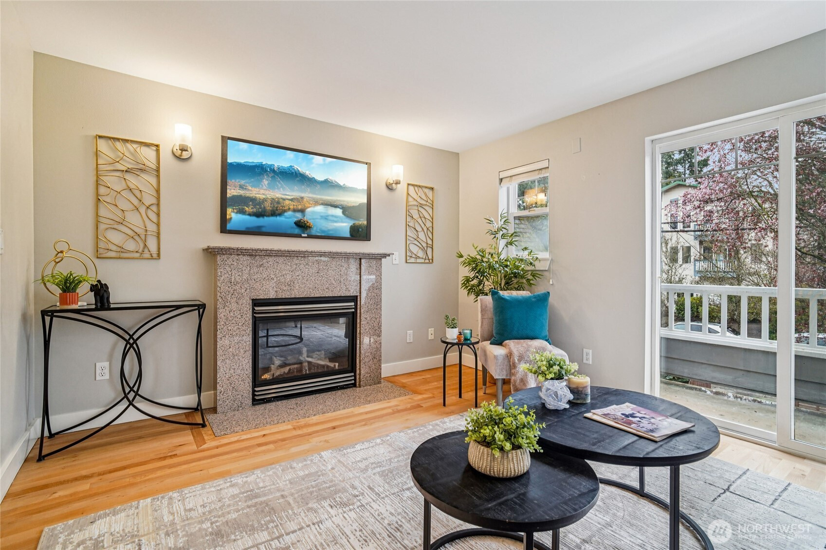 This light-filled end-unit townhome blends character, thoughtful updates, and exceptional convenience. Step in to newly refinished maple hardwood floors and a cozy gas fireplace creating an inviting place to relax. The spacious kitchen anchors the main level with a one-of-a-kind island crafted from reclaimed local bowling alley flooring—perfect for cooking, gathering, and everyday living. Skylights bring in natural light, and the third floor features vaulted ceilings. Comfort and efficiency are supported by a hybrid HVAC system installed in 2020, with a heat pump providing heating and cooling on the first two levels and mini-splits serving the top floor. A tankless hot water heater with recirculation, also installed in 2020, offers reliable hot water. The home also features a brand-new roof and gutters completed in 2025 with a transferable warranty. Storage is plentiful throughout, including extra space above the closets in both upper bedrooms, and the large second bedroom provides excellent flexibility for work or hobbies. Outside, enjoy a private courtyard plus a generous one-car garage with an additional parking space. With an outstanding 95 Walk Score, this home sits just moments from Ballard Avenue, the farmers market, restaurants, breweries, groceries. Nearby transit routes make getting around simple. With no HOA and a well-maintained six-home community, this is a rare opportunity in a sought-after neighborhood!