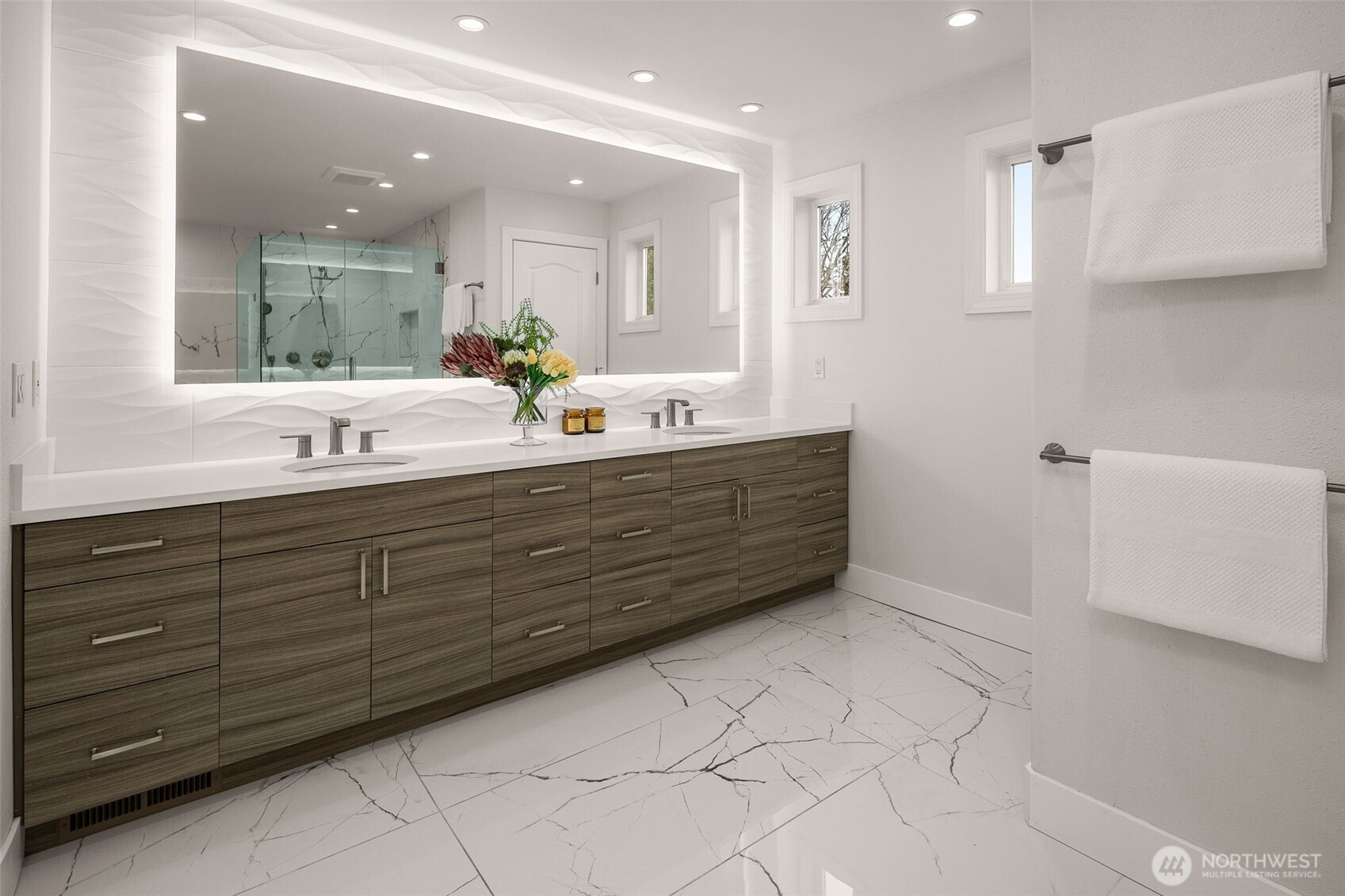 (503) 893-8874Nestled on a private drive in Kirkland’s coveted East of Market neighborhood, this exceptional home sits on a 12,500 sqft lot offering rare privacy w/ over 200k spent on remodel! A grand foyer welcomes you w/ vaulted ceilings, skylights & cherry hardwood floors. The primary suite includes 5-piece bath, fireplace, walk-in closet, lake views & a Juliette balcony. Enjoy Seattle & Lake views from upper family room. Gourmet kitchen features quartz counter & stainless appliances. 3 oversized bedrooms on the main level include a 2nd master suite. Lower level MIL/ADU offers a separate private-entry w/ 2 bed 1 bath, LVP floors, patio & designated parking. Minutes to parks, beaches & DT Kirkland. Award-winning Lake Washington SD Schools!