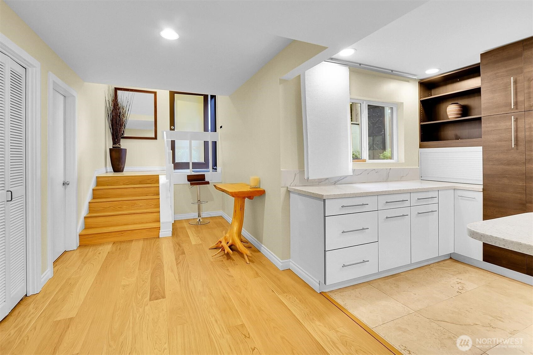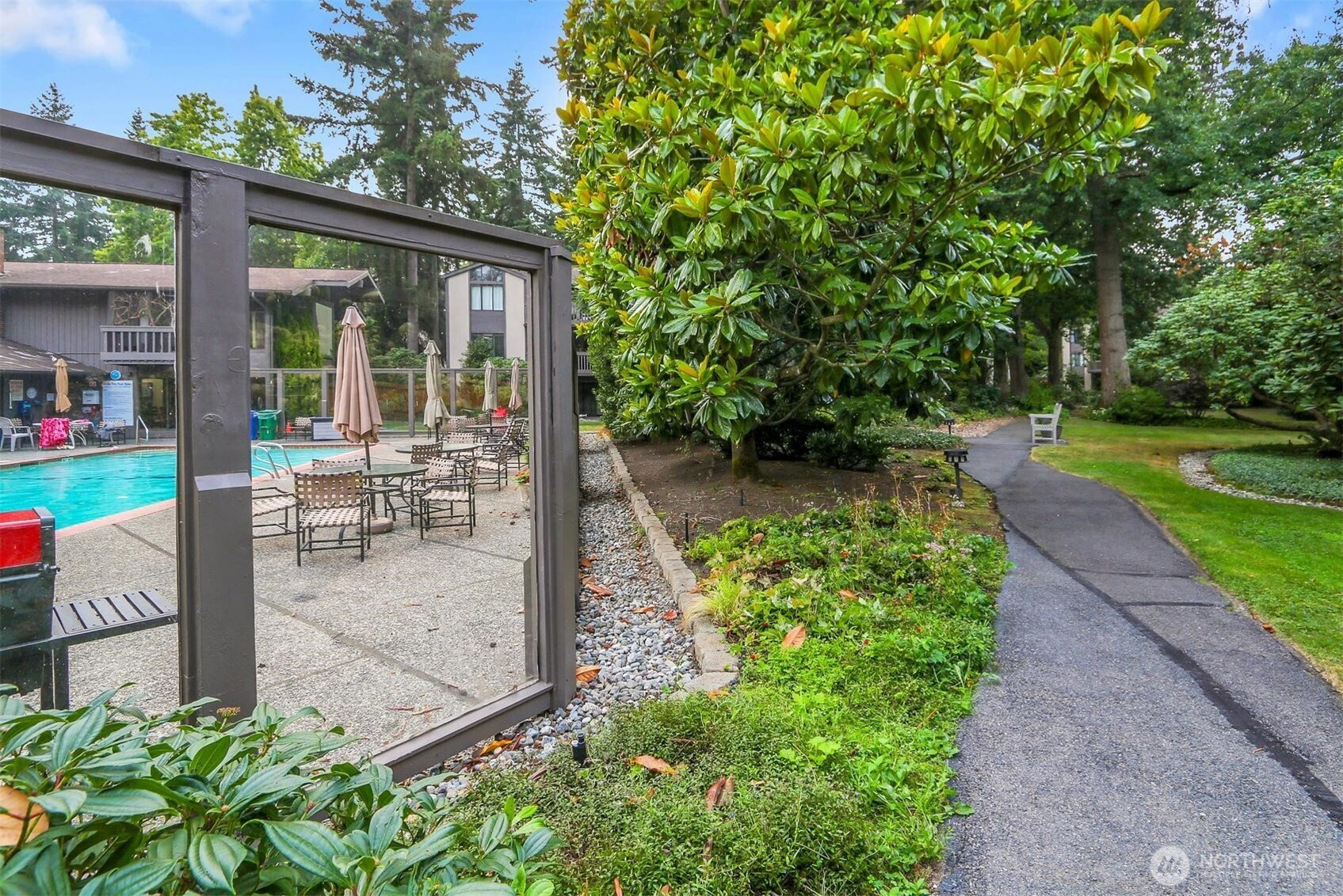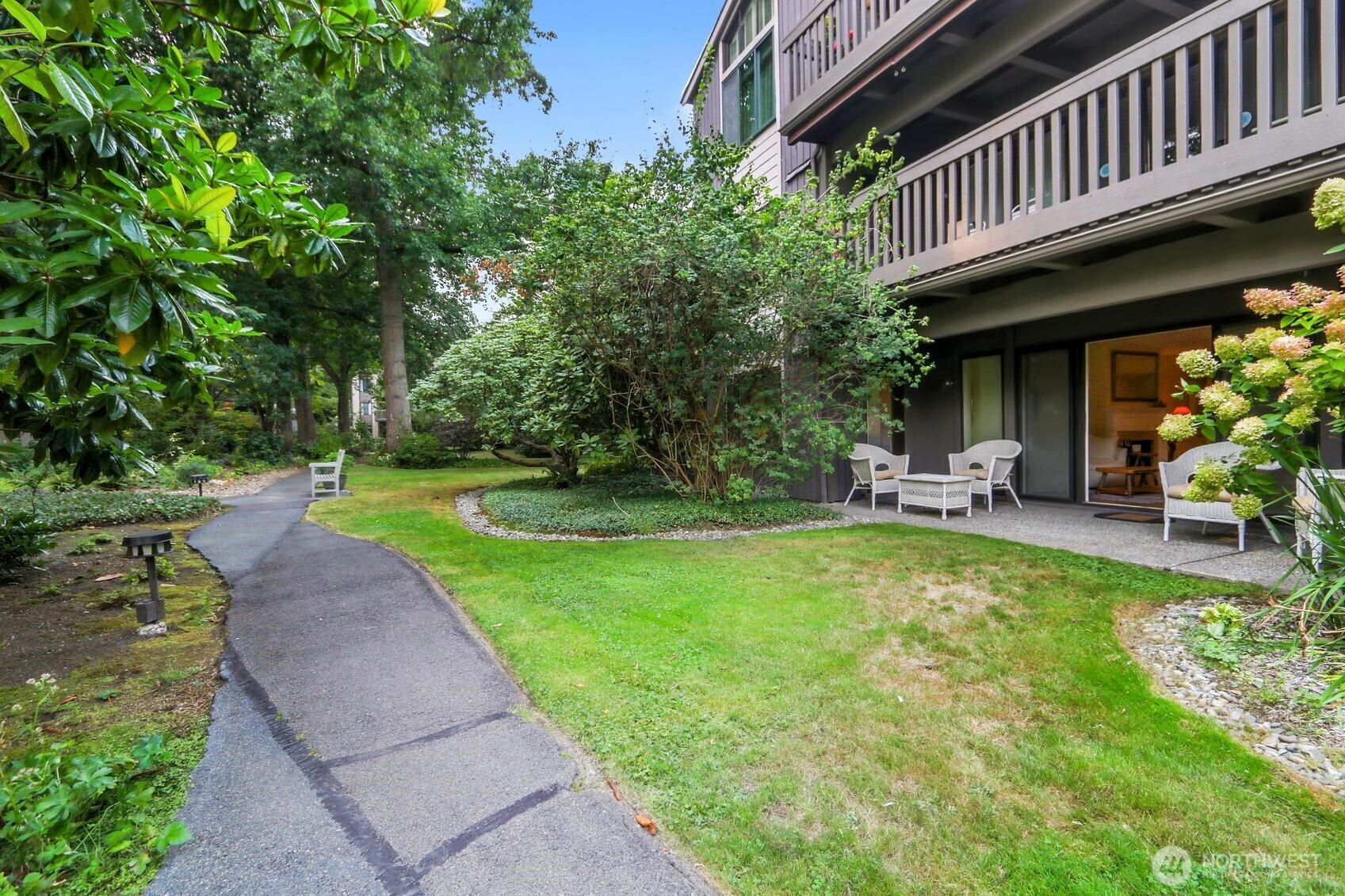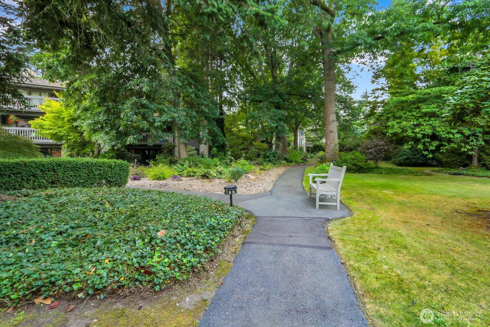 Prime location-highest value: choose how you’d apply seller’s $10k credit. e.g.: PREPAY 1st year HOA, taxes...! Seldom comes the opportunity to live ¾ mi. to Shoreline South LIGHT RAIL, within 7-ac. gated, park-like privacy, tranquil towering arbors, winding paths, ponds, nature. $150k richly remodeled. Gourmet-designed kitchen. Entertain in Main-level Garden privacy, elegantly lit 1,738 SF Grand-piano-sized living, covered garden patio, cozy wood fireplace, Primary suite off patio, Jacuzzi Bath PLUS separate shower, large custom closets. Guest quarters-Full Bath. Steps to NW Cedar clubhouse, pool, nearby Sports, shopping, healthcare. A professionally managed village. 30-ft to covered parking. Inspected, detailed. EZ move-in incentives!