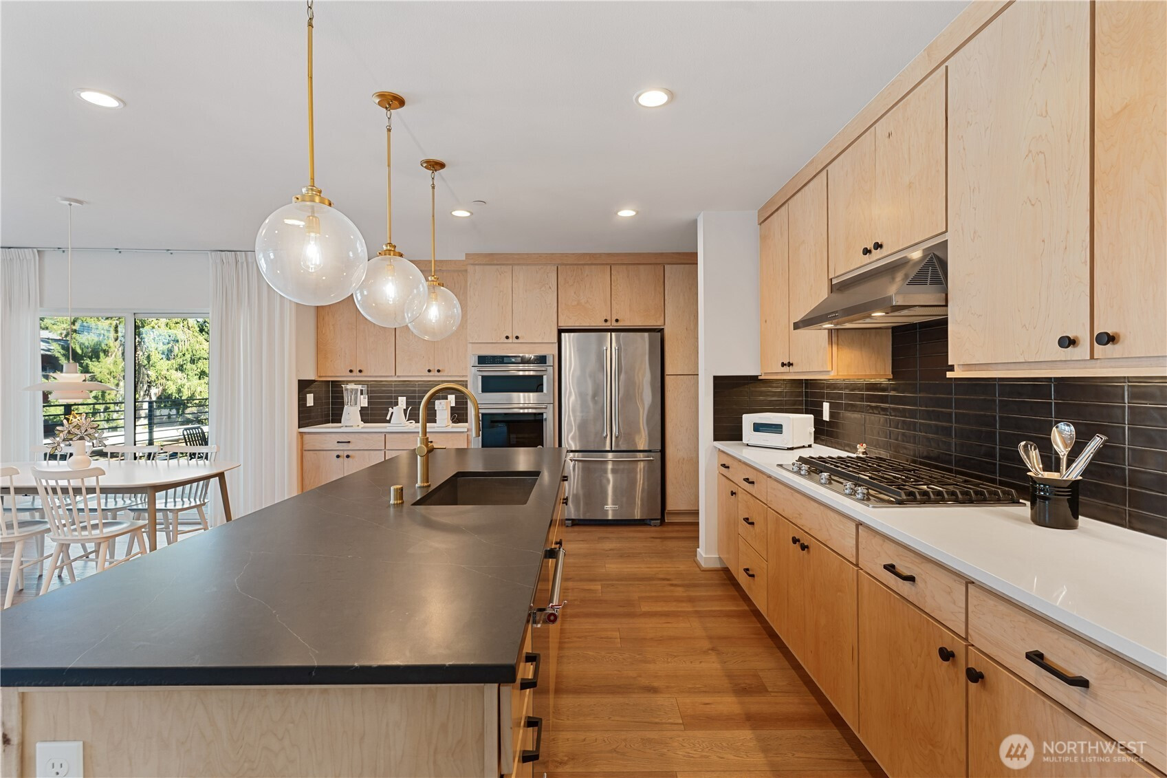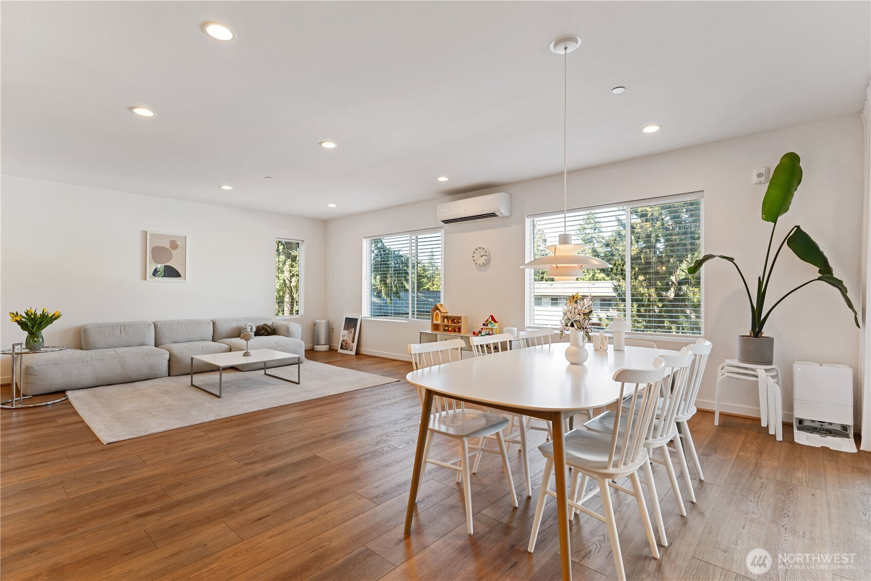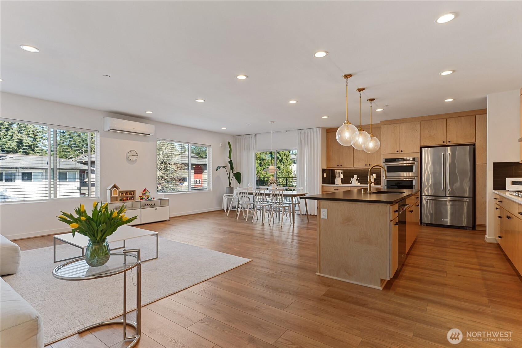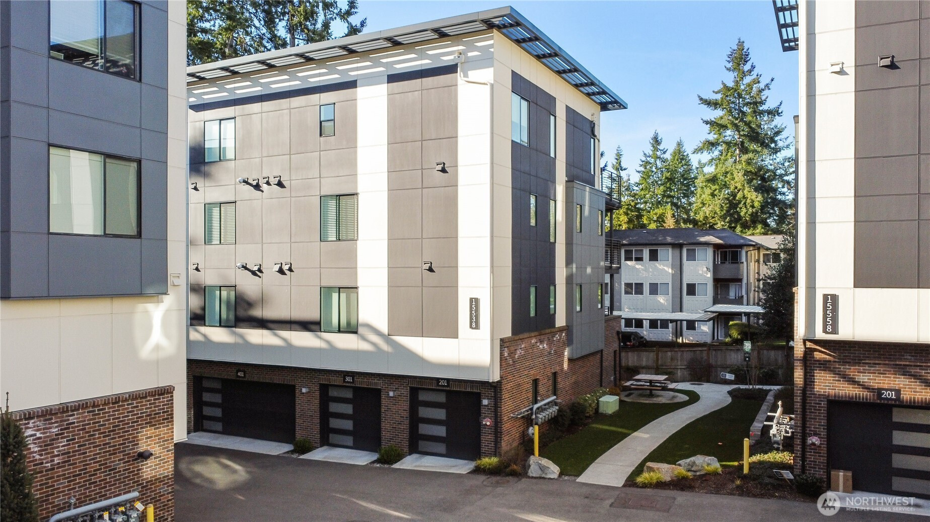 Former model home, premium corner unit, and first time on market—this is the one buyers have been waiting for. Experience refined modern living in The Lofts at 15th, a boutique luxury community by Toll Brothers. Ideally positioned as a corner unit, this residence offers enhanced privacy, abundant natural light, and sophisticated northwest contemporary design. Featuring 3 bedrooms and 2.5 baths, this home showcases high-end finishes including quartz countertops, full-height backsplash, stainless steel appliances, under-cabinet lighting, and a waterfall island perfect for entertaining. The open-concept layout connects the kitchen, dining, and living areas, extending to a covered outdoor space with a gas line for year-round use. As the original model home, it features designer-selected upgrades and has been meticulously maintained by the original owner—offered for the first time. HOA dues include water and sewer. All appliances stay. Enjoy a private attached 2-car garage with EV charging outlet and access via stairs or elevator. High-efficiency heating and cooling provide comfort and energy savings. Conveniently located near shopping, dining, major employers, and transit. Close to Phantom Lake Park, Marymoor Park, and Lake Sammamish State Park. Located in the award-winning Bellevue School District. A rare opportunity to own a designer model home in one of Bellevue’s most desirable communities. Must see!