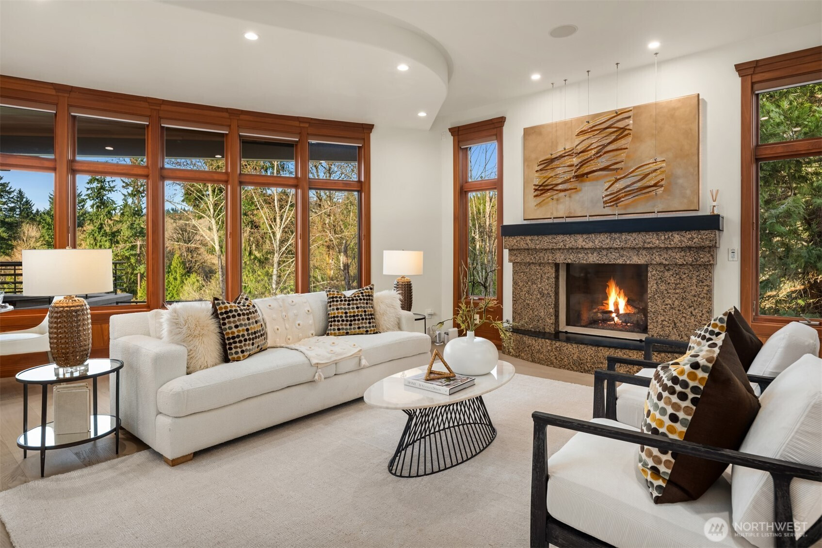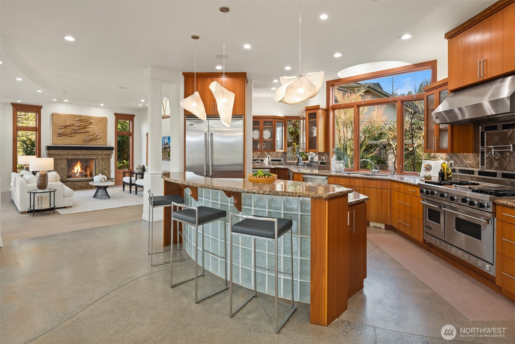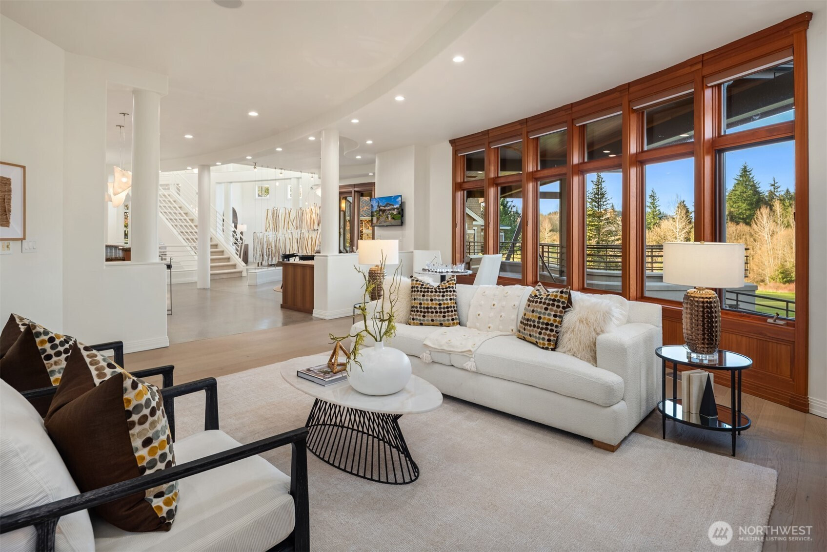 Welcome to Newcastle's Prestwick enclave within "The Reserve". This Custom Lochwood-Lozier "Street of Dreams" Home is truly one of a kind. Set prestigiously along the 4th fairway of Oki's flagship China Creek Course ~ One of two that make up "The Golf Club at Newcastle". From the moment you arrive, the experience is grounded in tranquility and there’s a sense of calm that’s hard to explain but easy to feel. An impressive sculptural basalt fountain sits underneath intentionally exposed steel beams that welcome you to something truly special. The backyard unfolds into a tiered waterfall pond creating a layered, meditative outdoor environment that feels both curated and organic. Flowing inside, the experience shifts you into an art gallery state of mind. Curved edges, expansive volumes, and beautiful views from all levels. The way light plays through the space begins to feel reminiscent of something more architectural… something more intentional. One experiences a subtle nod to the spatial emotion of Solomon R. Guggenheim Museum in NYC... where structure, light, and movement all become part of the experience. The kitchen anchors connection. The deck opens to the fairway. The home flows in a way that feels both grounded and elevated at the same time. Upstairs, a desired retreat. Downstairs, a full lifestyle oasis. This is more than a home on a golf course. It’s a living environment shaped by design, tranquility, and intention. Welcome home.