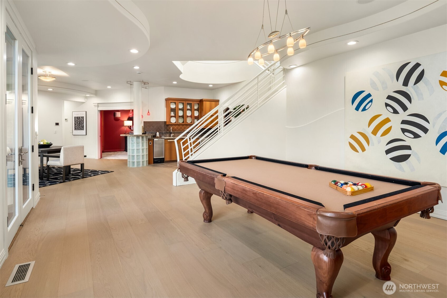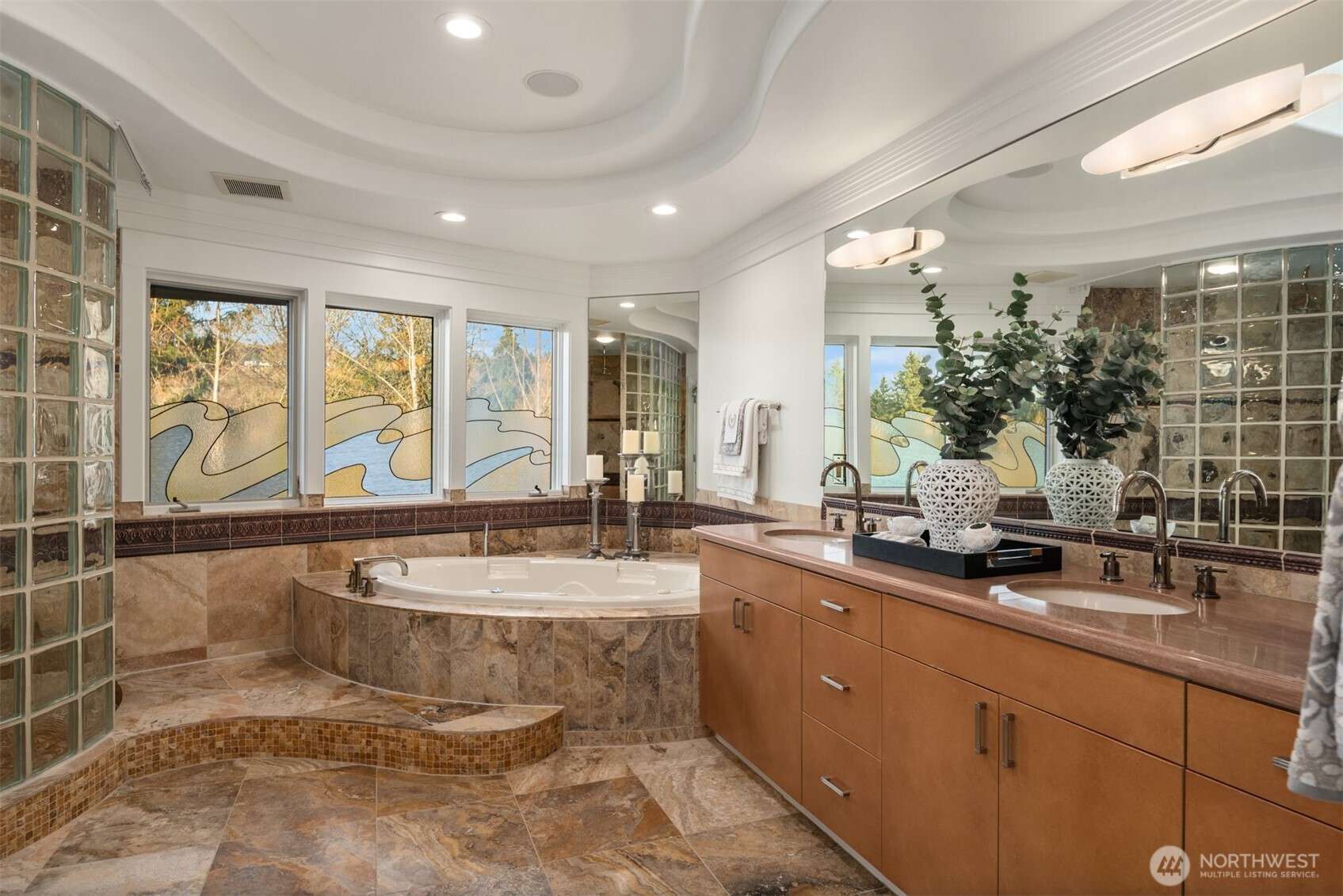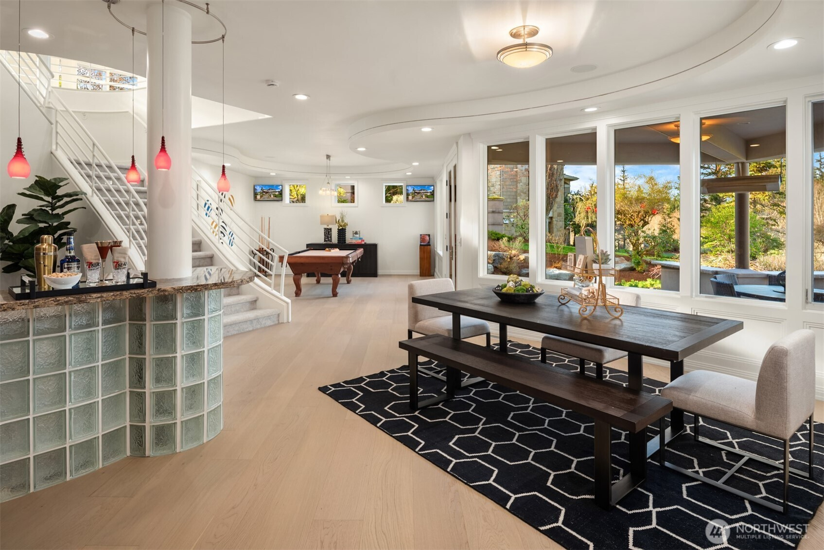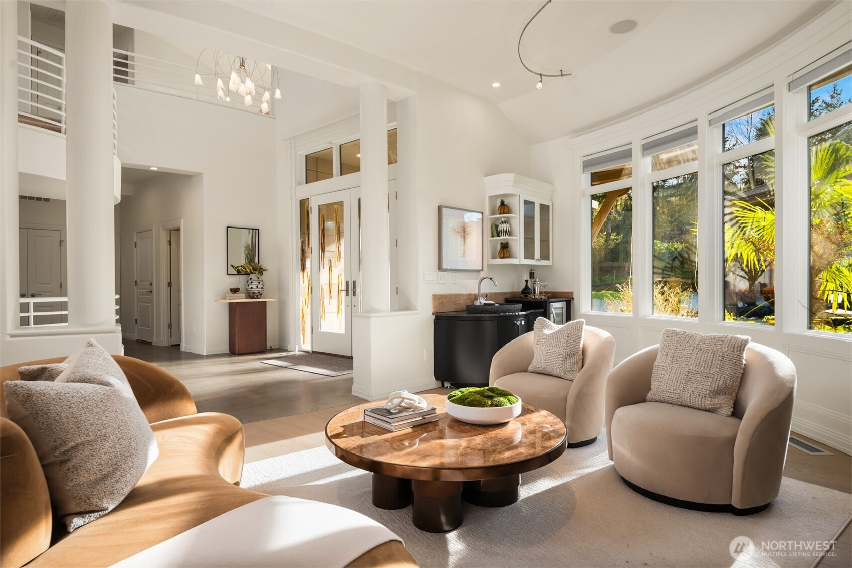 Welcome to Newcastle's Prestwick enclave within "The Reserve". This Custom Lochwood-Lozier "Street of Dreams" Home is truly one of a kind. Set prestigiously along the 4th fairway of Oki's flagship China Creek Course ~ One of two that make up "The Golf Club at Newcastle". From the moment you arrive, the experience is grounded in tranquility and there’s a sense of calm that’s hard to explain but easy to feel. An impressive sculptural basalt fountain sits underneath intentionally exposed steel beams that welcome you to something truly special. The backyard unfolds into a tiered waterfall pond creating a layered, meditative outdoor environment that feels both curated and organic. Flowing inside, the experience shifts you into an art gallery state of mind. Curved edges, expansive volumes, and beautiful views from all levels. The way light plays through the space begins to feel reminiscent of something more architectural… something more intentional. One experiences a subtle nod to the spatial emotion of Solomon R. Guggenheim Museum in NYC... where structure, light, and movement all become part of the experience. The kitchen anchors connection. The deck opens to the fairway. The home flows in a way that feels both grounded and elevated at the same time. Upstairs, a desired retreat. Downstairs, a full lifestyle oasis. This is more than a home on a golf course. It’s a living environment shaped by design, tranquility, and intention. Welcome home.