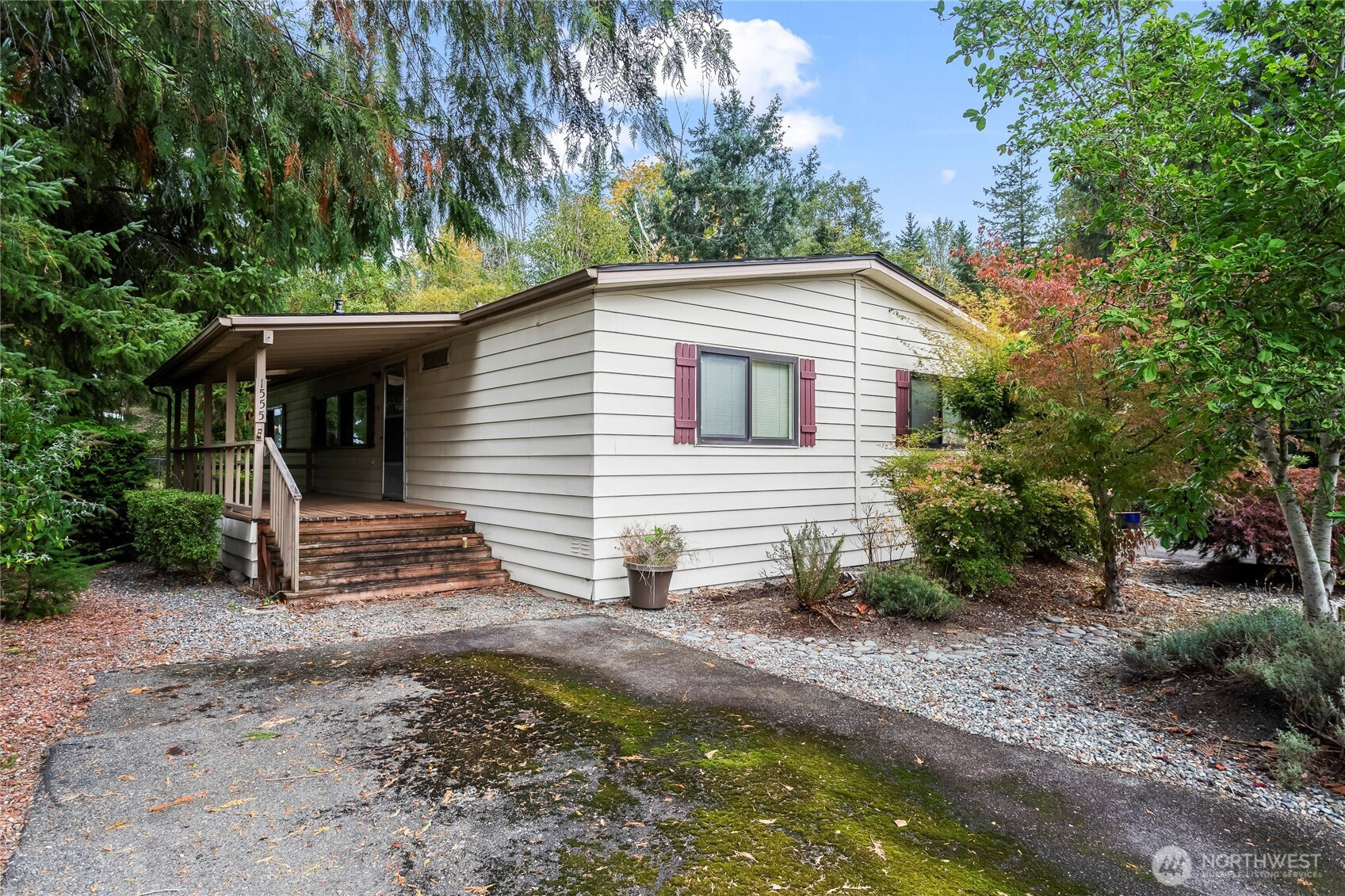 Welcome home, your peaceful retreat awaits! Crystalaire is a charming 55+ community (118 homes). This home is situated on a large lot next to the park pond offering added privacy. The layout offers a primary suite including a walk-in closet, 2 bedrooms on the opposite side of the home and full bathroom. A large open kitchen, dining room and living room make it a perfect place for holiday and important gatherings. Ample parking with a carport, additional parking pad + gravel parking in front of the pond. Original appliances, inspection report available once you've walked the property. Park requirements include an interview with park manager and approved application! Just minutes away from shopping, dining & all the charm Enumclaw has to off.