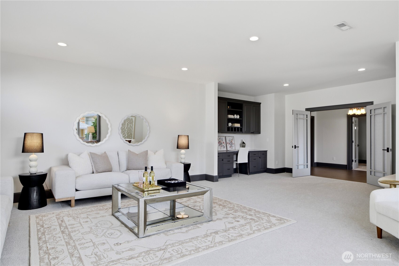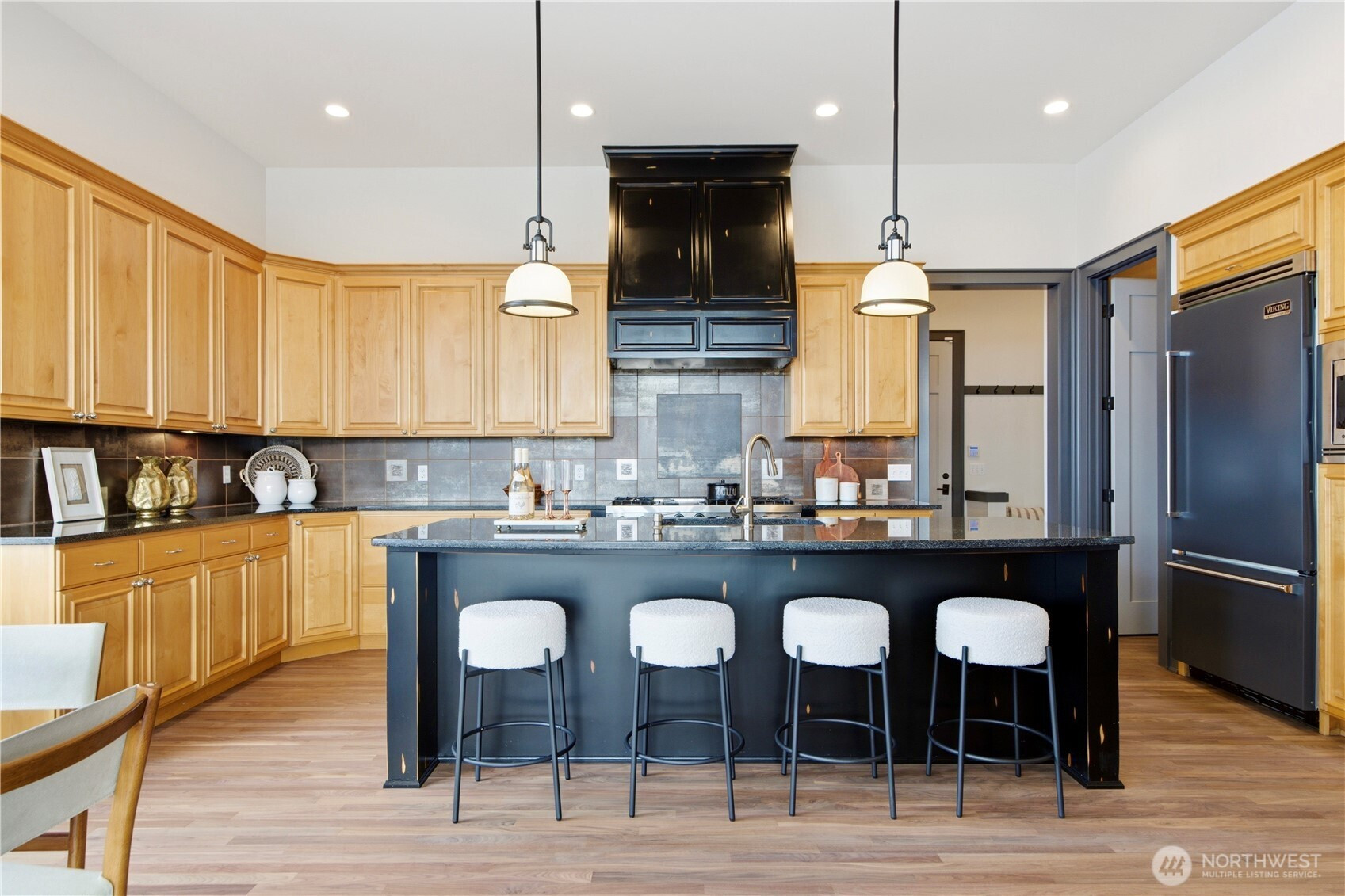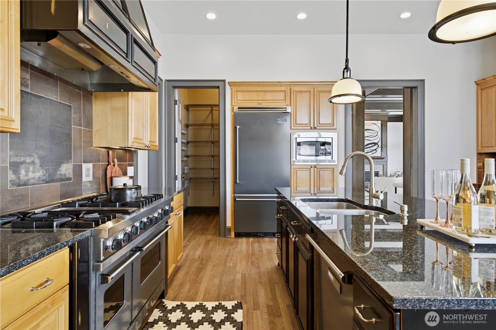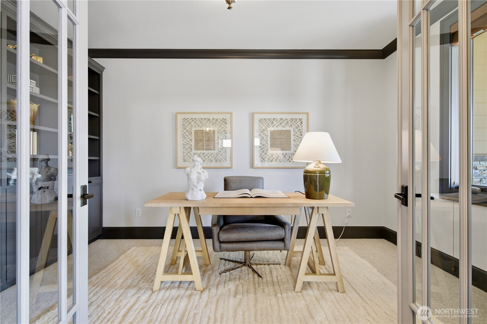 Exceptional Frank Lloyd Wright inspired home bordered by refined landscaping. Experience elevated living in this exquisite Issaquah Highlands retreat. Tucked away on a peaceful cul-de-sac, this home blends timeless elegance with modern sophistication, offering sweeping views and unmatched privacy. Soaring high ceilings, fabulous open-plan living room filled with natual lights extends to stunning view deck great for entertaining. Distinctive detailing & palette with Brazilian walnut hardwoods & contrasting charcoal gray millwork. New refinished flooring & new carpet. Gourmet kitchen: slab granite, Viking graphite gray appliances, walk-in pantry. Gorgeous primary suite w/sitting area & deck access. Lower level features 2 bedroom ensuites, spacious Bonus room/4th bedroom, wine cellar, office. Expansive driveway, 3-car garage, EV charger ready. Dog run w/turf. Nearby trails/parks. This is where luxury meets lifestyle.