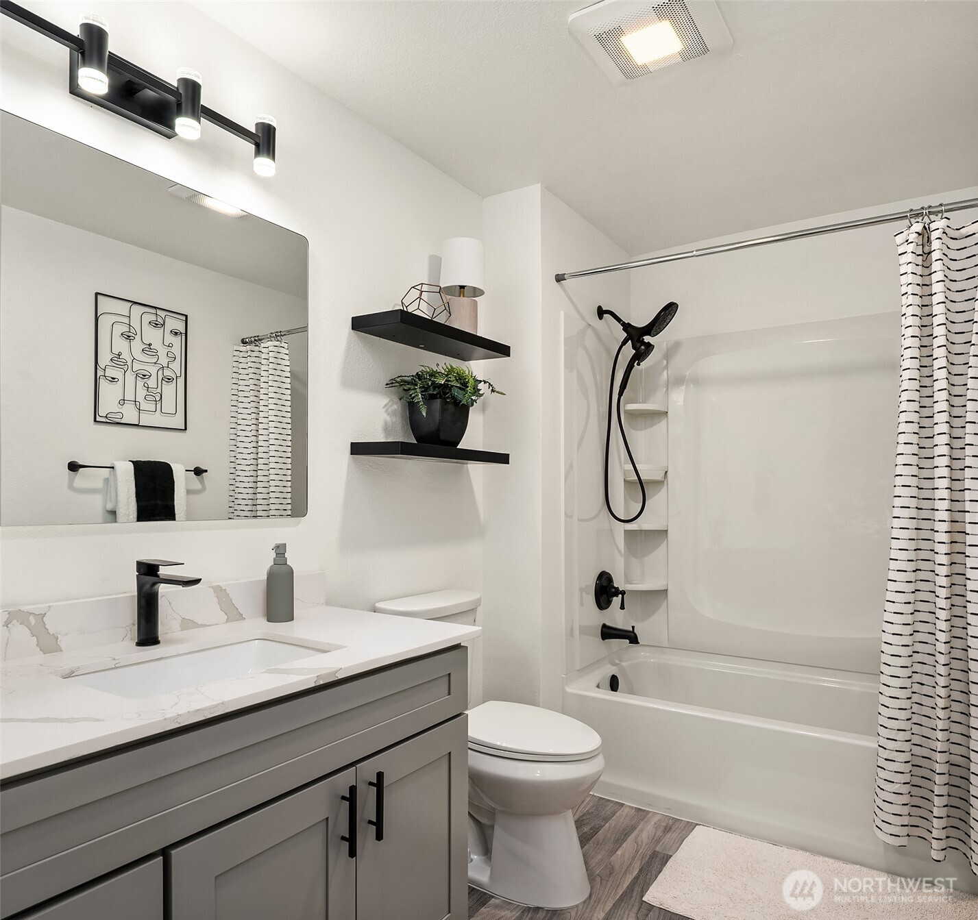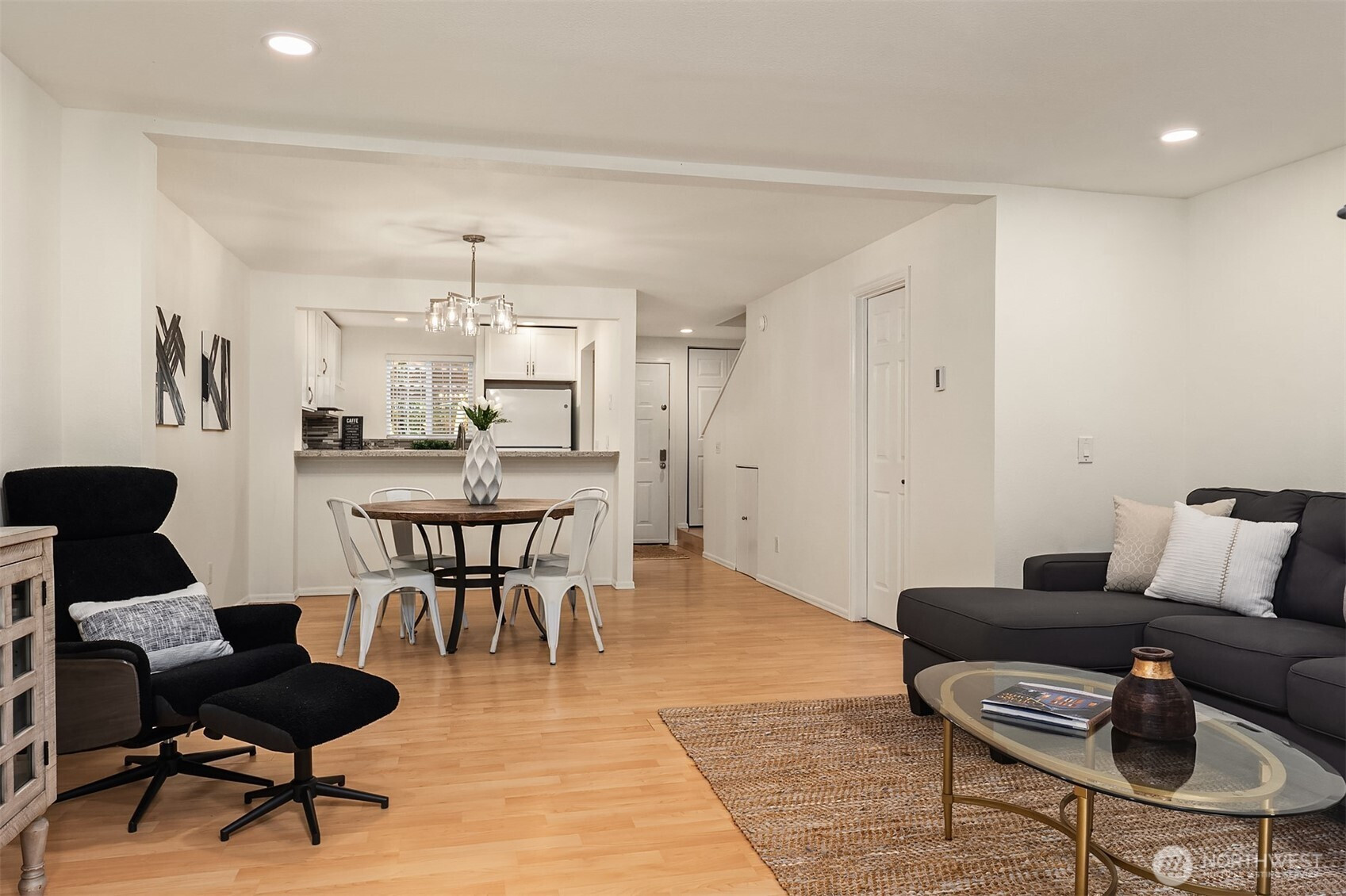 Gorgeous, fully remodeled 2- story 2 bd/1.5 bath townhome features an updated kitchen with quartz counters, tile backsplash, and LV wood flooring. Newly repainted home with updated stylish light fixtures. The main floor has a great open concept of living with kitchen and great room attached, remodeled powder room and a slider out to the back patio and garden space. The upstairs has 2 bedrooms with a newly remodeled bathroom. Enoy the community ammenties like a pool, athletic court and playgrounds. The HOA covers most utilities, except electricity. Best of all, step right out your back door onto the onto nearby trails-perfect for nature lovers. Pre-inspection has been completed and items were fixed. This home is truly move-in ready. Clean HOA with no pending assessments. Easy access to the 405, Totem Lake Village, minutes to all the east side has to offer and close to tech hub.