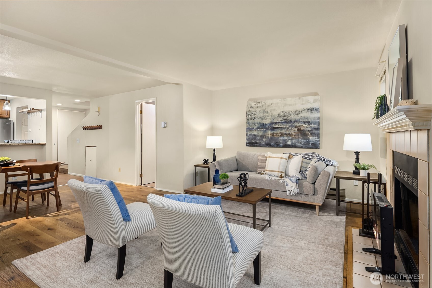 Discover incredible value in this updated condominium, ideally located at the back of the Kingswood community for added privacy and abundant guest parking. The home features two bedrooms, one and a half baths, and one dedicated carport spot. The main level offers newer vinyl plank flooring, a wood burning fireplace and an updated powder room with newer cabinetry, a granite counter and newer faucet. The kitchen shines with upgraded cabinetry, solid granite countertops, farmhouse sink with newer faucet and newer SS appliances, including dishwasher, refrigerator, microwave and stove hood vent—all less than four years old. Recent updates also include a new electrical panel (2025) and a hot water heater (2022). The fans in both bathrooms and the laundry area were also replaced. Upstairs, enjoy brand-new carpeting, two large bedrooms, a full continental bath with an upgraded vanity and solid-surface countertop and a laundry area with newer washer and dryer. The yard was fully fenced 2021 and offers privacy and a perfect space for pets—two animals are allowed with no weight restrictions. The roofs in the complex were replaced in 2019 and the attics were inspected in 2025. Enjoy the proximity to I-405 for easy commutes both north and south and access to miles of walking and biking along the Tolt Trail. HOA dues cover water, sewer, garbage, and basic cable (with two boxes), and community amenities include an outdoor pool, basketball court, and play area with climbing structure.