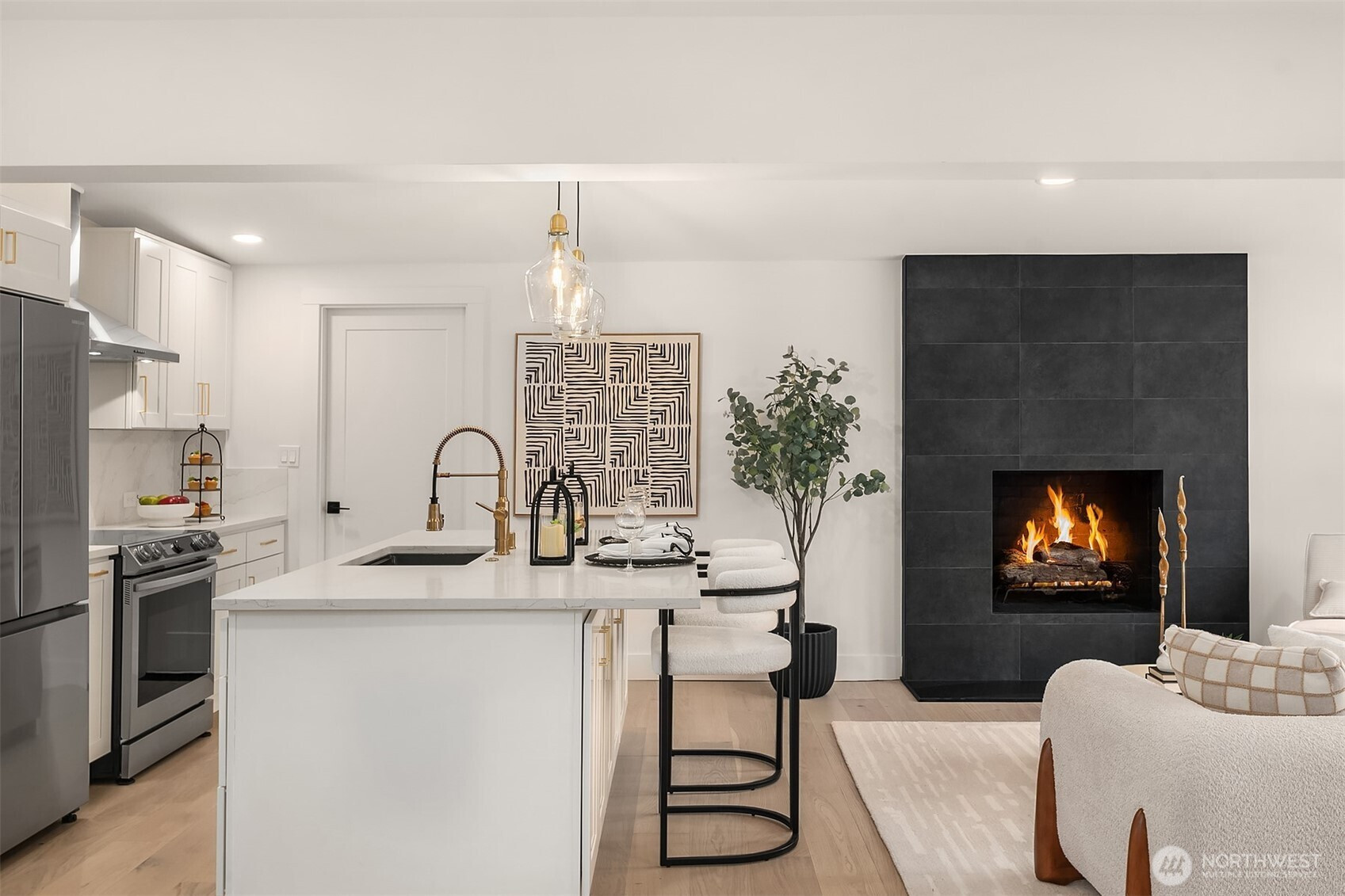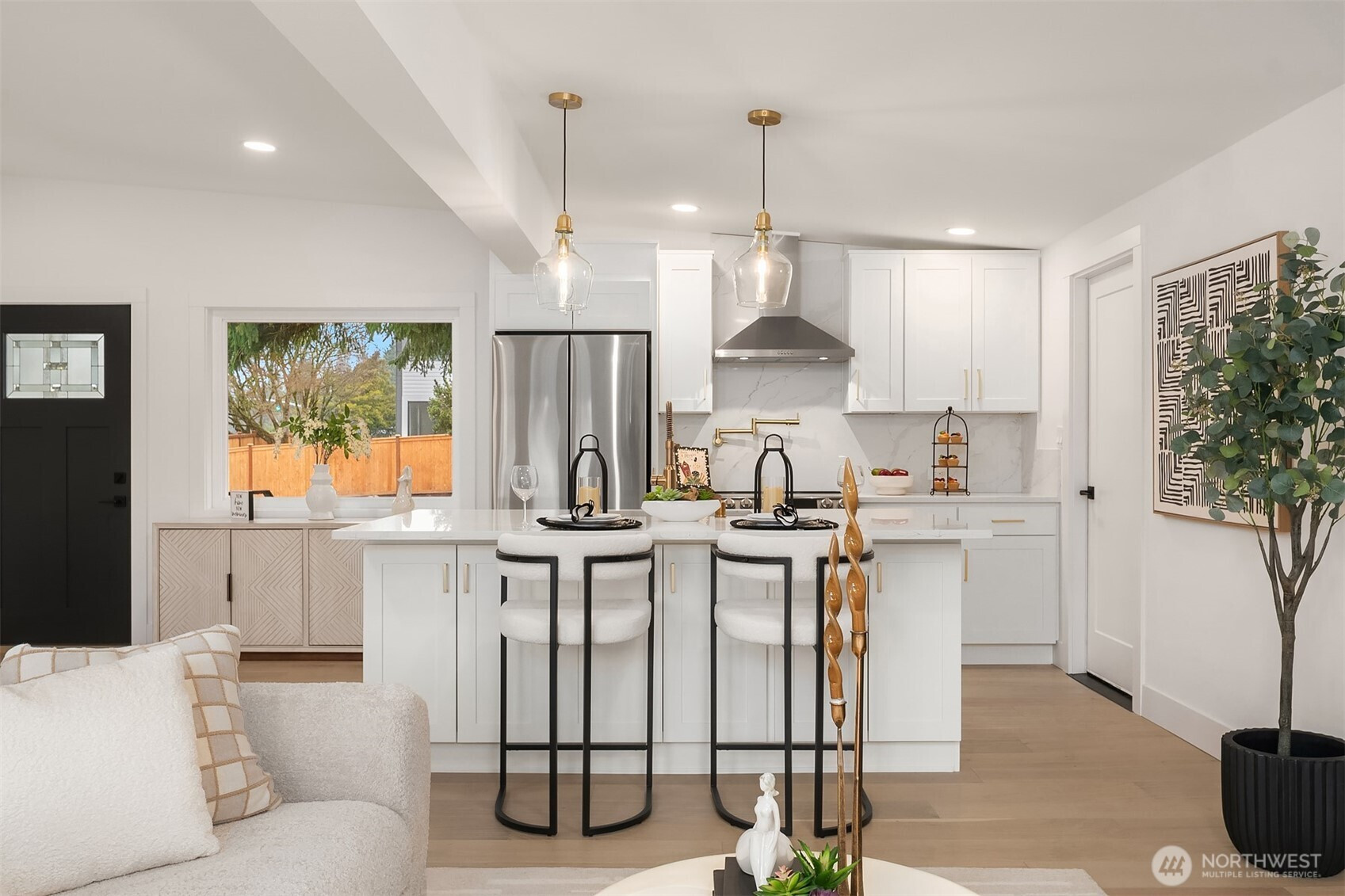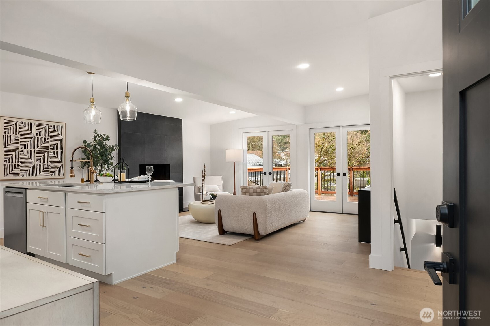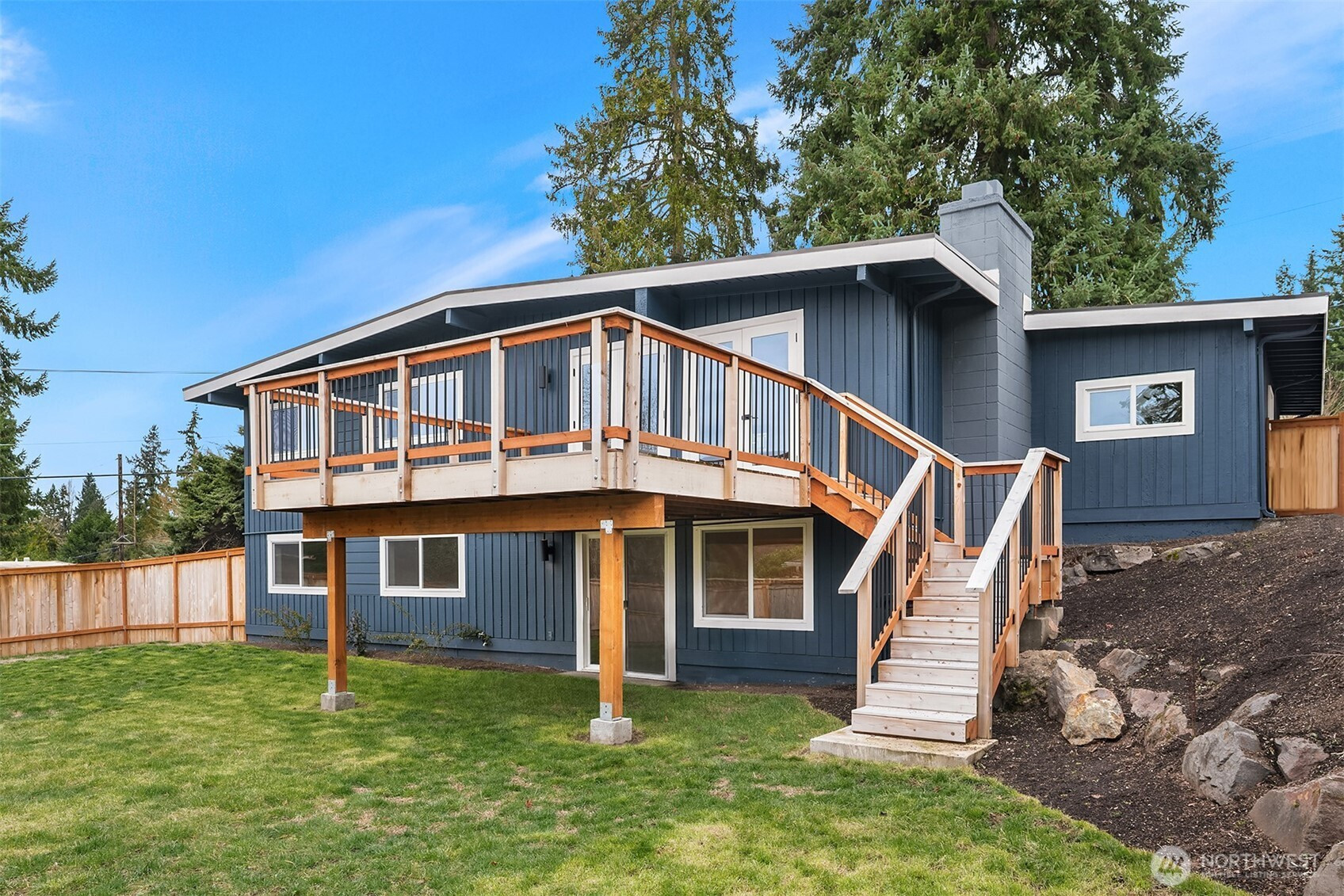 Experience refined living in this impeccably remodeled Lake Hills masterpiece, thoughtfully curated for both sophistication and comfort. Sleek contemporary finishes, including main floor primary suite, exceptional craftsmanship, and an open, light-filled layout create an atmosphere of modern elegance throughout. Set on a beautifully landscaped corner lot, the home offers seamless indoor-outdoor living with a fully fenced yard—perfect for relaxing afternoons or effortless entertaining. Take in sweeping territorial views from the expansive viewing deck, an ideal setting for unwinding at sunset or hosting guests. The versatile lower level provides outstanding flexibility, with potential for a private MIL suite or an inviting rec room—perfect for game nights, movie watching, or cheering on your favorite teams. Enjoy an unbeatable location just steps from the neighborhood park and the beloved Samena Swim & Recreation Club. A short stroll leads to Lake Hills Village, home to local favorite Shabu Shabu Kyoto Japanese Restaurant, while the Seattle Jewish Community School is conveniently located just blocks away. A rare opportunity to enjoy style, comfort, and community in one of Lake Hills’ most desirable settings.