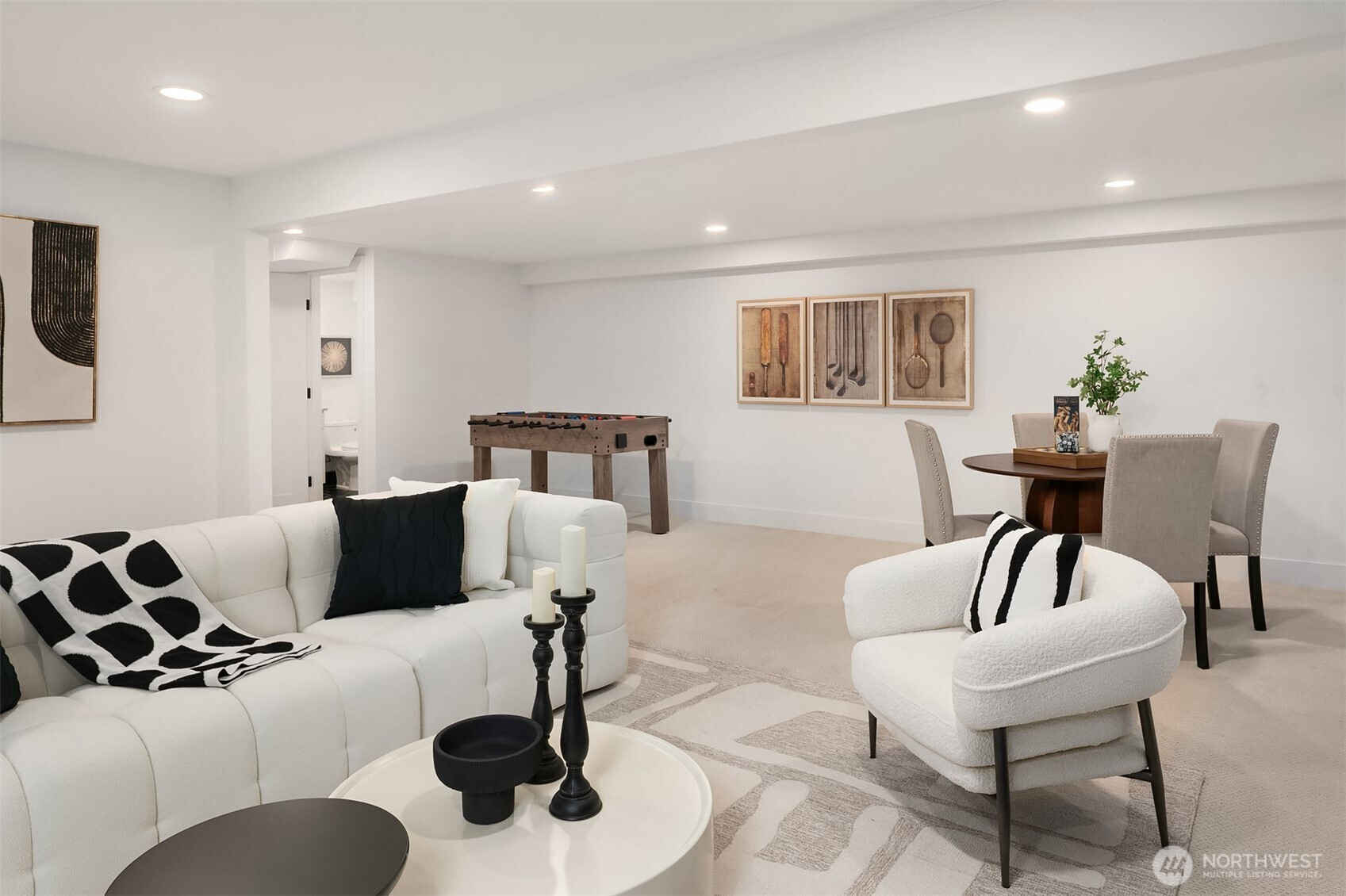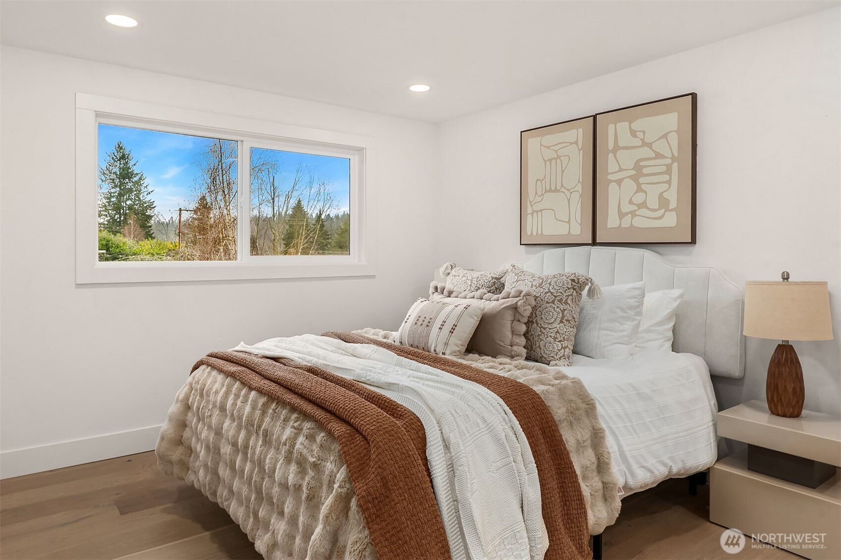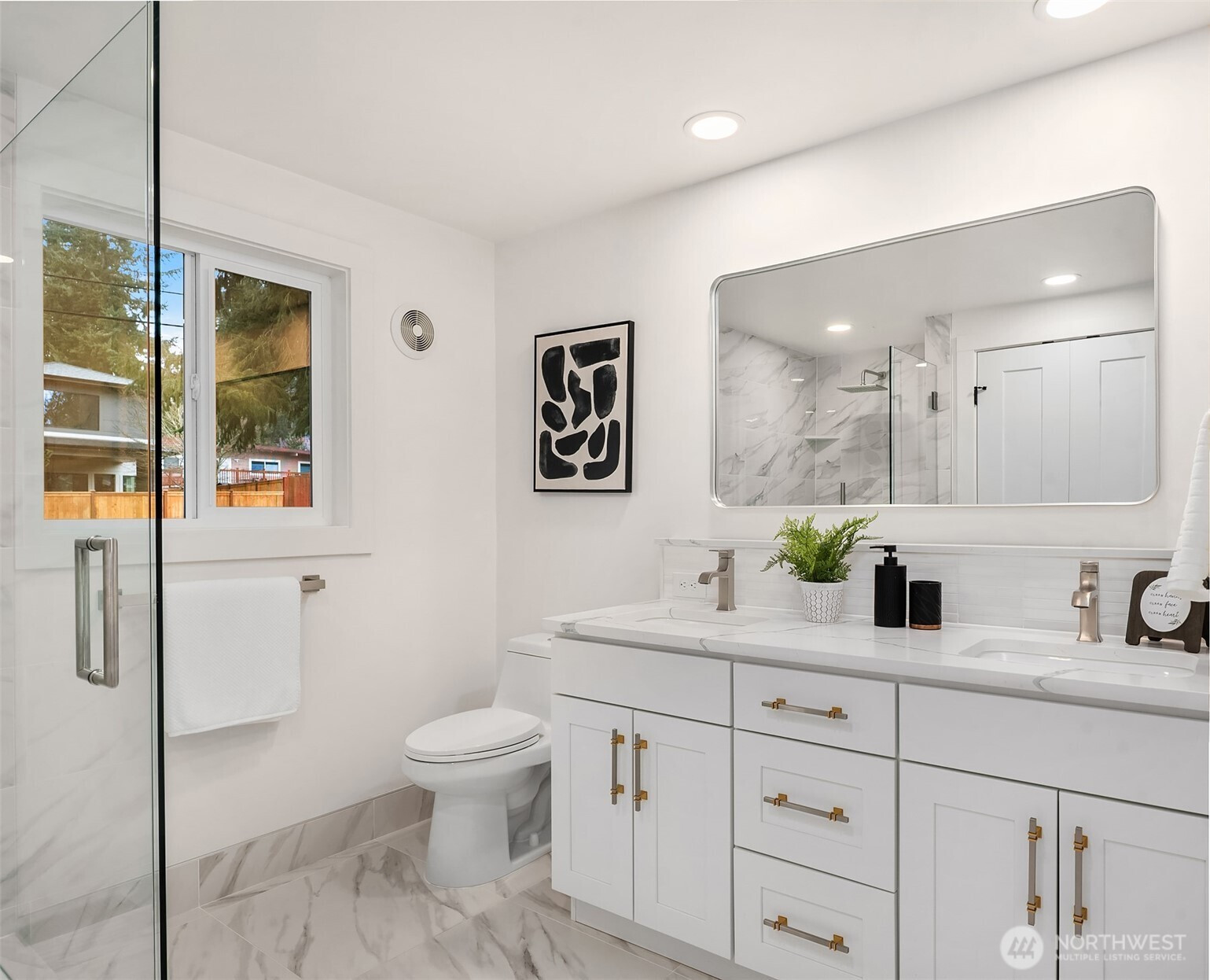 Experience refined living in this impeccably remodeled Lake Hills masterpiece, thoughtfully curated for both sophistication and comfort. Sleek contemporary finishes, including main floor primary suite, exceptional craftsmanship, and an open, light-filled layout create an atmosphere of modern elegance throughout. Set on a beautifully landscaped corner lot, the home offers seamless indoor-outdoor living with a fully fenced yard—perfect for relaxing afternoons or effortless entertaining. Take in sweeping territorial views from the expansive viewing deck, an ideal setting for unwinding at sunset or hosting guests. The versatile lower level provides outstanding flexibility, with potential for a private MIL suite or an inviting rec room—perfect for game nights, movie watching, or cheering on your favorite teams. Enjoy an unbeatable location just steps from the neighborhood park and the beloved Samena Swim & Recreation Club. A short stroll leads to Lake Hills Village, home to local favorite Shabu Shabu Kyoto Japanese Restaurant, while the Seattle Jewish Community School is conveniently located just blocks away. A rare opportunity to enjoy style, comfort, and community in one of Lake Hills’ most desirable settings.