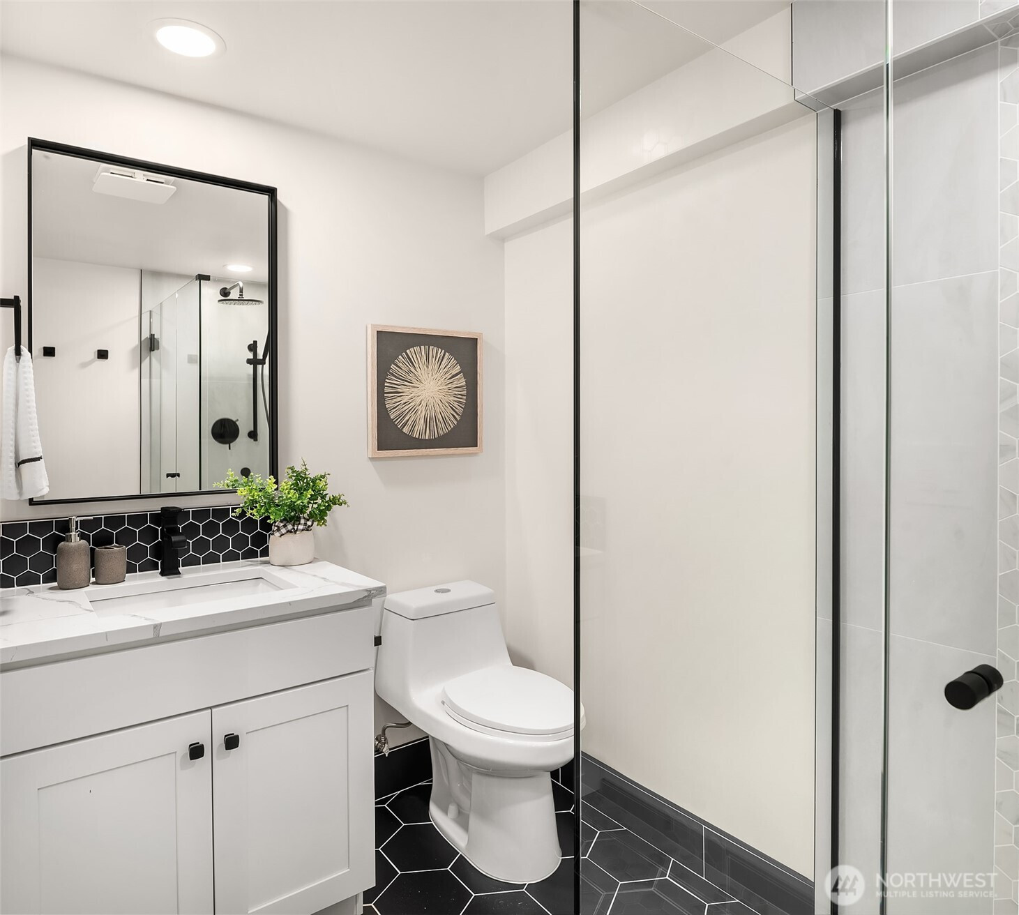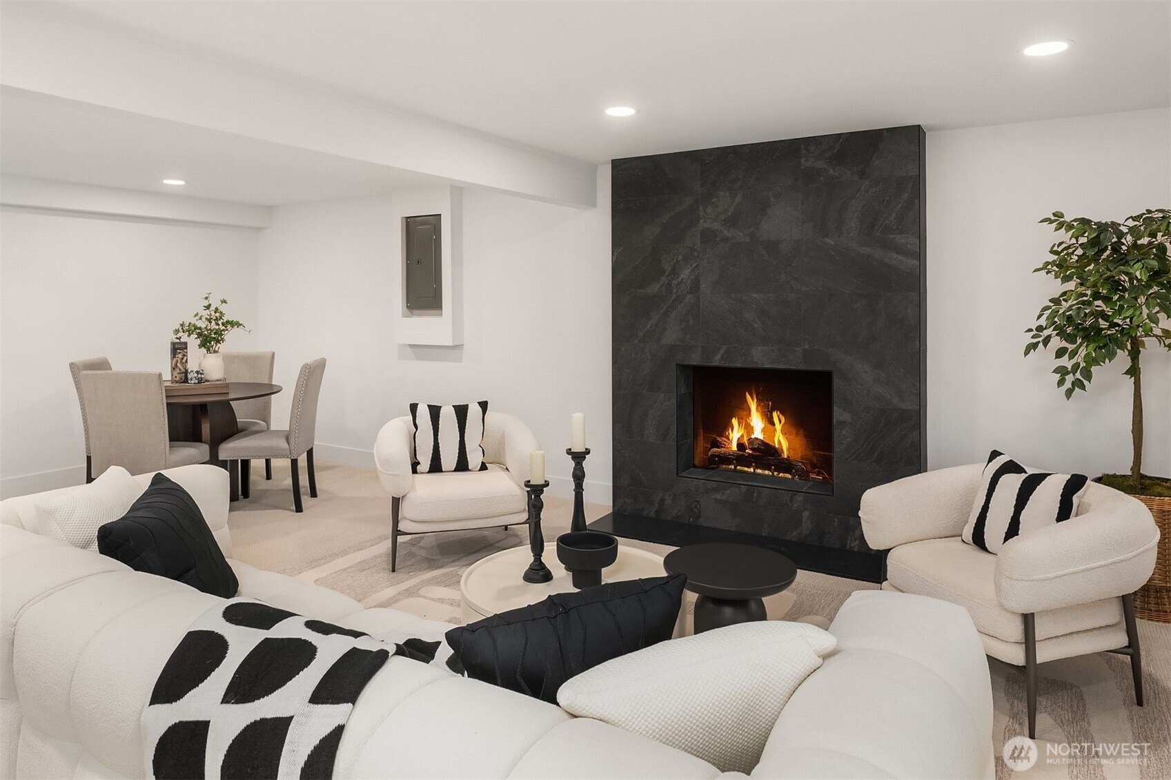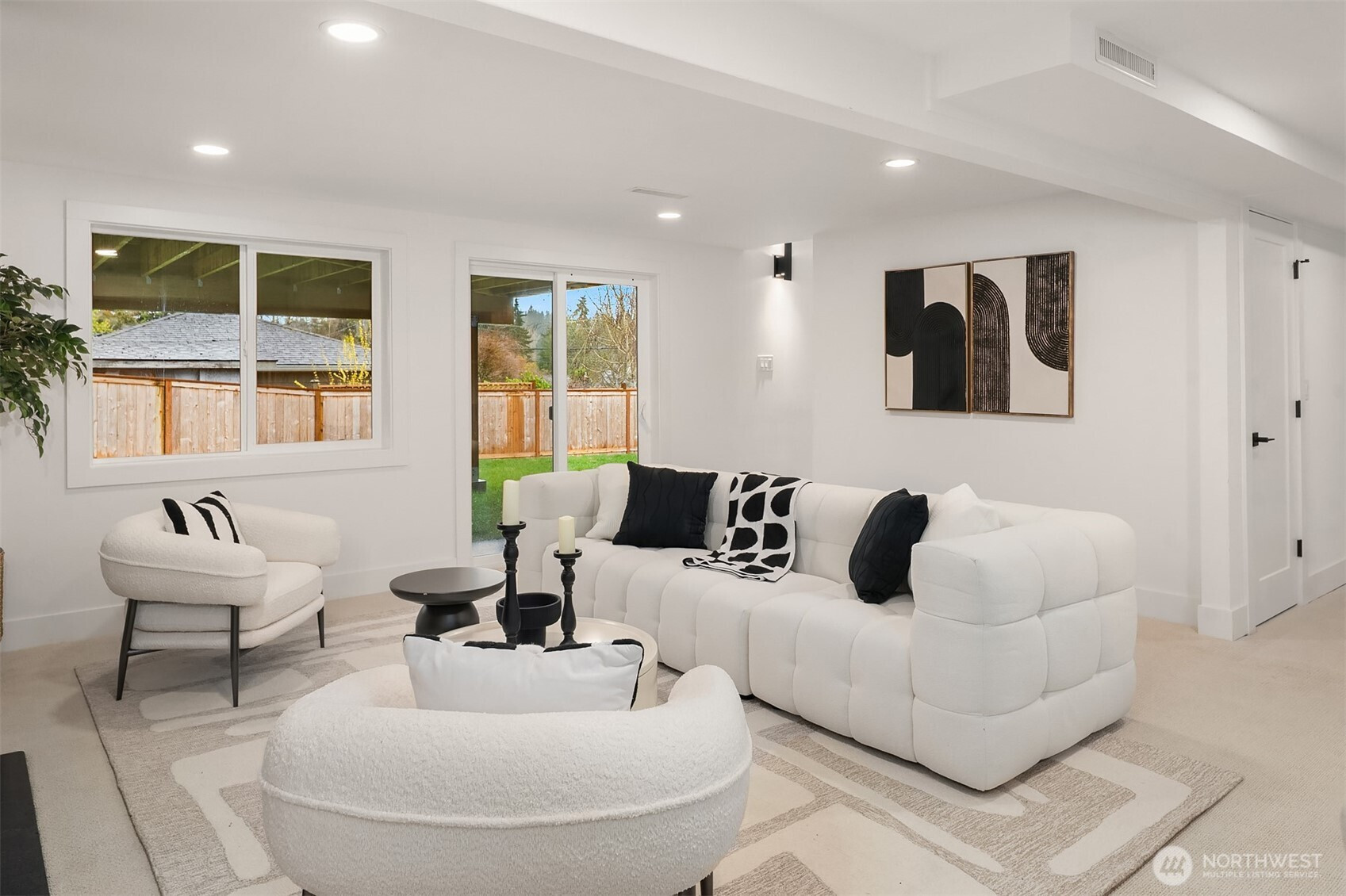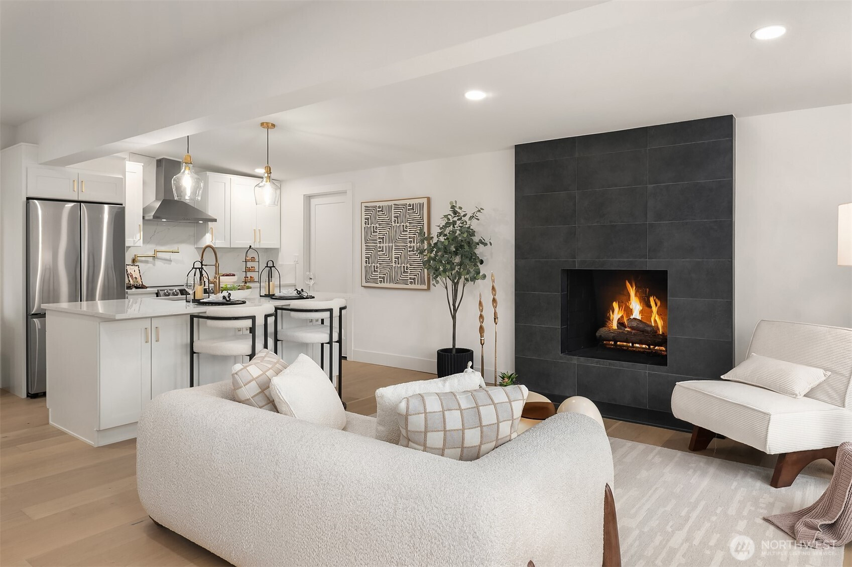 Experience refined living in this impeccably remodeled Lake Hills masterpiece, thoughtfully curated for both sophistication and comfort. Sleek contemporary finishes, including main floor primary suite, exceptional craftsmanship, and an open, light-filled layout create an atmosphere of modern elegance throughout. Set on a beautifully landscaped corner lot, the home offers seamless indoor-outdoor living with a fully fenced yard—perfect for relaxing afternoons or effortless entertaining. Take in sweeping territorial views from the expansive viewing deck, an ideal setting for unwinding at sunset or hosting guests. The versatile lower level provides outstanding flexibility, with potential for a private MIL suite or an inviting rec room—perfect for game nights, movie watching, or cheering on your favorite teams. Enjoy an unbeatable location just steps from the neighborhood park and the beloved Samena Swim & Recreation Club. A short stroll leads to Lake Hills Village, home to local favorite Shabu Shabu Kyoto Japanese Restaurant, while the Seattle Jewish Community School is conveniently located just blocks away. A rare opportunity to enjoy style, comfort, and community in one of Lake Hills’ most desirable settings.