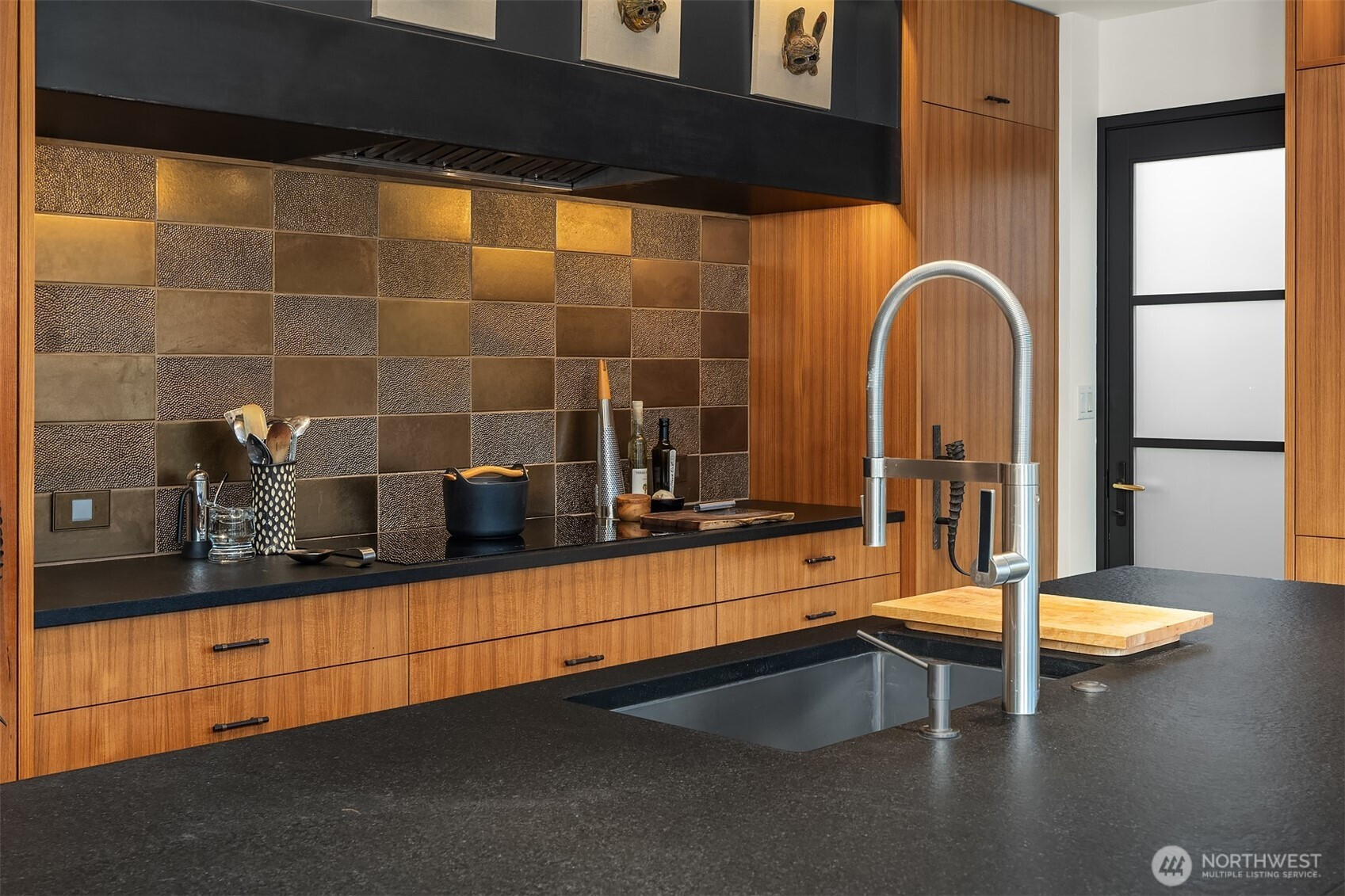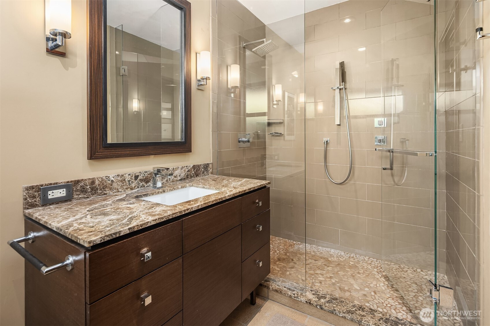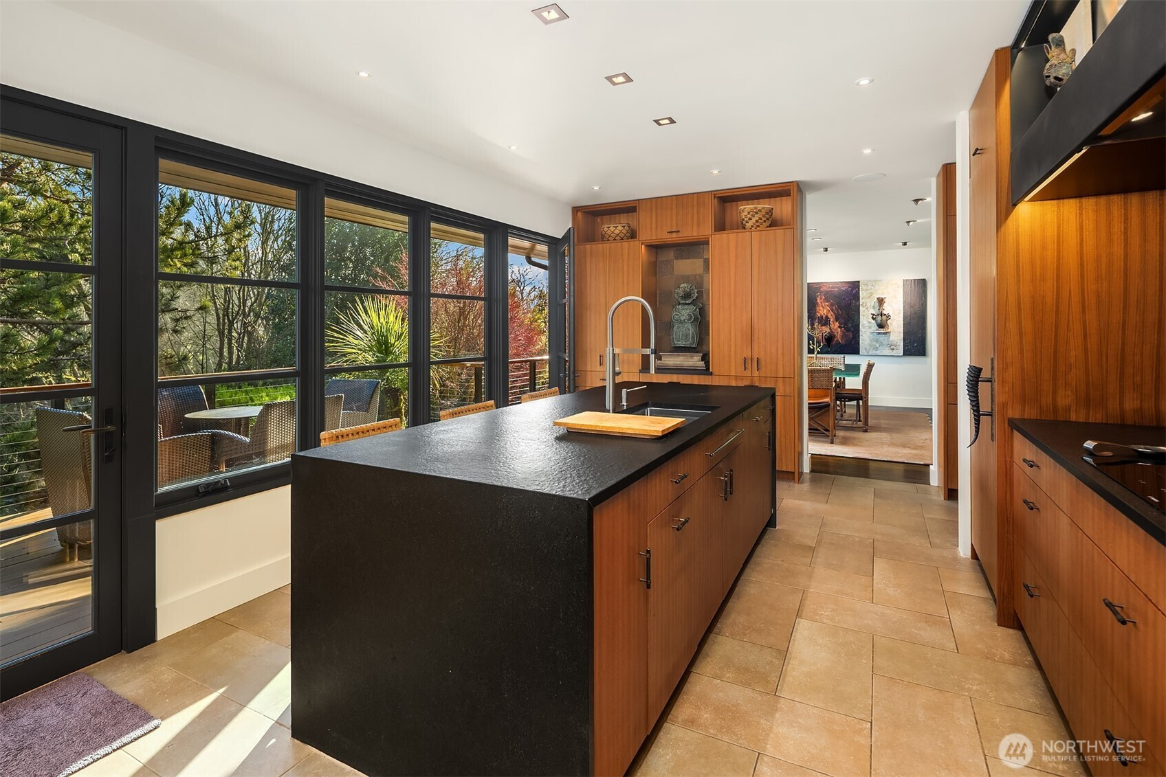 Mid-Century Modern elegance in an exceptionally private, arboreal setting on one of the city’s most coveted streets. This refined residence blends timeless design with luxe craftsmanship, featuring expansive windows, oak hardwoods, and seamless indoor-outdoor living. A tranquil, southwest-facing enclosed courtyard with water feature welcomes you, while French doors open to a rear deck overlooking a lush greenbelt. The epicurean kitchen is an entertainer’s dream with waterfall stone counters, custom teak cabinetry, large island, and high-end stainless appliances. Spacious dining and living areas enjoy walls of windows and a gas fireplace. Main level offers two en-suite bedrooms and a powder room. The daylight lower level features a comfortable media room with gas fireplace, an expansive primary suite with spa-inspired bath overlooking serene gardens, generous laundry, and ample storage. Two-car garage includes Swisstrax flooring and EV charger. Ideally located near Magnolia Village, Elliott Bay Marina, Discovery Park, Ballard Locks, Fisherman’s Terminal, Seattle’s waterfront, and an effortless commute to downtown.
