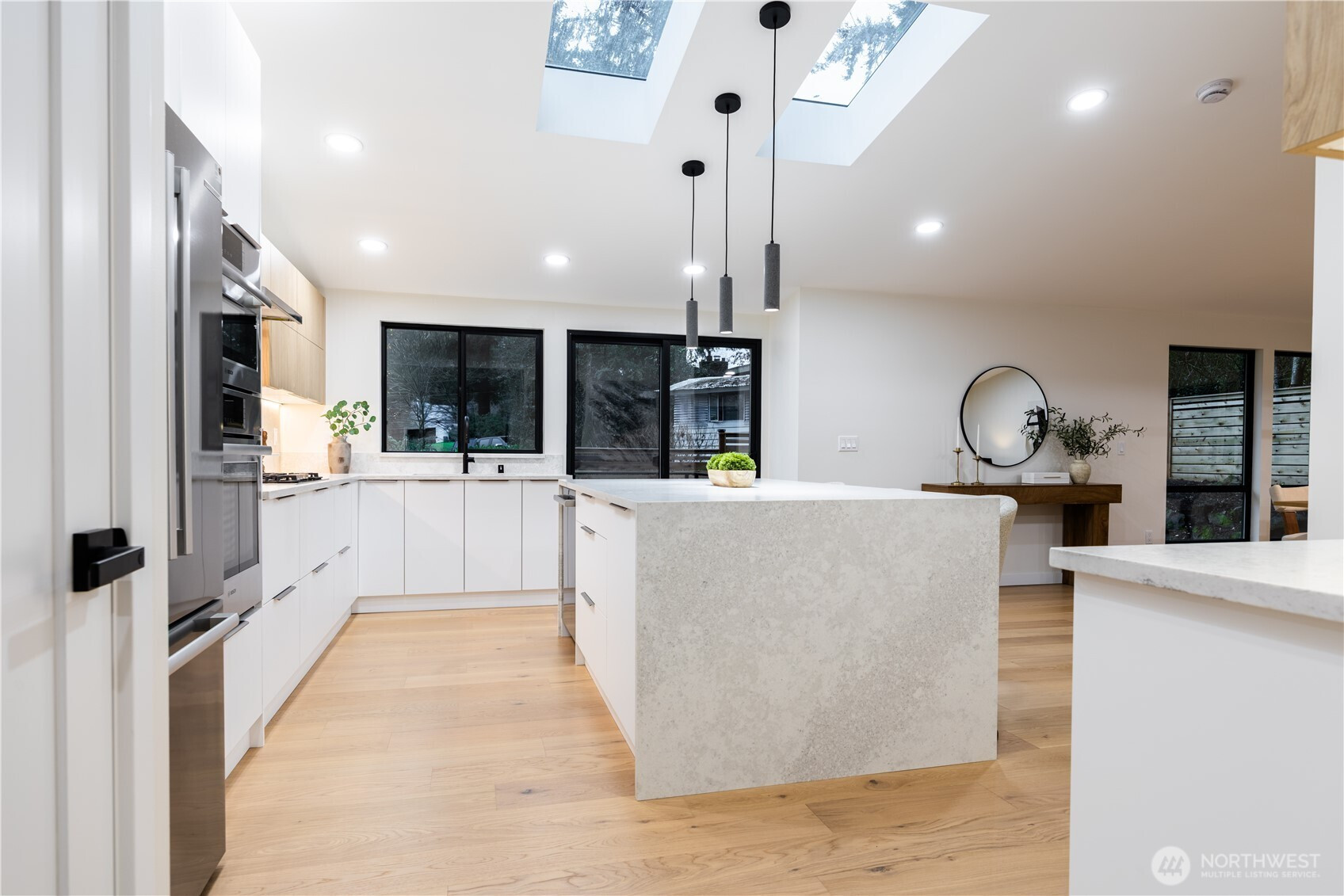 Masterfully reimagined luxury home in Bellevue’s coveted Phantom Lake neighborhood. This complete transformation features all-new systems: electrical, plumbing, HVAC, windows, tpo and premium finishes. Sun-drenched, flowing spaces center on a chef’s kitchen with custom cabinetry & high-end appliances. Spa-inspired baths showcase designer tile and heated floors. An expansive deck offers Phantom lake glimpses and seamless indoor-outdoor living. Rare for Bellevue: a newly landscaped level side yard plus ample parking for gatherings or RV. Perfectly positioned on a quiet street with quick access to I-90/405, Downtown Bellevue & Microsoft. Just blocks from nationally ranked Bellevue Schools & steps from Phantom Lake trails, Swim Club and parks.