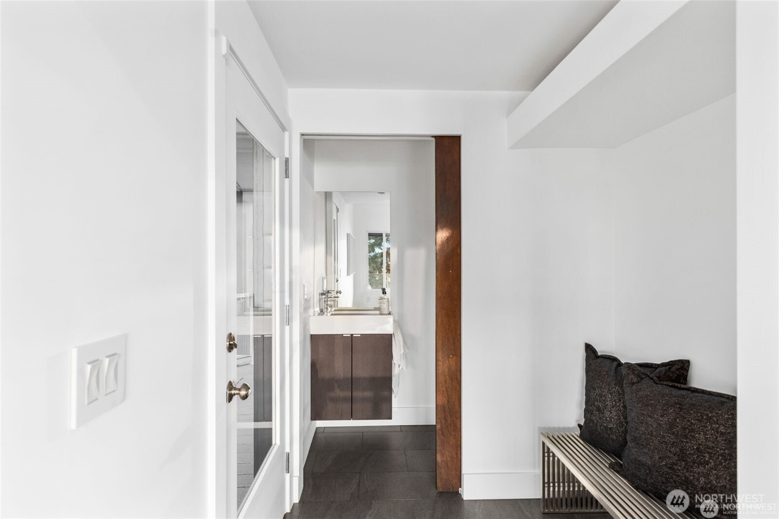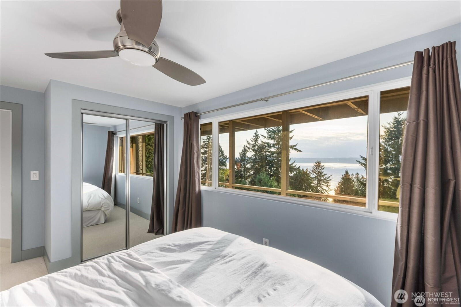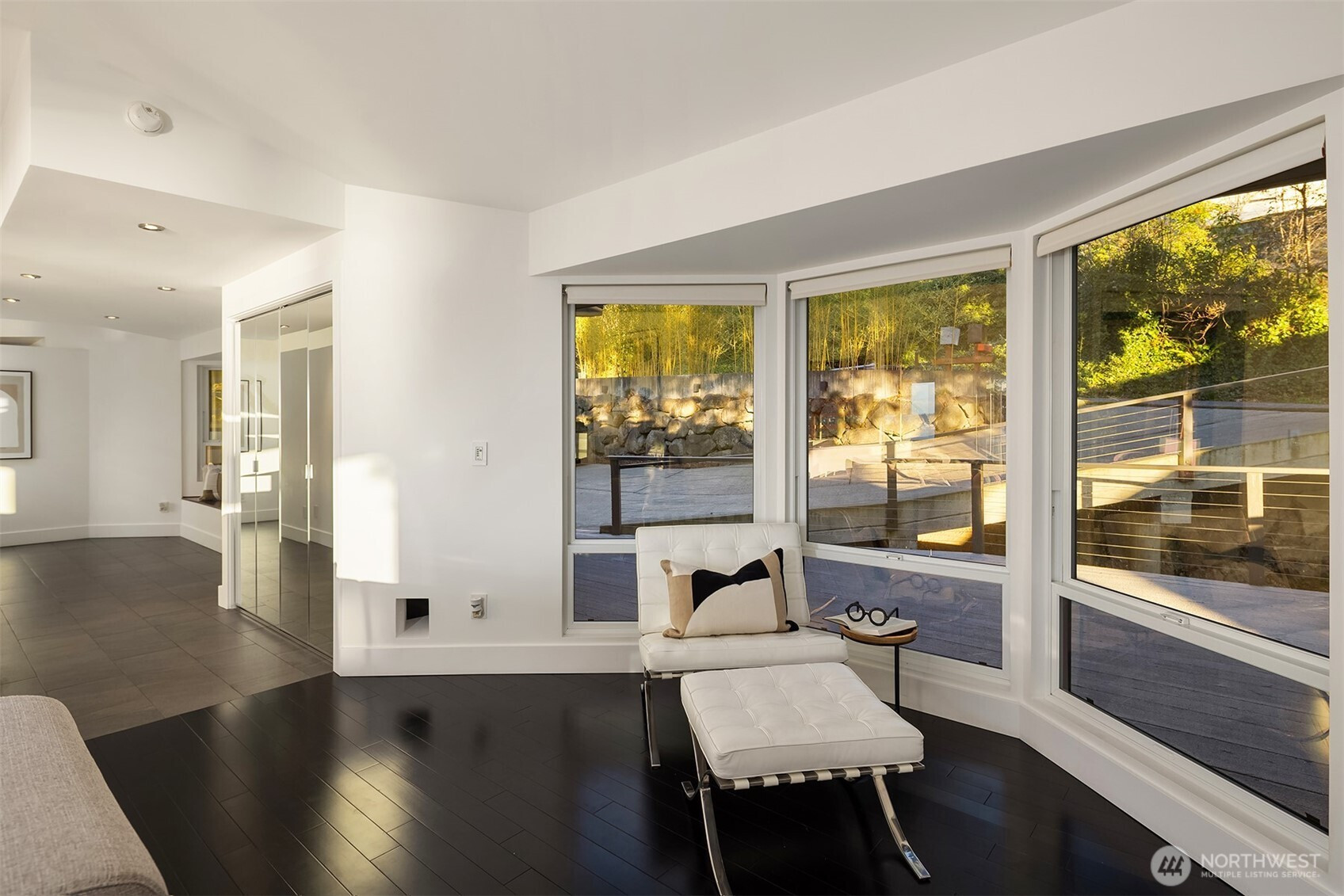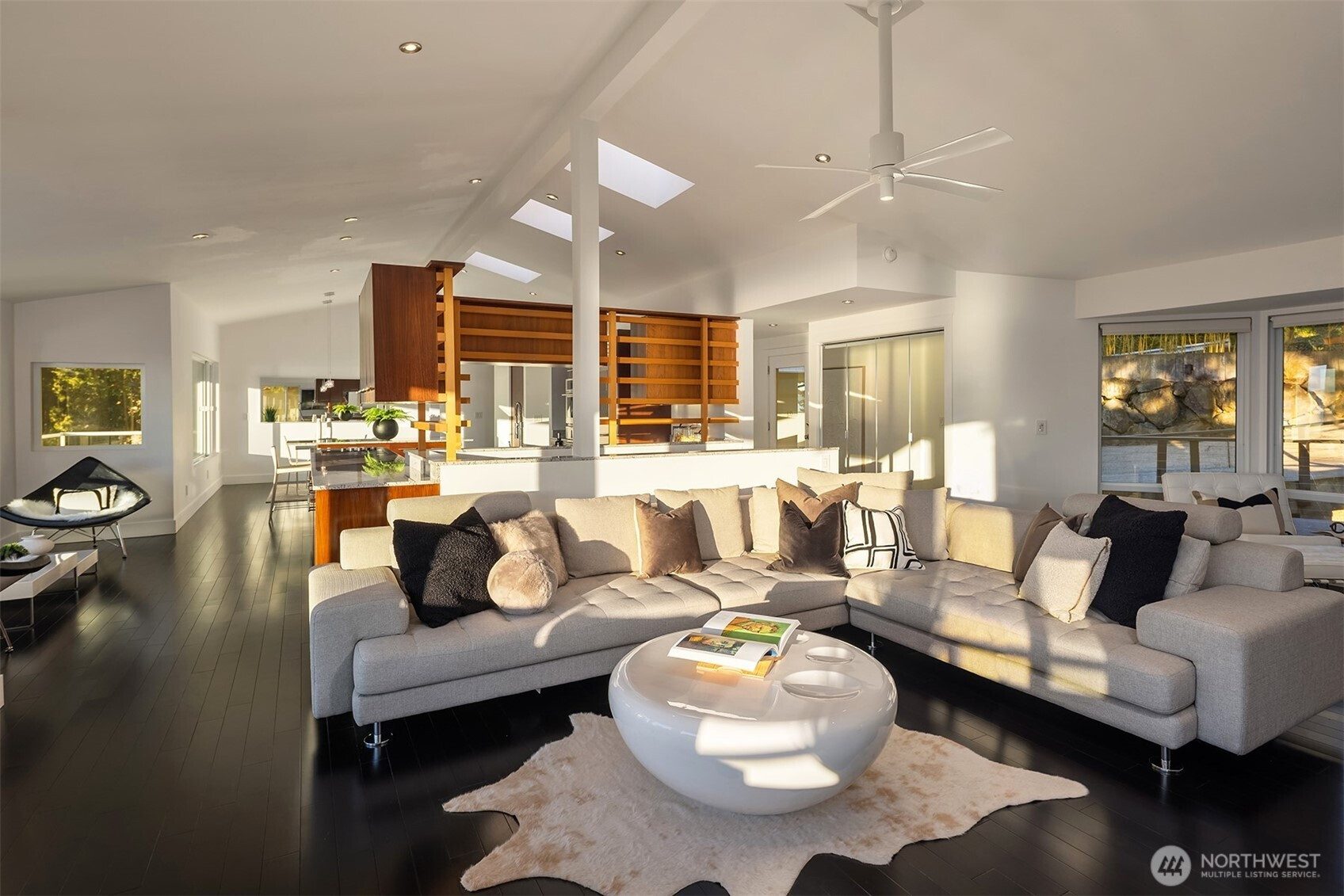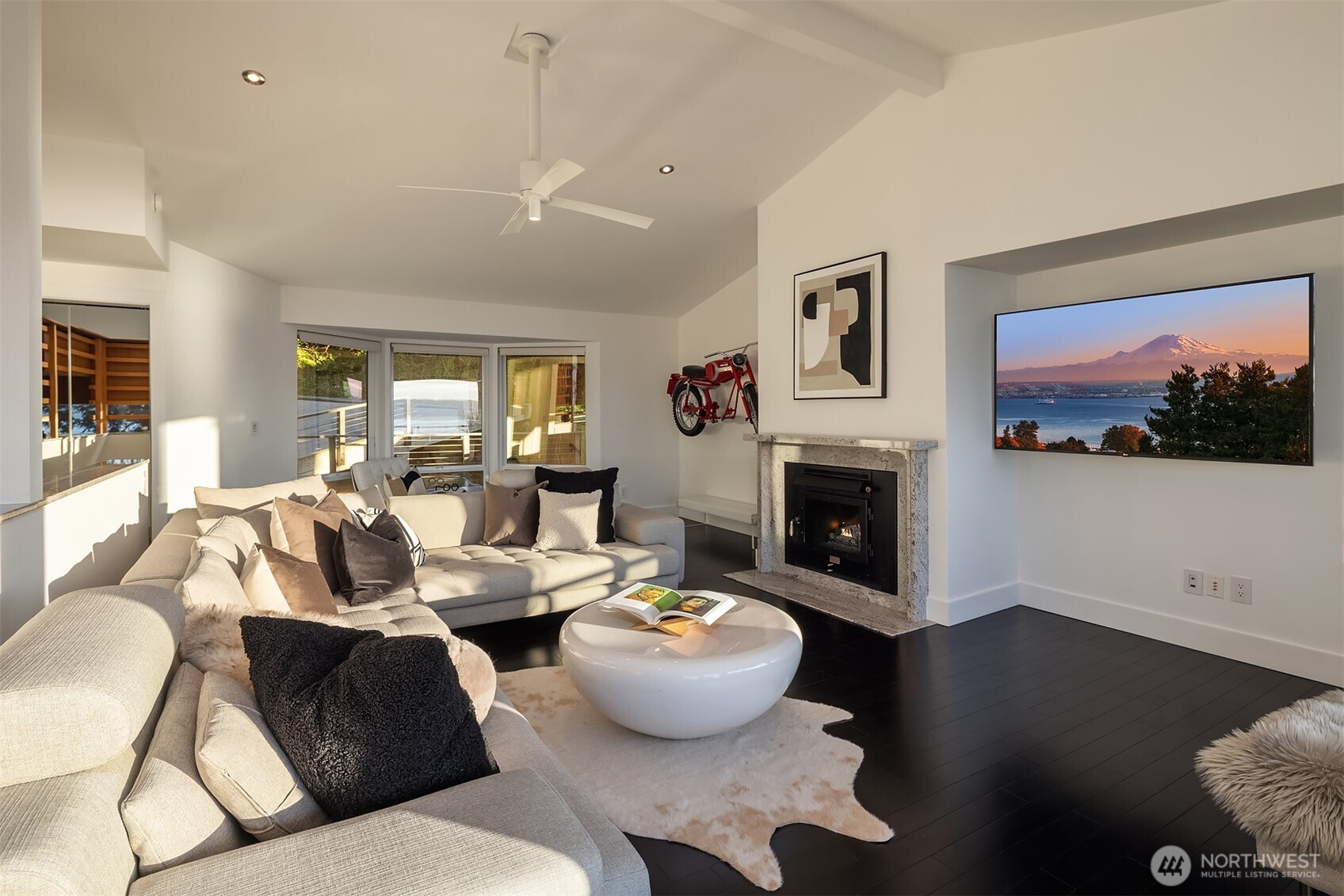 Perched on the quiet western slope of Three Tree Point, this fully reimagined mid-century retreat captures sweeping Puget Sound and Cascade Mountain views from nearly every room. Surrounded by trees for exceptional seclusion, the home blends sleek modern design with effortless comfort. The open, light-filled main level showcases vaulted ceilings, skylights, radiant heated tile floors, custom smoothed walls, and expansive windows framing the water. The entertainer’s kitchen features a large peninsula, eat-in island, glass-front Sub-Zero refrigerator, double wall ovens, walk-in pantry, and views from the cooktop. Dining space and a stylish powder bath complete the level. All three bedrooms are positioned together downstairs. The spacious primary suite offers stunning views, deck access, and a spa-inspired bath with soaking tub, dual-head shower, and custom walk-in closet. Two additional bedrooms and a full bath complete this floor. A versatile 600 sq ft lower level with private exterior access offers ideal ADU or multi-generational potential, currently built out with additional living space, fitness area, and wine storage. Enjoy over 1,500 sq ft of wraparound deck space. Set on a generous 19,000 sq ft lot with potential to build, plus a 2024 metal roof, foam insulation, detached 2-car garage, and ample driveway parking, this is turnkey view living at its finest.
