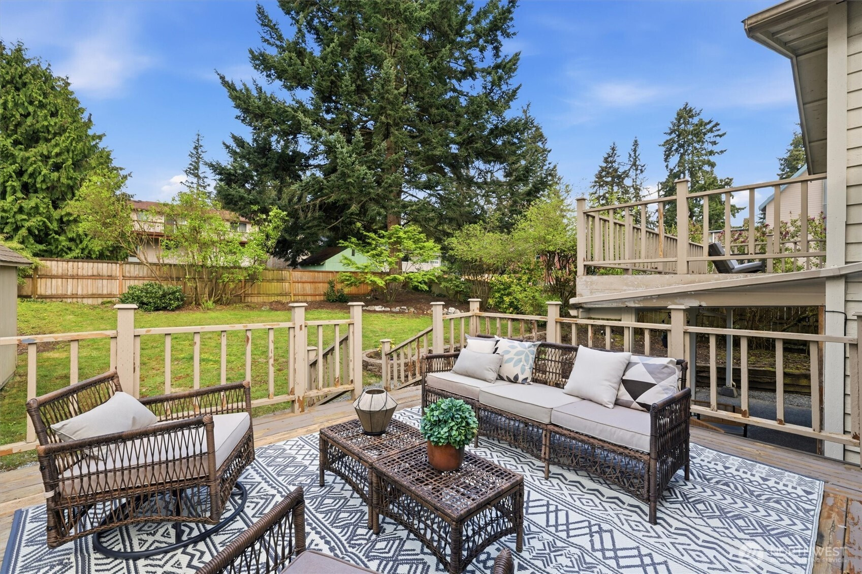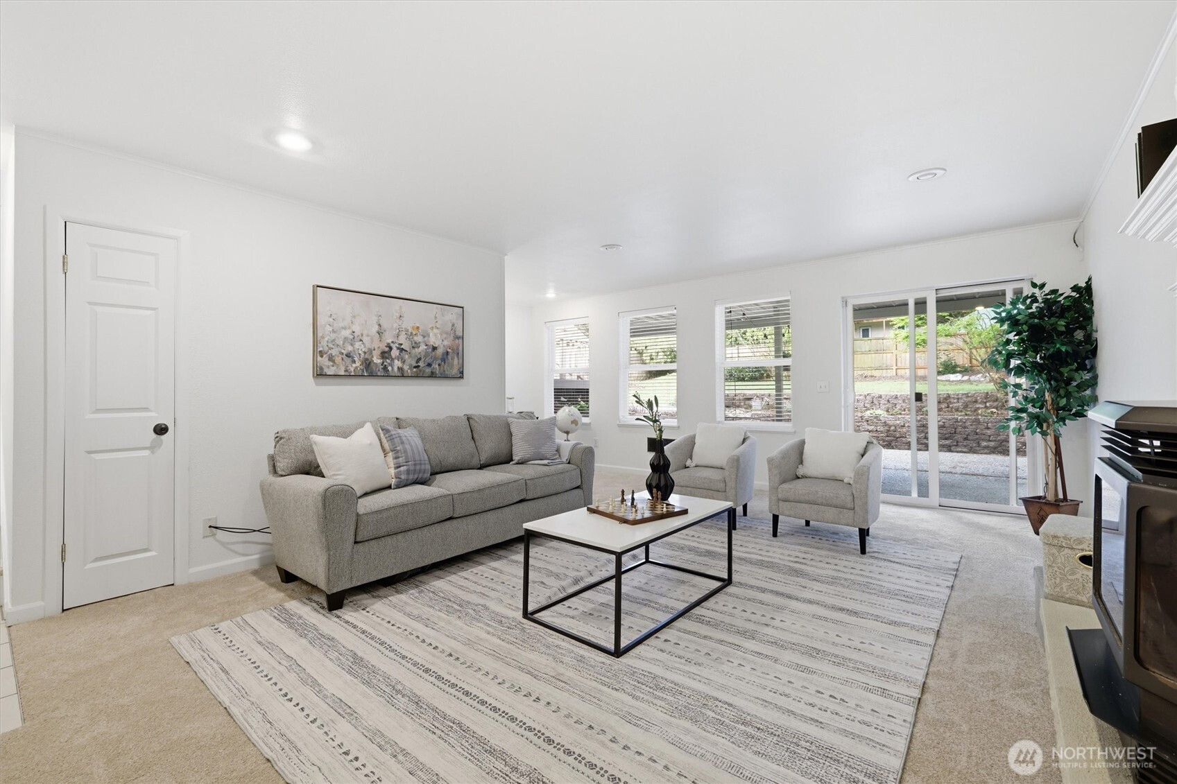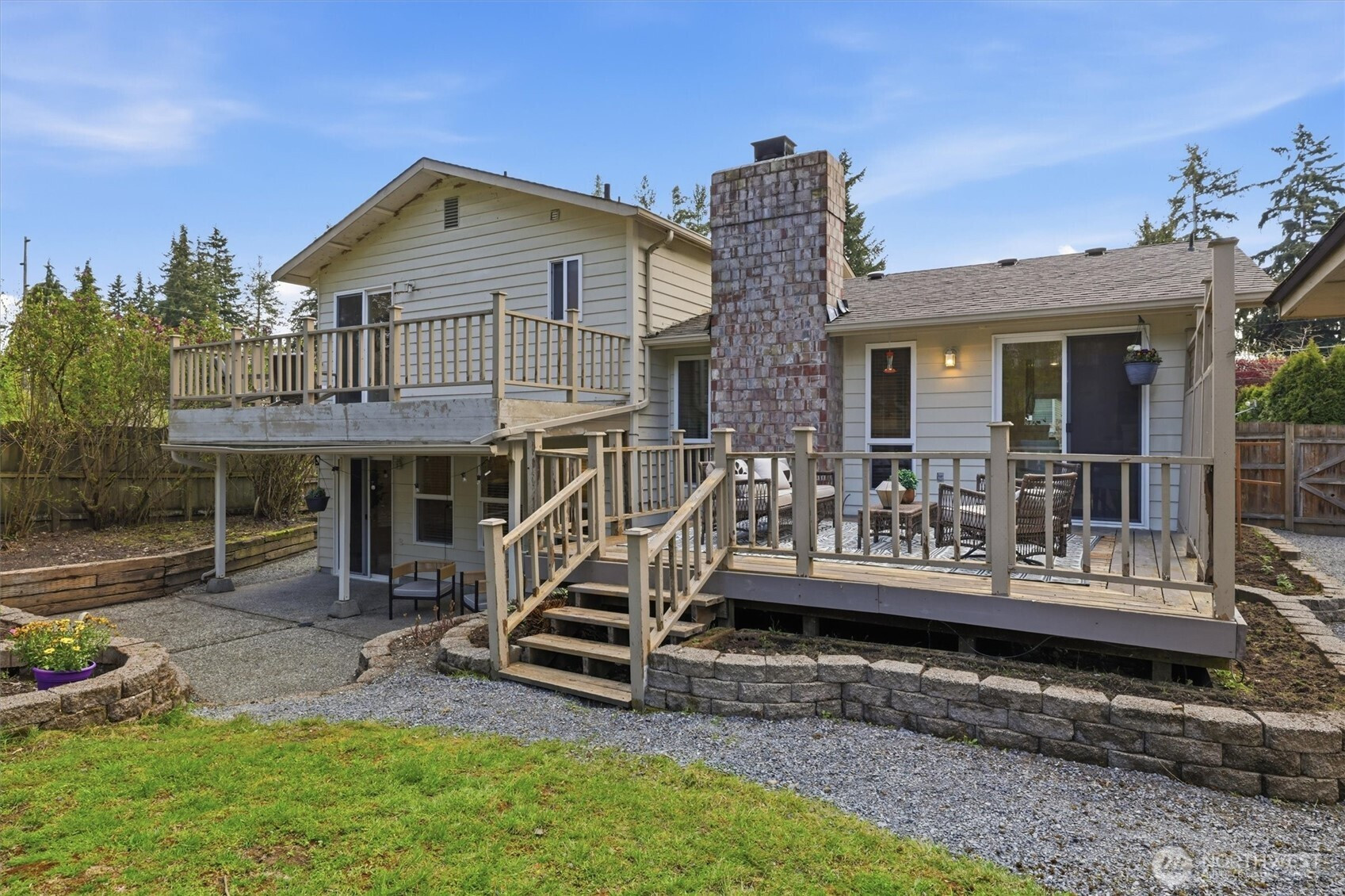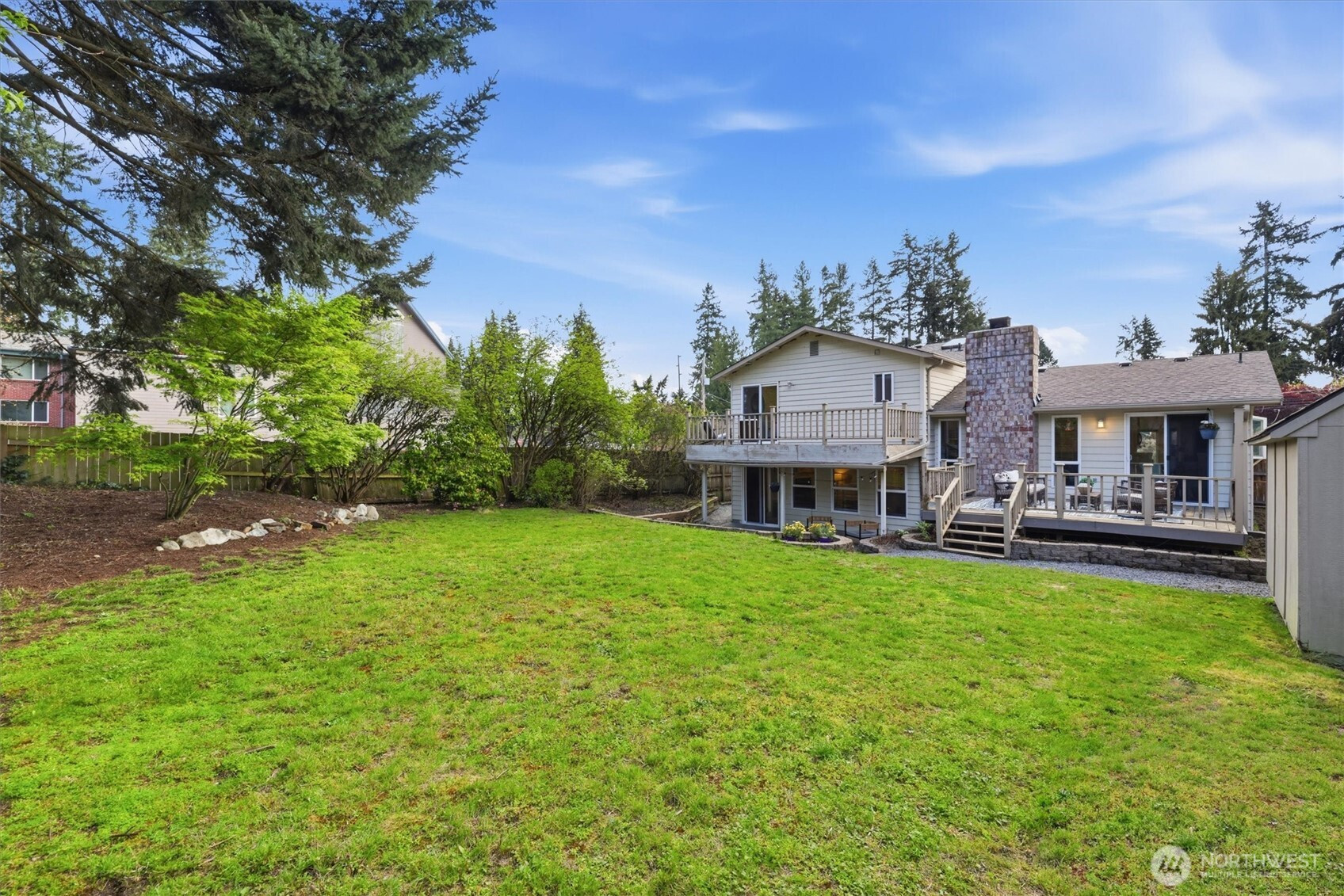 Welcome to your beautiful tri-level Shoreline home located in the quiet Parkwood neighborhood. Step inside to find a welcoming atmosphere that feels both cozy and functional. Thoughtful layout on the main floor includes kitchen with eating nook (and a new range), dining room that leads to the deck - prepare for year-round entertaining fun, and spacious living room with fireplace to warm your winter nights. Head upstairs to your primary bedroom with a walk-in closet, full bathroom (with new tub), and a private deck overlooking the tranquil backyard. Two additional bedrooms and full bath complete the floor. The downstairs rec room is perfect for movie/gaming nights with access to a covered patio. The backyard is fully-fenced (let fido roam free), level, and has plenty of light for your gardening projects. Front yard has exciting opportunities for a hardscaping project and plenty of parking, RV/boat parking included. Updated features include new carpet, interior paint, light fixtures, landscaping, tub, refurbished crawl space. Ideally located between 2 light rail stations (148th Station gives a quick 20 minute ride to dt Seattle). Easy access to public transit, I-5, Hwy 99, retail, dining, spas, parks, more. In desirable Shoreline School District. Don't miss out!