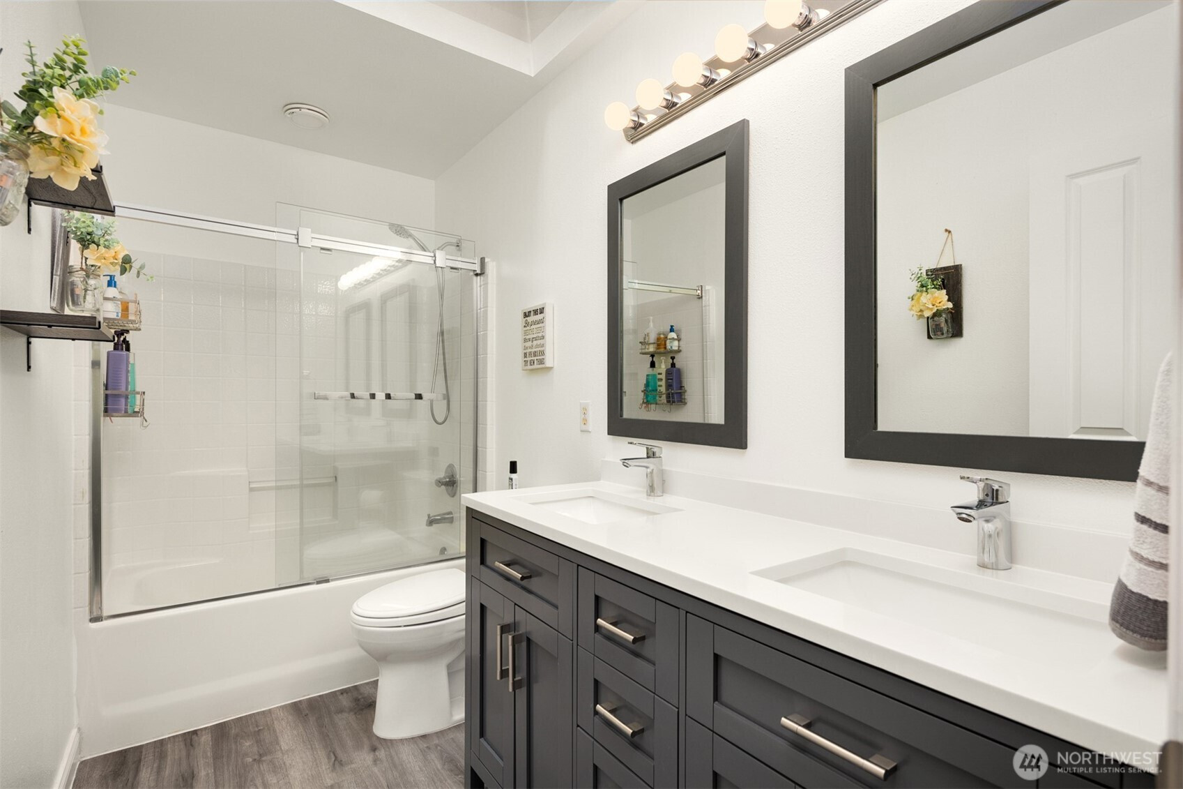Classically-styled home reimagined for today’s aesthetic. Elegant spaces that you will love living in with gorgeous solid oak hardwood floors throughout the main floor with a lovely espresso color palate to please your inner designer. Cozy up in the family room with its soaring ceilings and oversized windows overlooking a stunning backyard garden perfectly framed by plantation shutters. Create dream dinners in this fully-renovated kitchen with updated cabinetry, oversized island ideal for entertaining, solid quartz counters, stainless appliances, pantry & gas cooking. Uniquely flexible floorplan with a main floor bonus room & full bath that could be converted to a second primary suite. Currently used as an amazing craft/hobby room with cork flooring and western-facing windows that flood the room with light. Upstairs you will find 4 bedrooms and 2 updated baths including a primary suite to please the most discerning buyers. Double vanity, ample storage, space in the bedroom for a king-sized bed and a seating area & a fully-organized walk-in closet that keeps everything in its place. The backyard garden is truly an entertainer’s paradise with a party cabana, bar, trex deck, firepit & stamped concrete patio. And still there is space for a grassy play area ideal for pets or children & a greenhouse. Wanting more? How about a backyard cottage with sliding barn doors to extend your entertainment spaces with an outdoor dining room or a work-from-home retreat. Perfection!