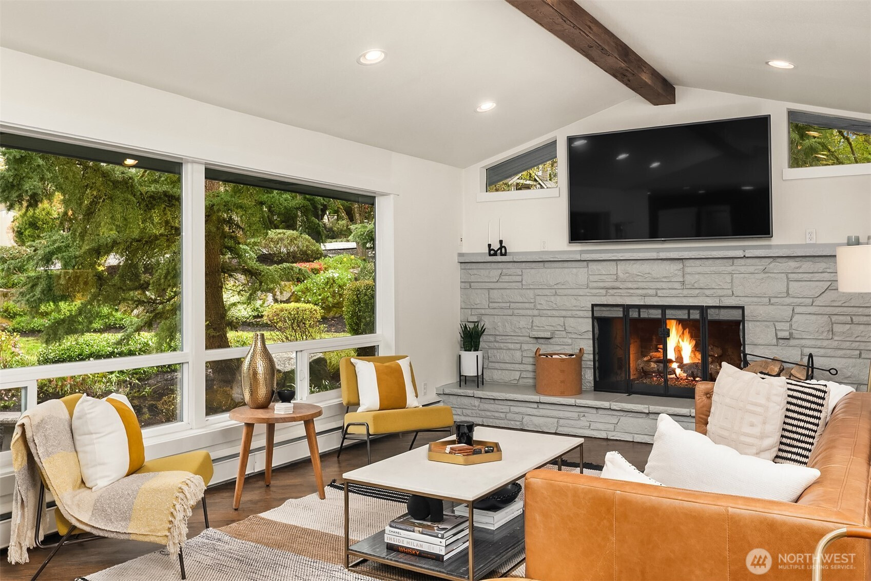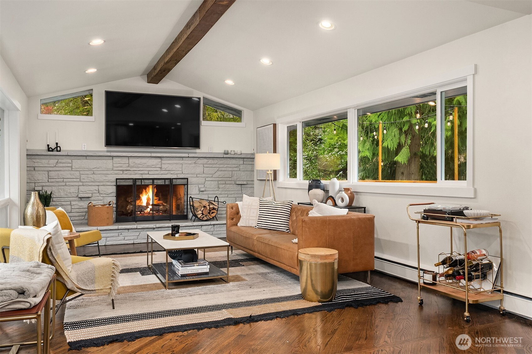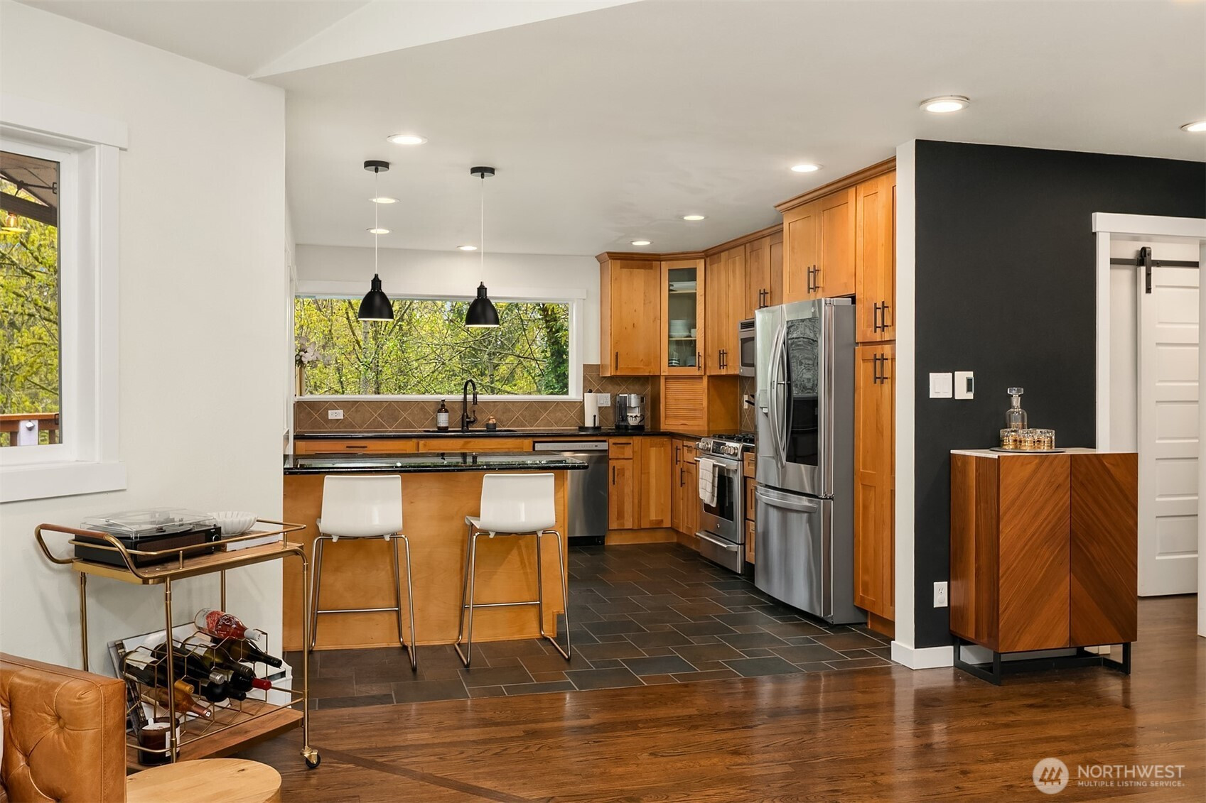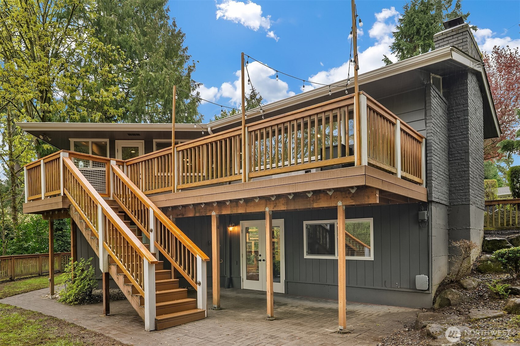 Tucked away in a quiet setting in the Moorlands neighborhood, this refreshed and refined home offers a rare blend of privacy, comfort, and everyday livability. Backing to a protected greenbelt with serene territorial views, the property creates a peaceful retreat where you can truly unwind. The main floor features an expansive chef’s kitchen with large island, newer appliances, and ample space to gather, cook, and connect. Off the kitchen, the light-filled living room with wood-burning fireplace flows seamlessly onto a spacious deck—perfect for indoor-outdoor living and taking in the tree-lined backdrop. With vaulted ceilings, the main level offers two well-appointed beds and a full bath, with remodeled finishes adding a modern feel. New hardwood floors enhance the warmth and continuity throughout. On the lower level, a generous family room with custom built-ins leads to the fully fenced yard, creating an ideal setup for relaxing and entertaining. This level also includes an additional bed, a den/home office, and another bath—perfect for guests or remote work. Outside, the home continues to shine with a fully fenced yard, sprinkler system, and mature landscaping—designed for easy maintenance and year-round enjoyment. Enjoy off-street parking and a garage with EV charger. With its private setting, functional layout, and updates, this home offers a lifestyle defined by comfort, flexibility, and connection to nature—just minutes from local amenities, parks, and commuter routes.