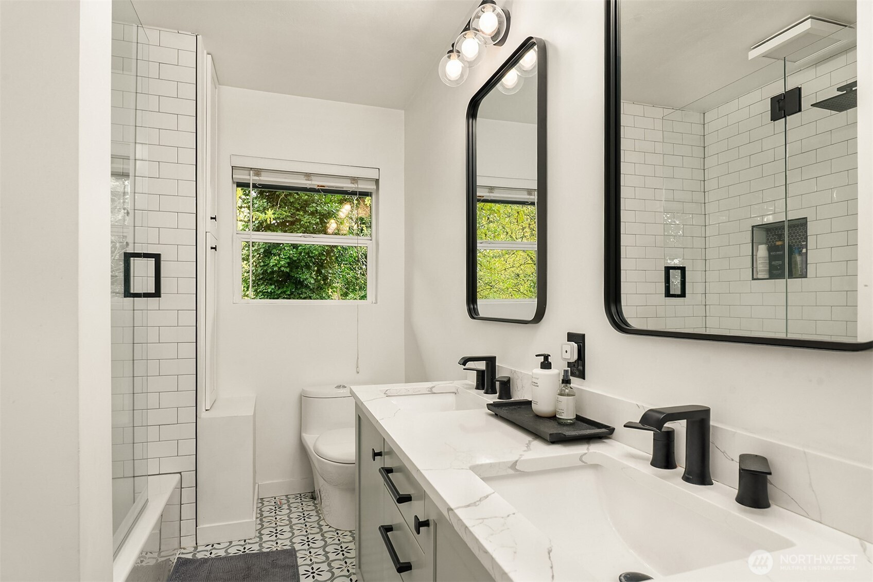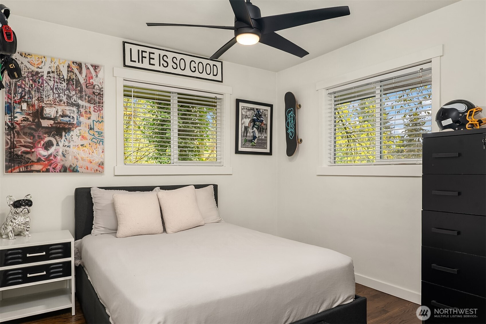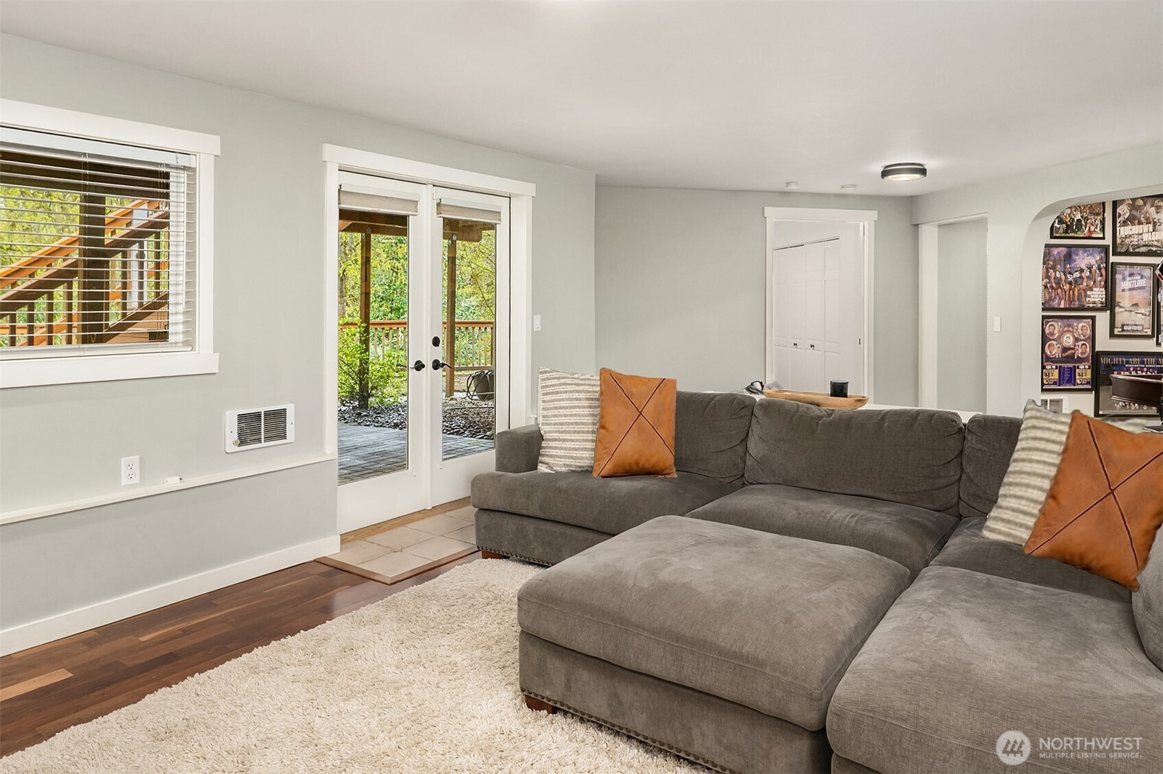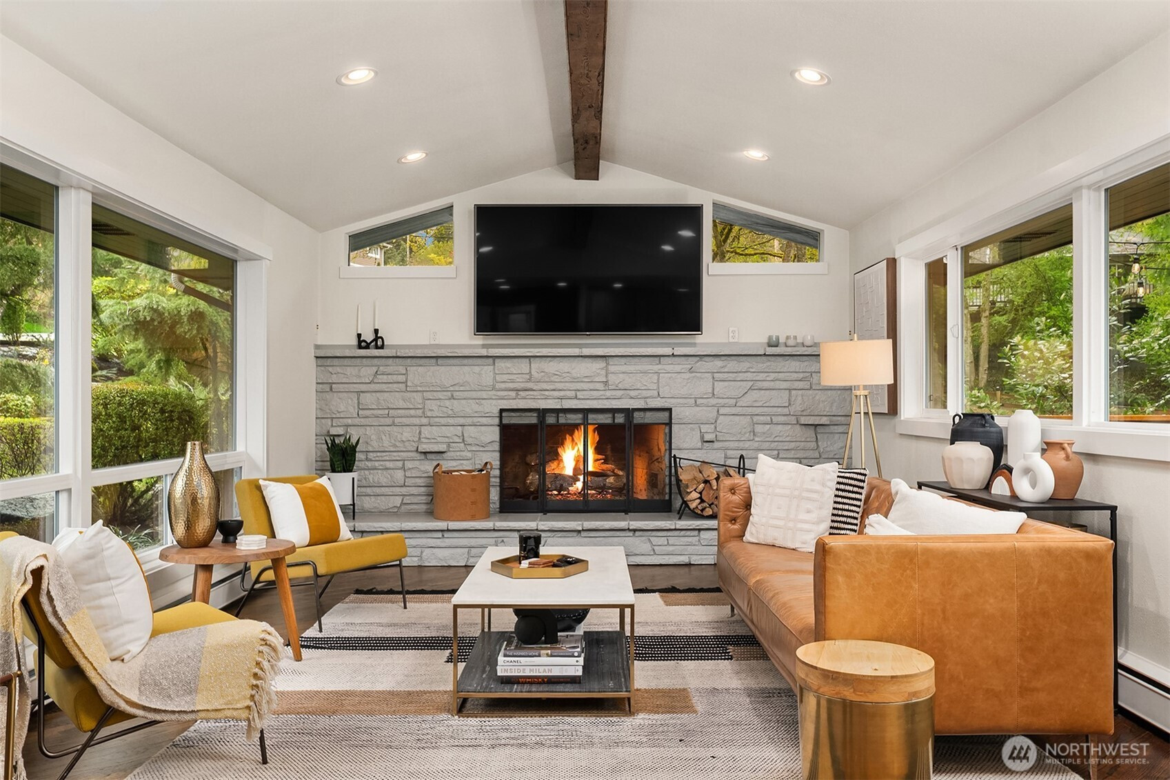 Tucked away in a quiet setting in the Moorlands neighborhood, this refreshed and refined home offers a rare blend of privacy, comfort, and everyday livability. Backing to a protected greenbelt with serene territorial views, the property creates a peaceful retreat where you can truly unwind. The main floor features an expansive chef’s kitchen with large island, newer appliances, and ample space to gather, cook, and connect. Off the kitchen, the light-filled living room with wood-burning fireplace flows seamlessly onto a spacious deck—perfect for indoor-outdoor living and taking in the tree-lined backdrop. With vaulted ceilings, the main level offers two well-appointed beds and a full bath, with remodeled finishes adding a modern feel. New hardwood floors enhance the warmth and continuity throughout. On the lower level, a generous family room with custom built-ins leads to the fully fenced yard, creating an ideal setup for relaxing and entertaining. This level also includes an additional bed, a den/home office, and another bath—perfect for guests or remote work. Outside, the home continues to shine with a fully fenced yard, sprinkler system, and mature landscaping—designed for easy maintenance and year-round enjoyment. Enjoy off-street parking and a garage with EV charger. With its private setting, functional layout, and updates, this home offers a lifestyle defined by comfort, flexibility, and connection to nature—just minutes from local amenities, parks, and commuter routes.