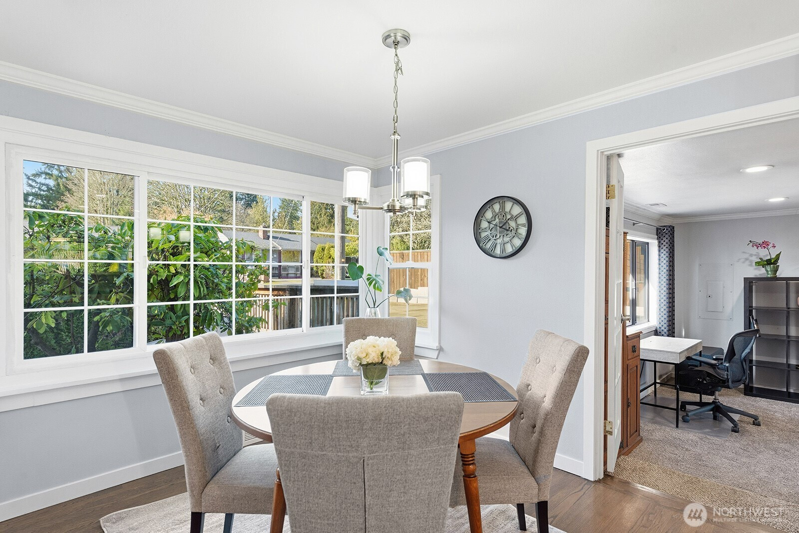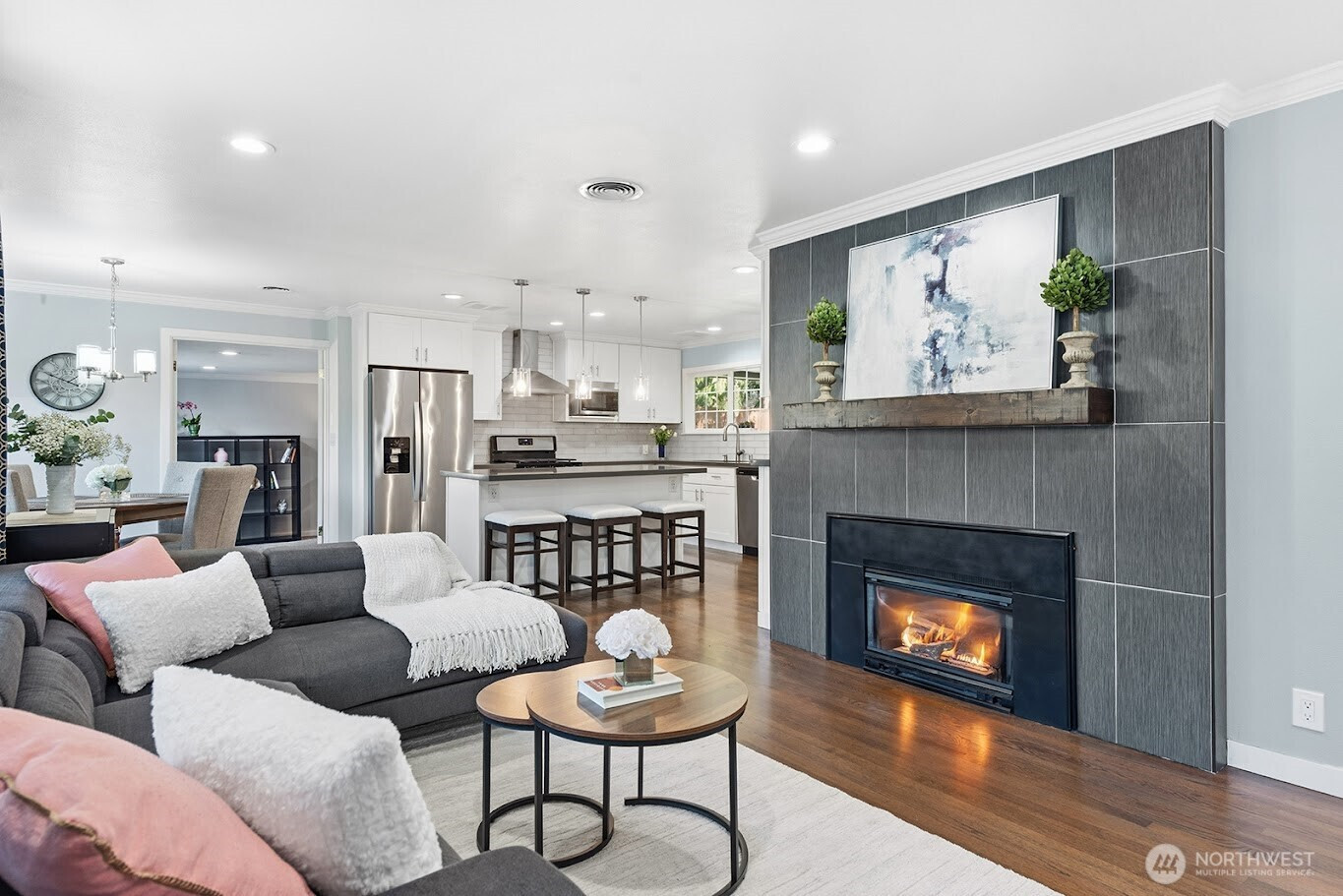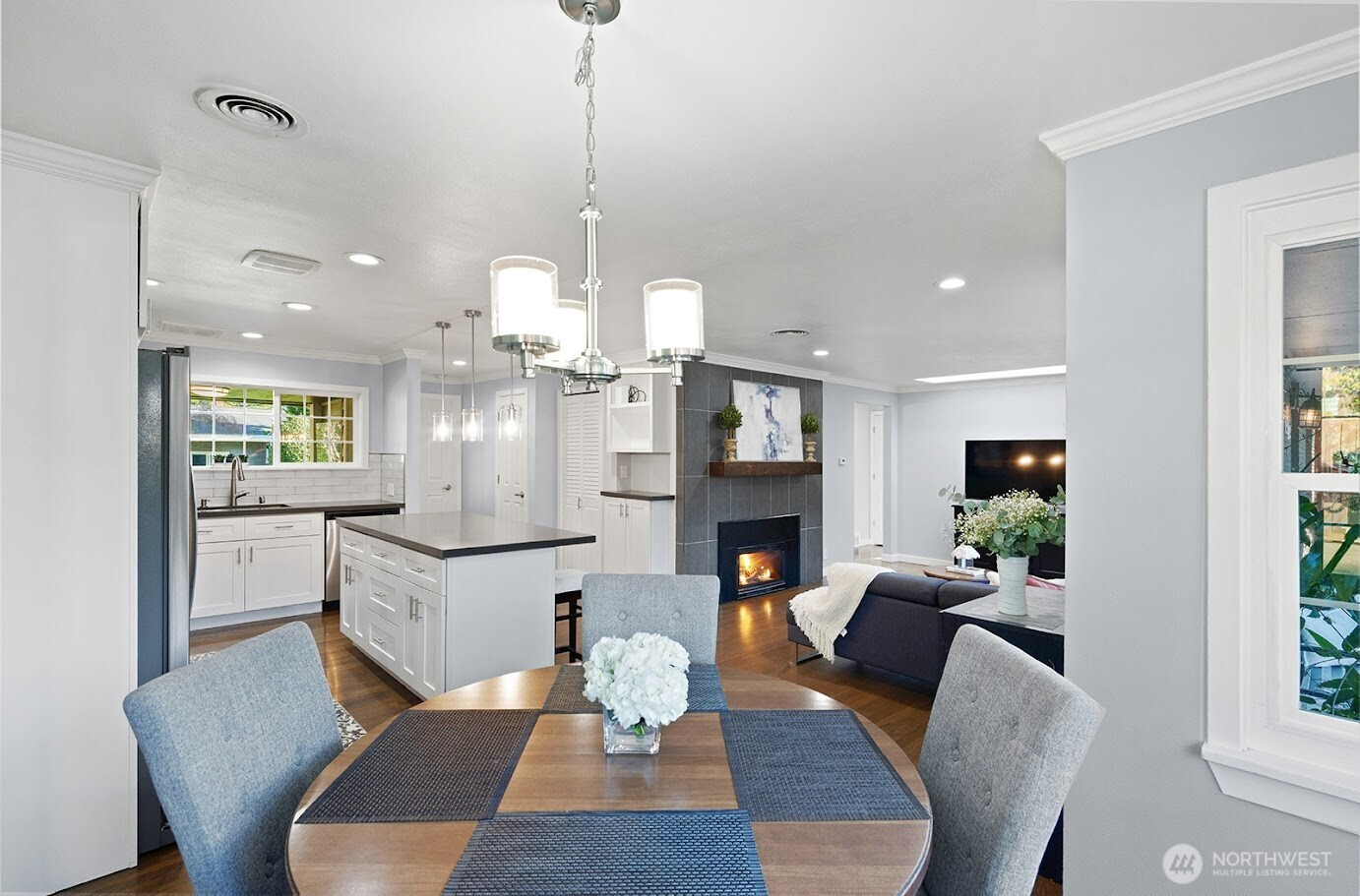 Updated and well-maintained 3+ bedroom, 2-bath single-story home located on a quiet street. Thoughtfully updated throughout with a modern kitchen, spacious primary suite, versatile flex room, hardwood floors, gas fireplace, and beautifully tiled baths. Enjoy year-round comfort in the extra-large, fully fenced private backyard featuring two outbuildings, a firepit, and a covered sitting area — perfect for relaxing or entertaining. Conveniently located near schools, shopping, and easy freeway access.