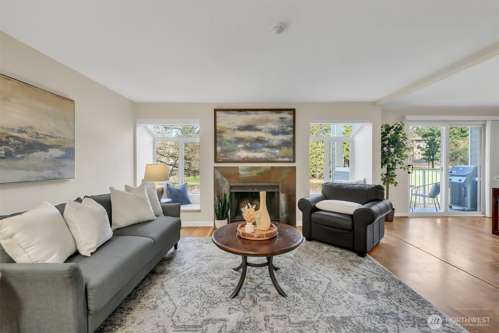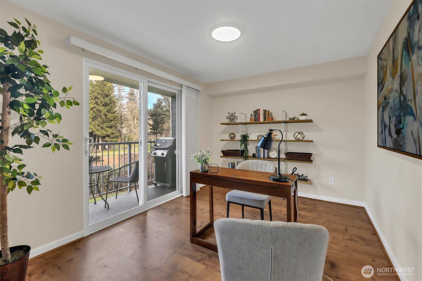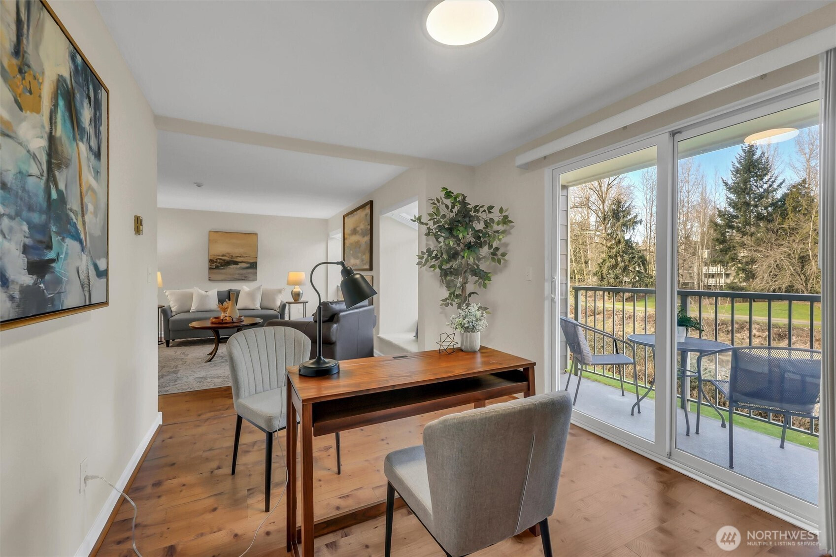 Amazing Redmond location situated on the serene Sammamish River. This updated Sammamish Waterway condo offers 1-bedroom + Den (flex space) with VIEW balcony overlooking the Sammamish River & riverside trail. You will be sure to enjoy the peace, comfort and convenience. New interior paint, new carpet, thoughtfully designed and elegant kitchen with quartz countertops and beautiful backsplash. Gorgeous updated bathroom with custom shower. Light filled living area with fireplace & built-in window benches with storage. Storage lockers & bike room are a wonderful convenience. Location is everything, with easy access to freeways & Redmond Towne Center, shopping & dining options. Nearby Sammamish River trail, Marymoor Park & the brand-new light rail station will make commuting a breeze. 1 covered parking + permit parking. Well-maintained common areas & well-funded HOA with no rental cap, this property presents an excellent opportunity for both homeowners & investors.