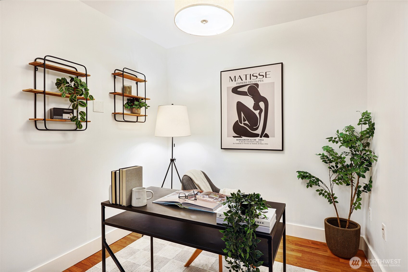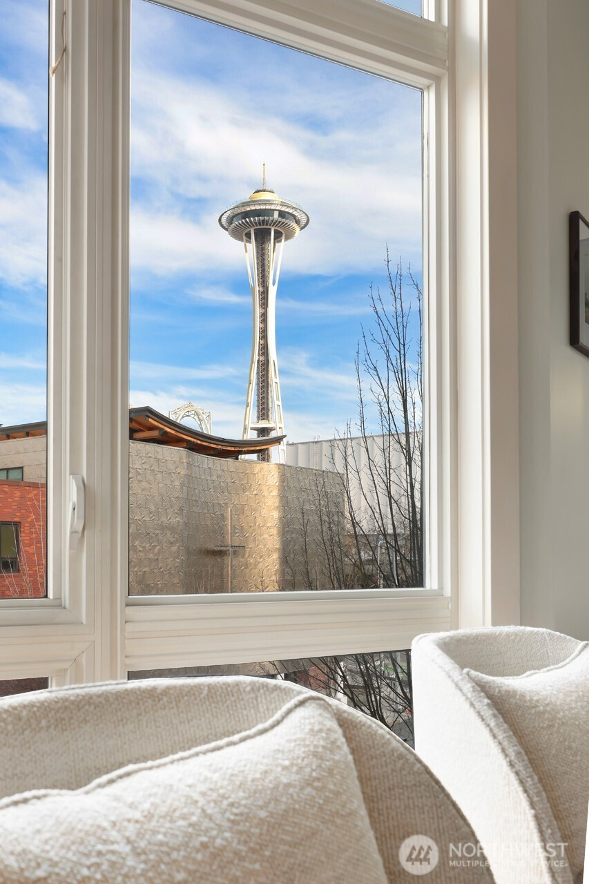 Live in the heart of Belltown in this bright and spacious 1-bedroom + den at The Matae. Floor-to-ceiling windows with peeks of the Sound and Space Needle - showing that you are in the middle of everything Seattle has to offer. Enjoy the rare bonus room that can be used as an office, dining space, or be converted into a flex space. You will also appreciate the in-unit laundry with a 1/2 bath for guests. From there, the design flows into a roomy kitchen with plenty of storage and space to cook your favorite meals. Retreat to the primary suite with double vanity, tiled floors, oversized double closet and private balcony. Enjoy top-notch amenities like a party-ready club room, fitness center, and rooftop decks with unforgettable city and water views. Entertain guests on New Year's Eve to watch the Space Needle fireworks, walk to Climate Pledge, The Waterfront, Amazon and shopping. No need to deal with concert parking, you can walk there in minutes. No Rental Cap, Pets ok and no Assessment. Pre-Inspected for your convenience. One secure parking space and storage unit included, both close to the entrance and elevators for easy access.