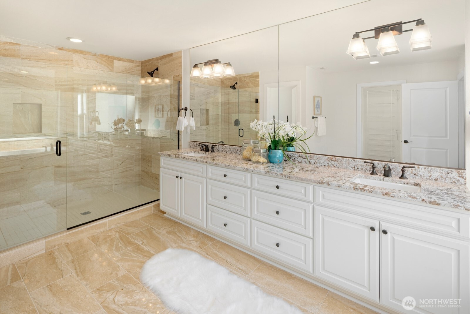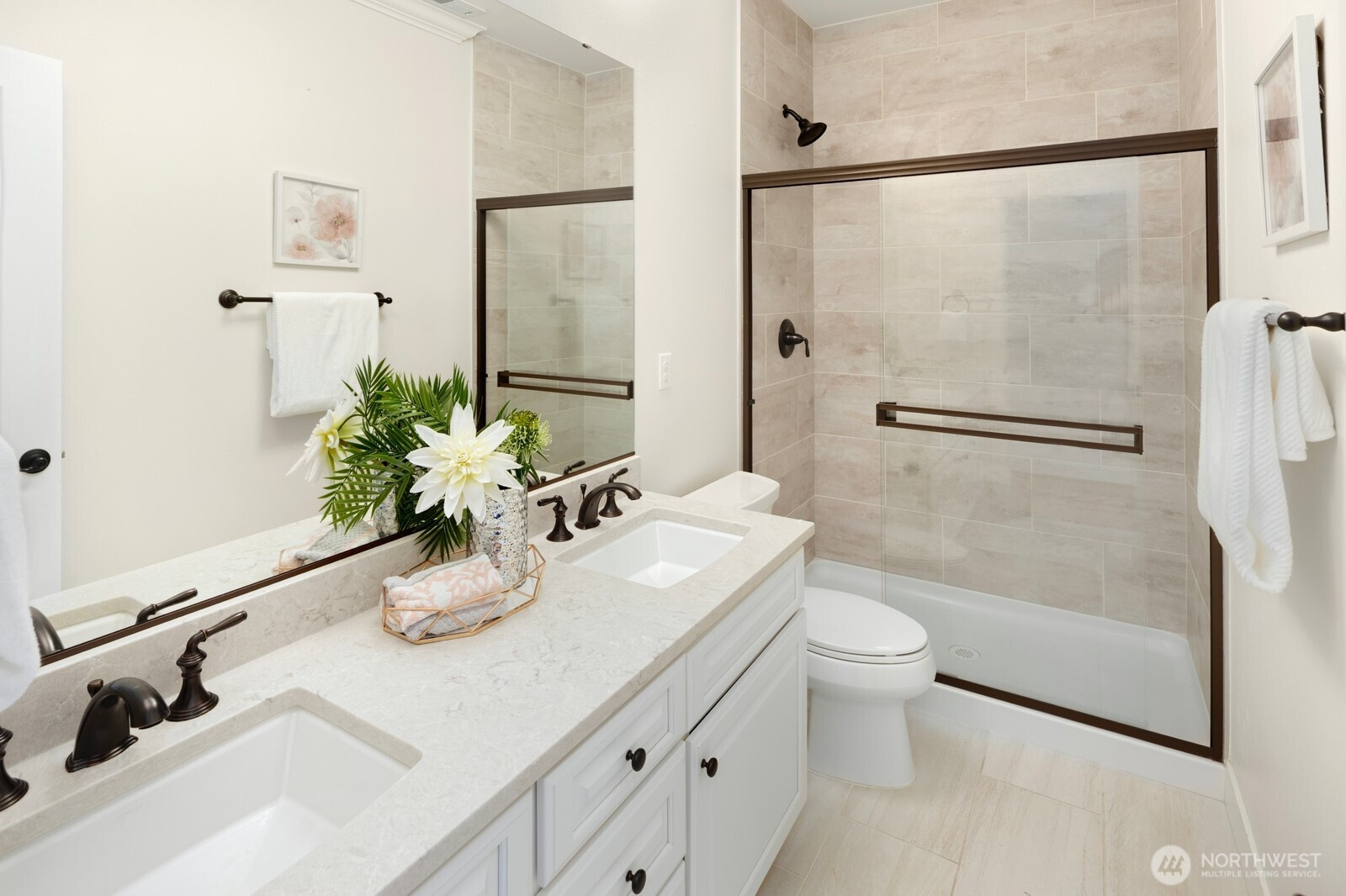 Welcome Home to Piper's Glen, an Exclusive Luxury Neighborhood located minutes to the Burke Gilman/ Sammamish River Trail, and Downtown Bothell. Marble floor entry opens to the gallery-sized living area. Rich hardwoods and expansive windows flood the home with natural light. The gourmet kitchen features high-end appliances, granite countertops, and an oversized island ideal for entertaining. Enjoy seamless indoor-outdoor living with a spacious view deck and private backyard. Entertainer's dream home. Guest bedroom+ shower bath on Main. Upstairs includes a big master suite and 2 walk-in closets, a lavish marble primary bath, a tranquil balcony, and two impeccably designed bedrooms. The spacious and high-ceilinged lower level includes family room, an office and guest suite + Wet Bar for entertainment and recreation. This Better than New home features nearly $200K in Designer Finishes and Upgrades to make this Home unlike any other. Enjoy Private and Flat Back Yard, 3 Car Finished Garage, A/C, and So Much More! Award-winning Northshore Schools.